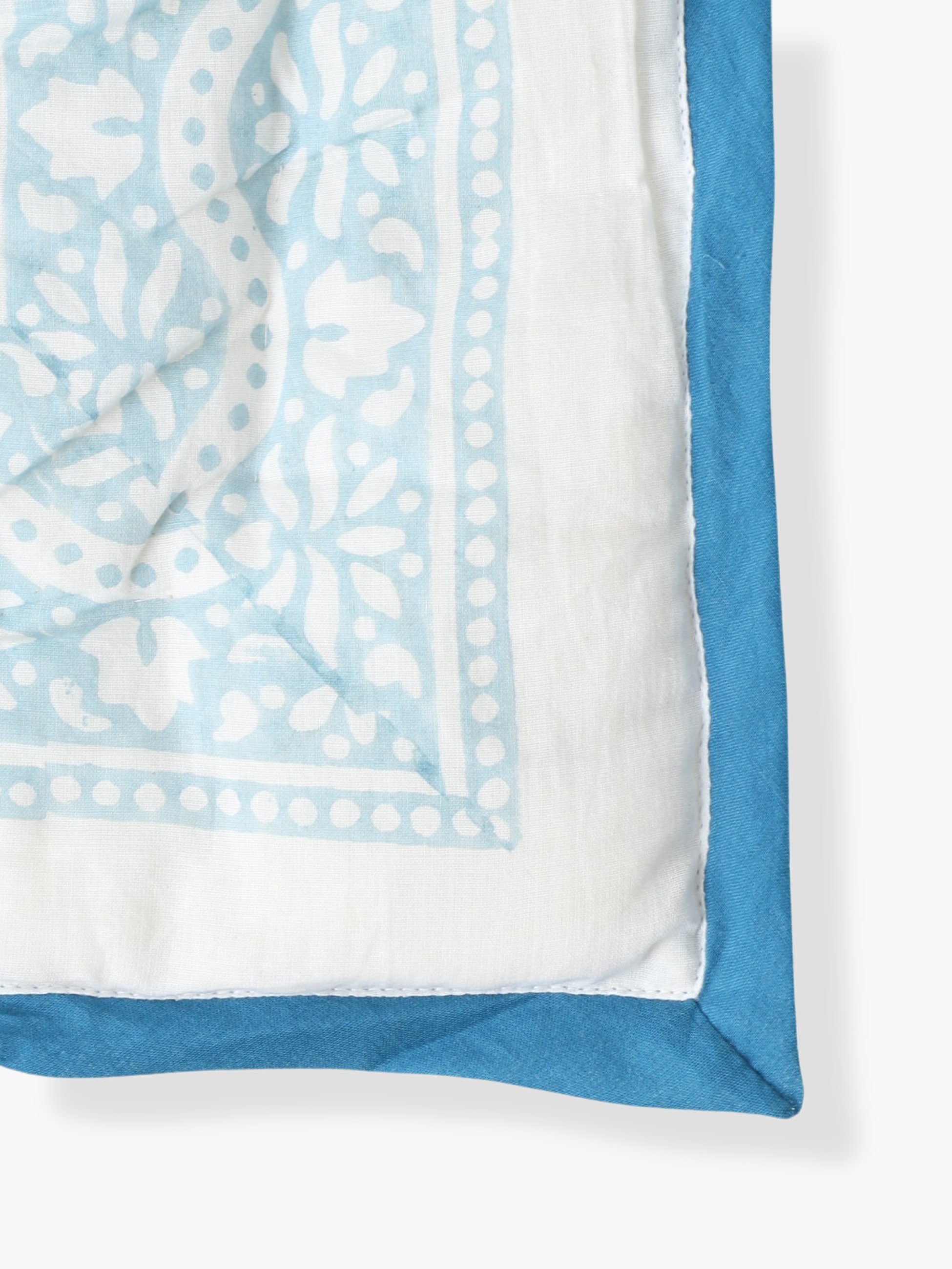 この製品は、インド綿にハンドプリントをほどこしているため、1点1点プリントの表情に個体差があり、生地に多少織りキズや汚れ、プリントのかすれ、にじみ、色むらなどがみられます。