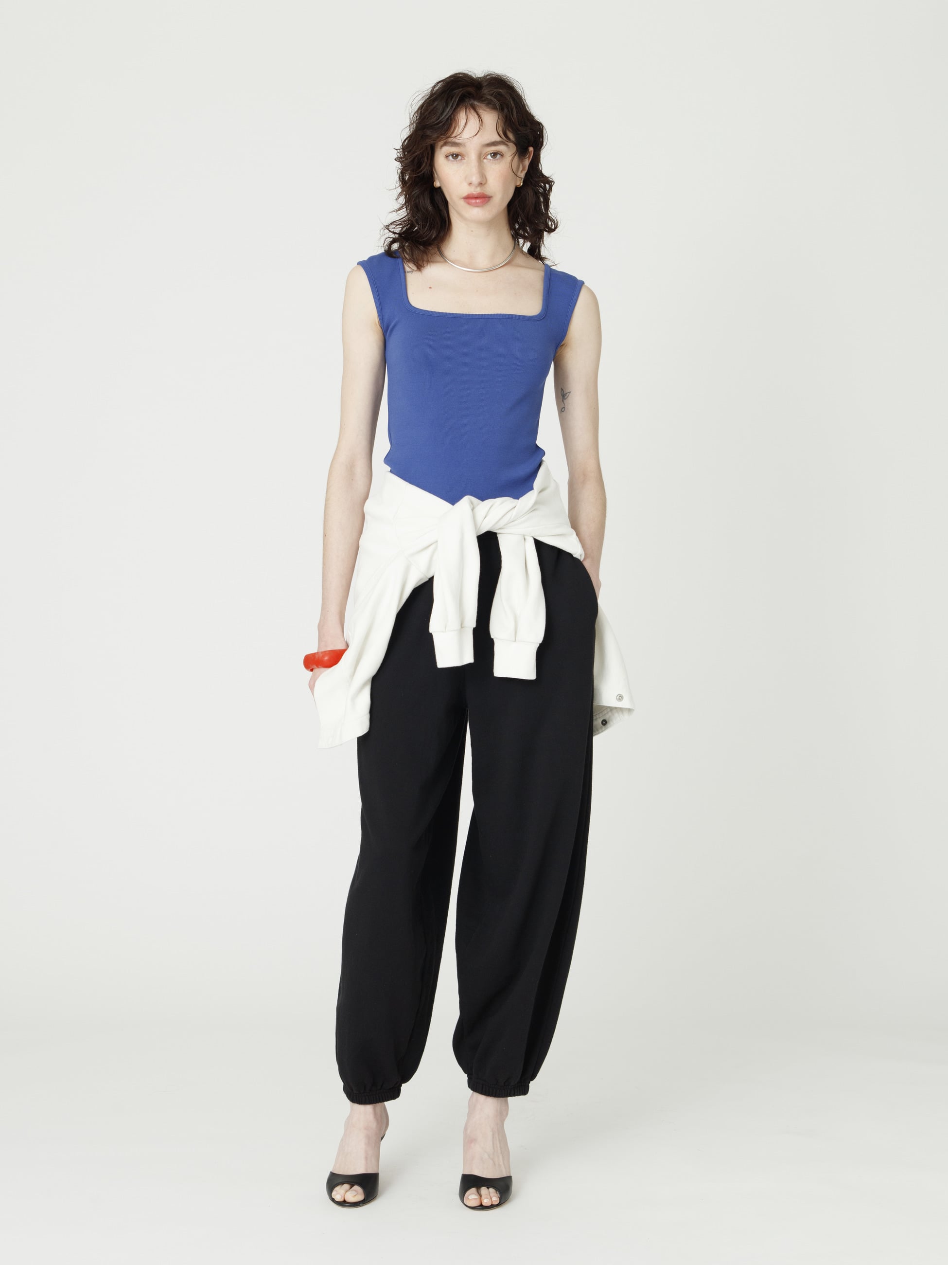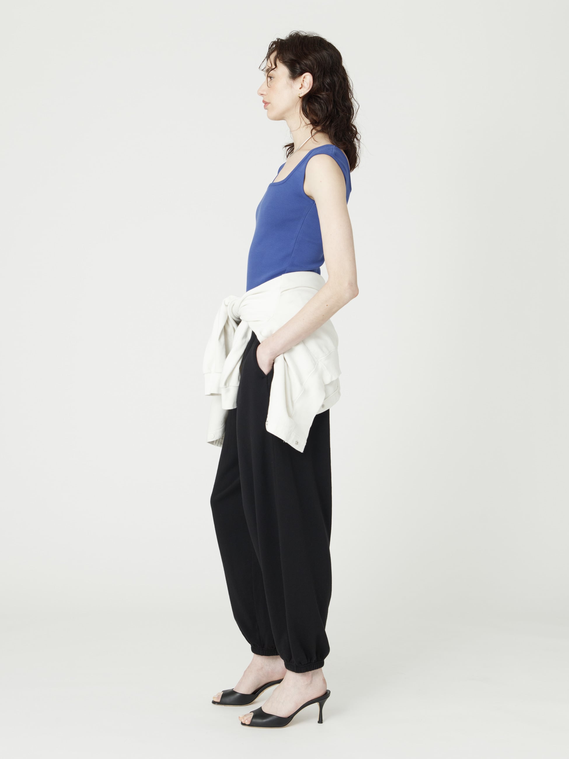 環境に配慮したコットン素材「コットン・チコ・アフリカ」を使用した裏毛のスウェットパンツです。股上が深く、裾を絞ったハーレムパンツで、同シリーズのスウェットプルオーバーとのセットアップも素敵です。ゆったりとした軽やかな穿き心地で、動きやすさとリラックス感を兼ね備えています。8100の上質なワンマイルスタイルをお楽しみください。8100その他のアイテムの展開もございます。