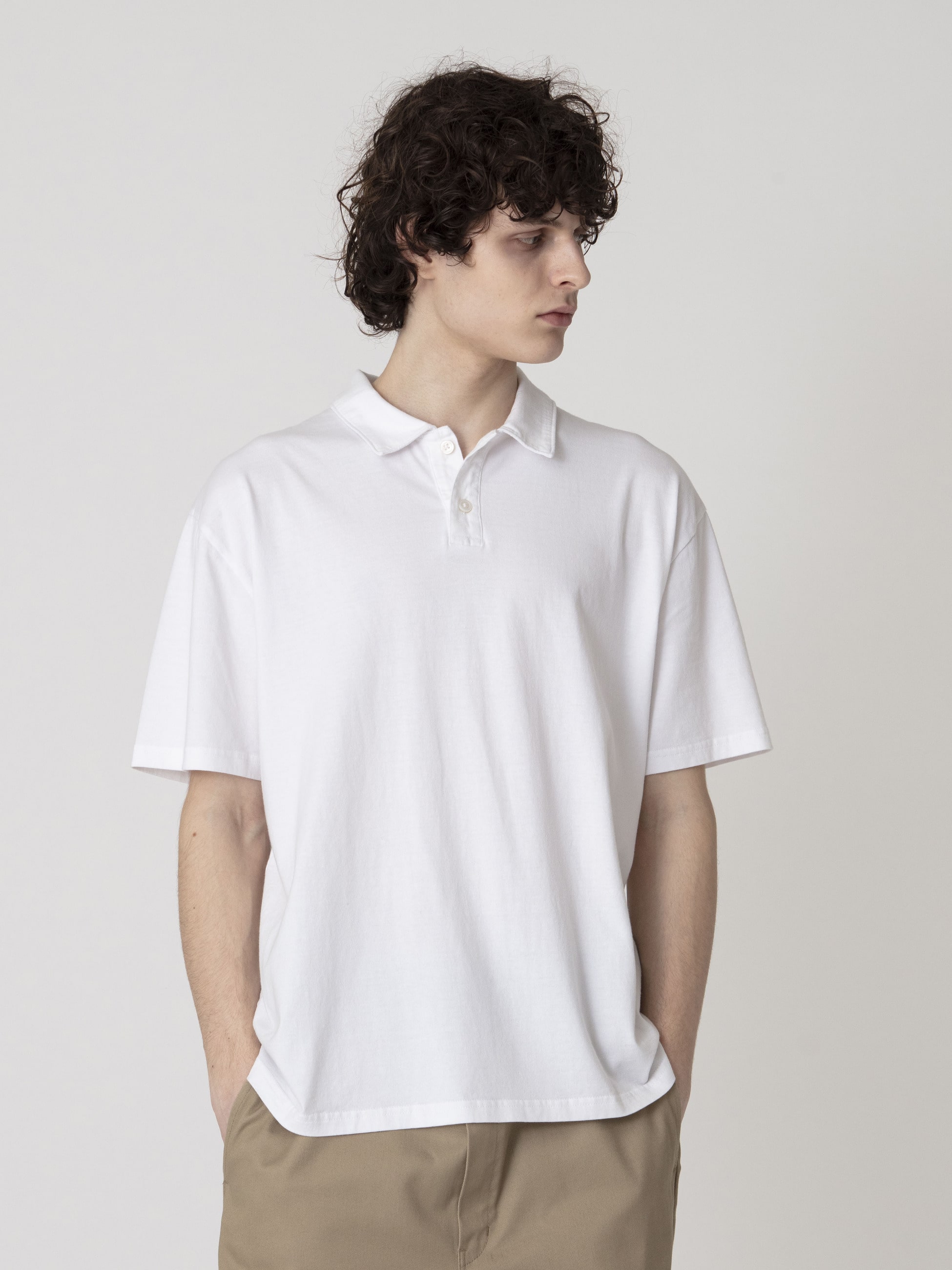 環境に配慮したアフリカンチココットンを使用したポロシャツ。細番手糸を度詰めで編んだ天竺生地は、程よくハリのある上品な表情と柔らかな肌触りが特徴です。また、ゆったりとしたフィットはデイリーユースしやすい一着です。8100の上質で大人のワンマイルウェアをぜひお楽しみください。