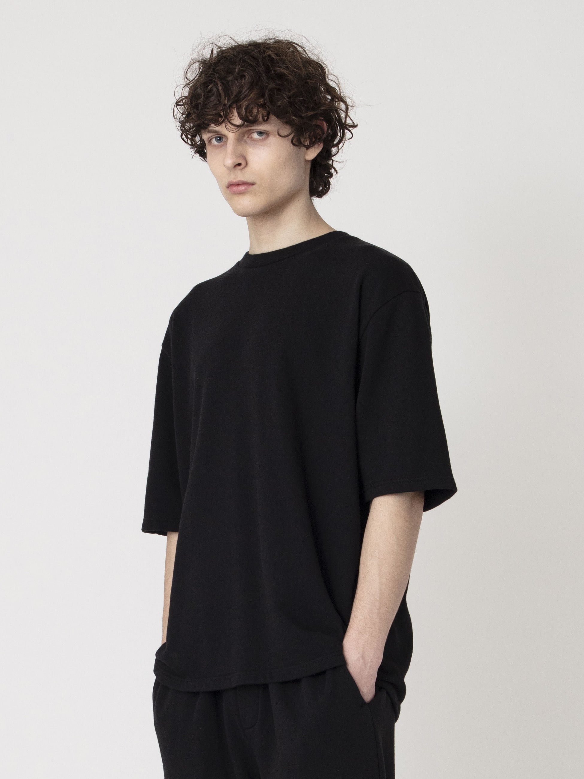 環境に配慮したアフリカンチココットンを使用した裏毛素材のスウェットTシャツ。細番手糸を度詰めで編んだ天竺生地は、程よくハリのある上品な表情と柔らかな肌触りが特徴です。また、ゆったりとしたフィットはデイリーユースしやすい一着です。8100の上質で大人のワンマイルウェアをぜひお楽しみください。