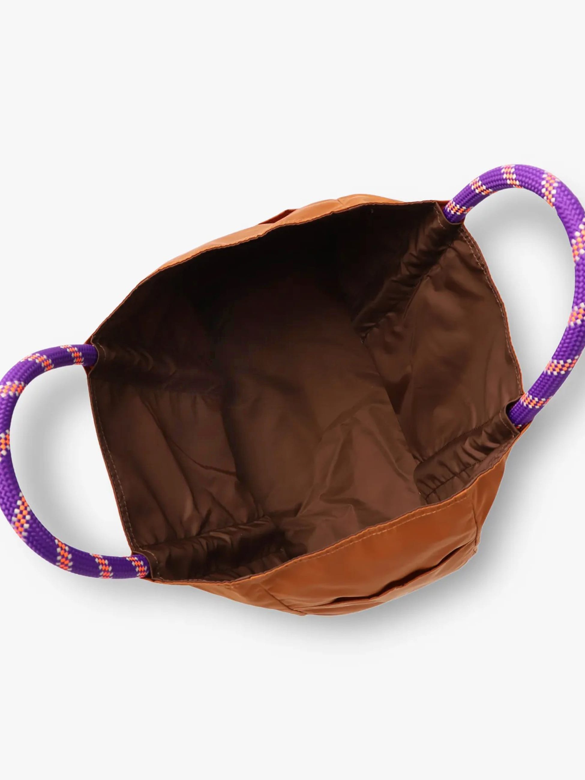 - カレッジ風ロゴが映えるブランドのアイコン、NOMADIS SAC(ノマディス サック)。外面と内面でカラーが異なるリバーシブル仕様で、その日の気分やスタイルに合わせて表情を変えられるのが魅力です。肩掛け可能なロープハンドルは、重い荷物でも持ち運びやすい16mm幅に持ちやすくリニューアル。バッグの内外にはサイドポケットを配置。ワインボトルやタンブラー、小物の整理などに便利です。