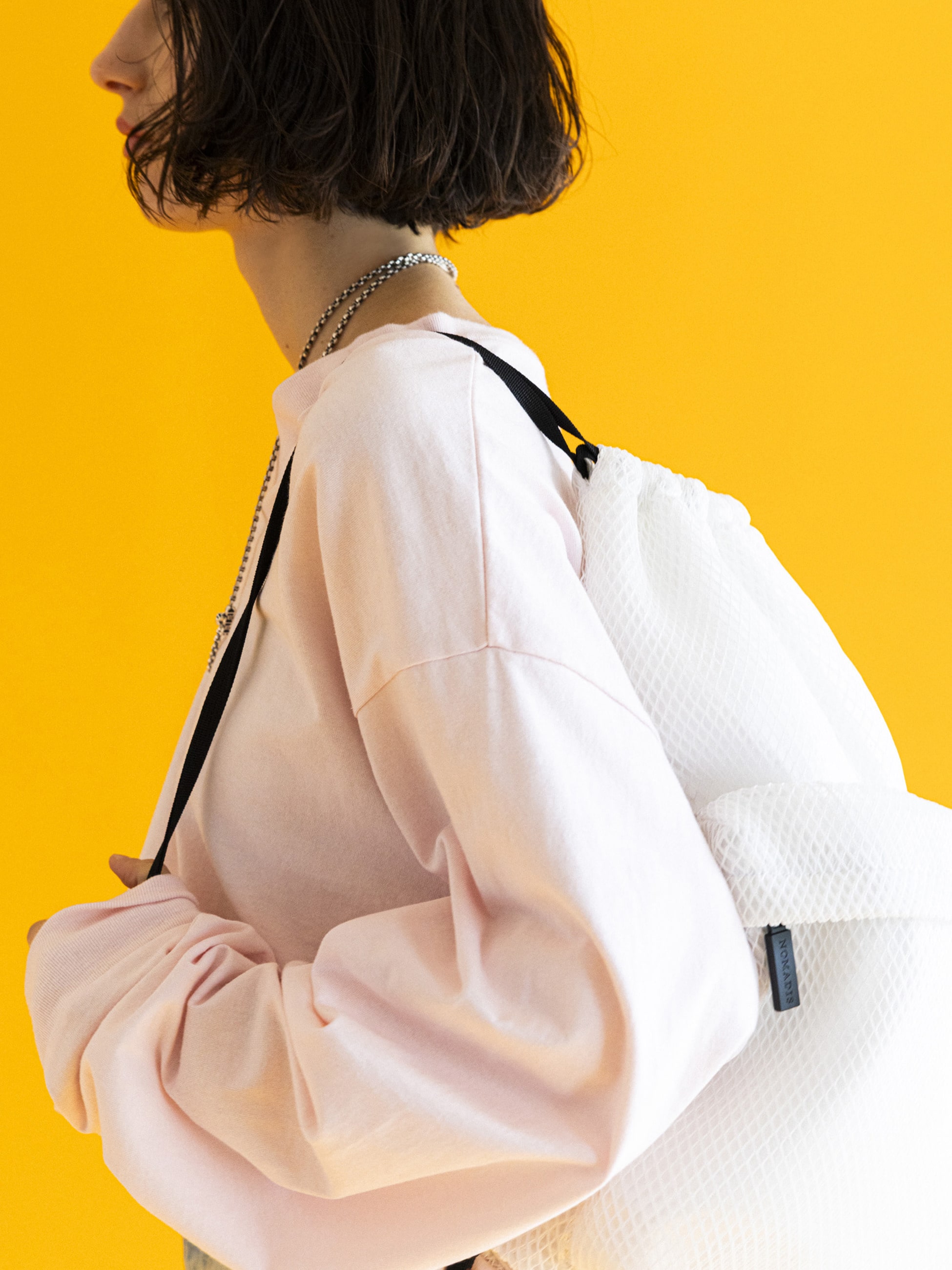 タウンユースではもちろんアクティブシーンにも活躍する「NOMADIS」とRHCの特別なコラボレーションバッグ「LATT(ラット)」が登場。ハリ感のあるメッシュ×ナイロン素材を採用し、型を一からRHC ロンハーマン仕様にデザインしました。巾着タイプで開閉しやすく、マチ部分に芯が入っている為型崩れしにくいのが特徴です。軽くて、機能的なデザインは、ファッションにスポーツの要素をプラスします。