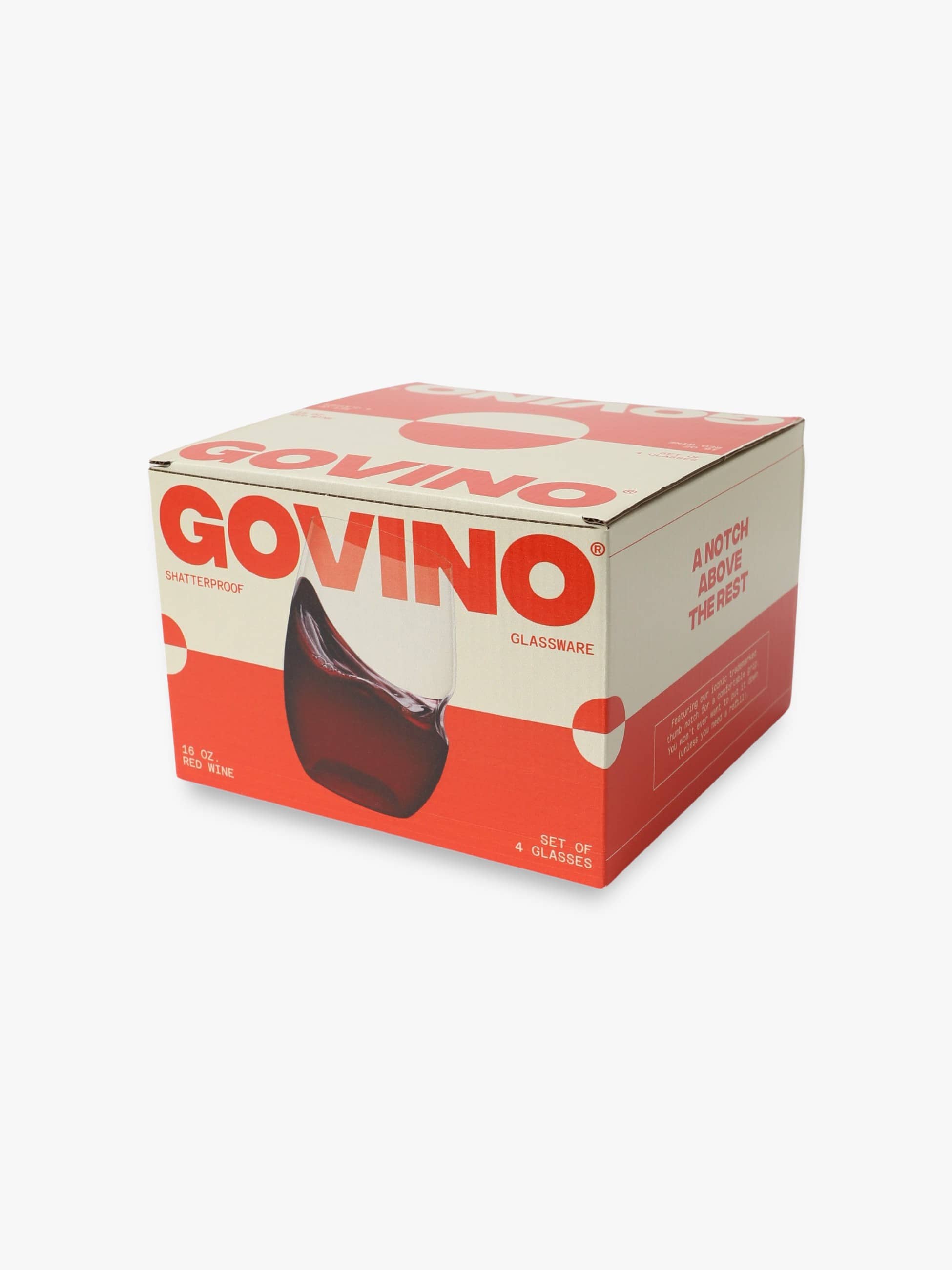 govino(ゴヴィノ)は、カリフォルニアで開発されたワイングラスです。世界的にも認められた脚の無いスタイリッシュなデザインは、人間工学に基づいており、手におさまり易いようくぼみを作り、また底面内側に曲線を作る事で、グラスの中のワインをスワリング(グラスを回す)しやすくしています。伸縮性があって割れず、洗って何度でも使えるほか、炭素、水素および酸素から構成されたポリエステル樹脂で作られているので、100%リサイクル可能です。 -