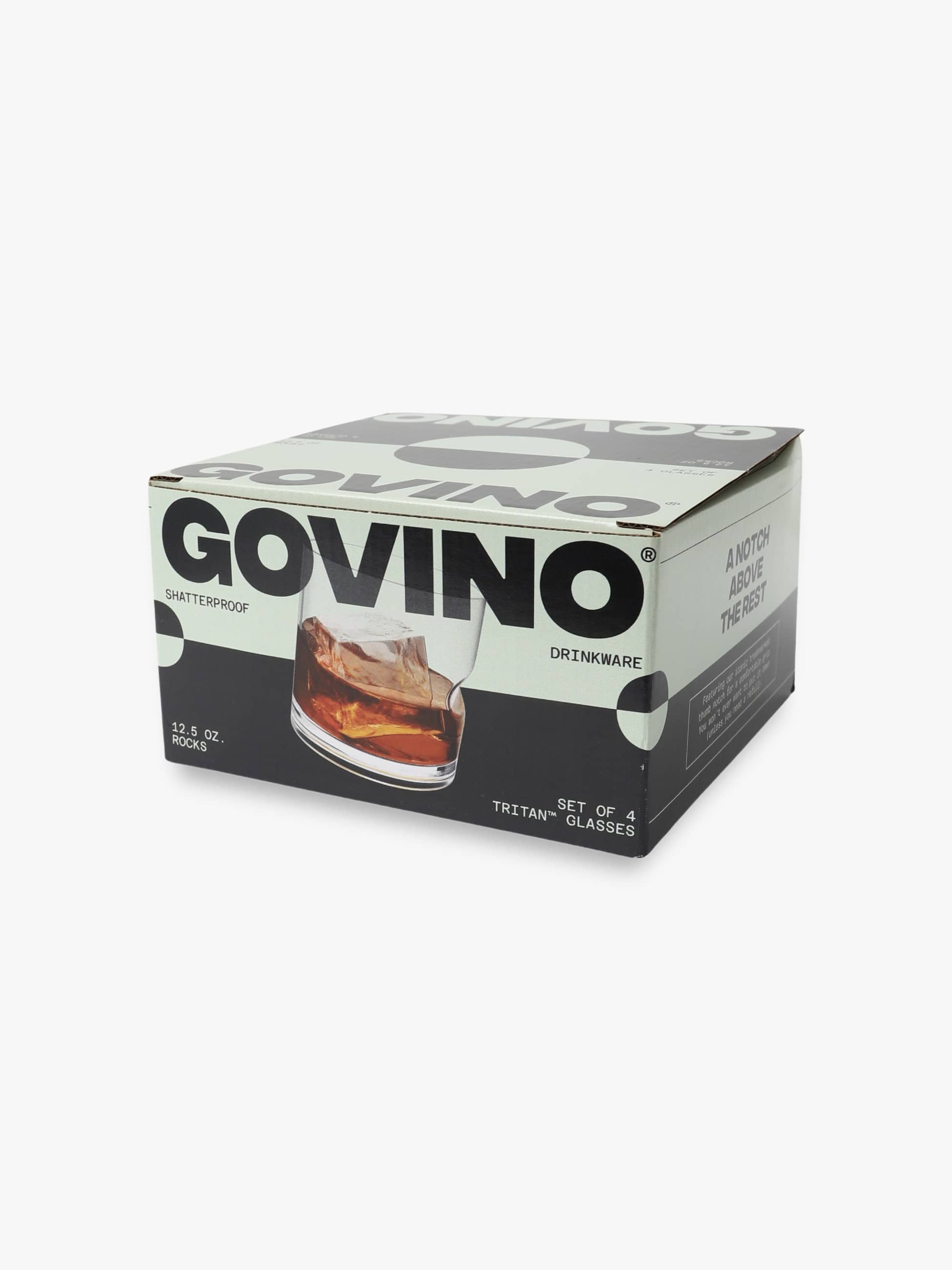 govino(ゴヴィノ)は、カリフォルニアで開発されたワイングラスです。世界的にも認められた脚の無いスタイリッシュなデザインは、人間工学に基づいており、手におさまり易いようくぼみを作り、また底面内側に曲線を作る事で、グラスの中のワインをスワリング(グラスを回す)しやすくしています。伸縮性があって割れず、洗って何度でも使えるほか、炭素、水素および酸素から構成されたポリエステル樹脂で作られているので、100%リサイクル可能です。