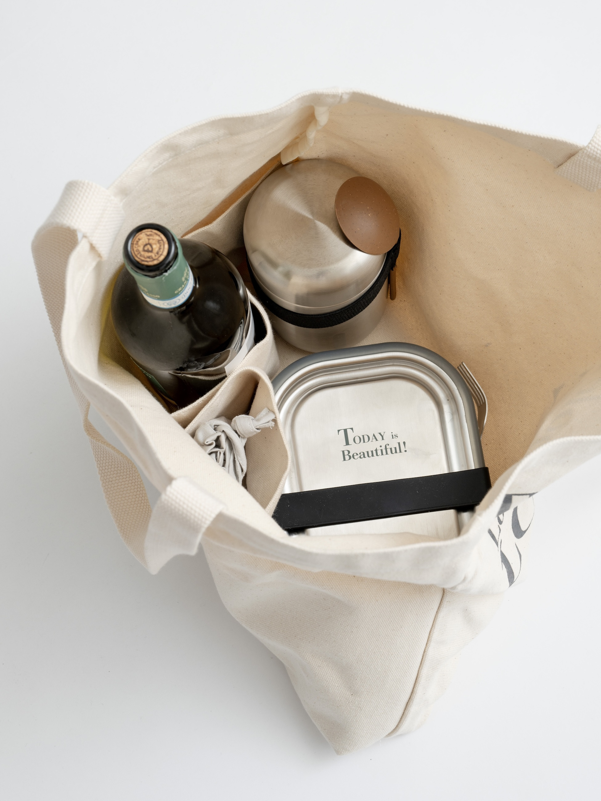 環境にやさしいオーガニックコットンを使用したキャンバストート。使うほどに風合いが増し、自分だけの味わいに育っていくのも魅力です。しっかりとした厚みがあり、ワインやお酒など少し重たい荷物も安心。お買い物や通勤はもちろん、キャンプなどアクティブなシーンにもぴったりです。