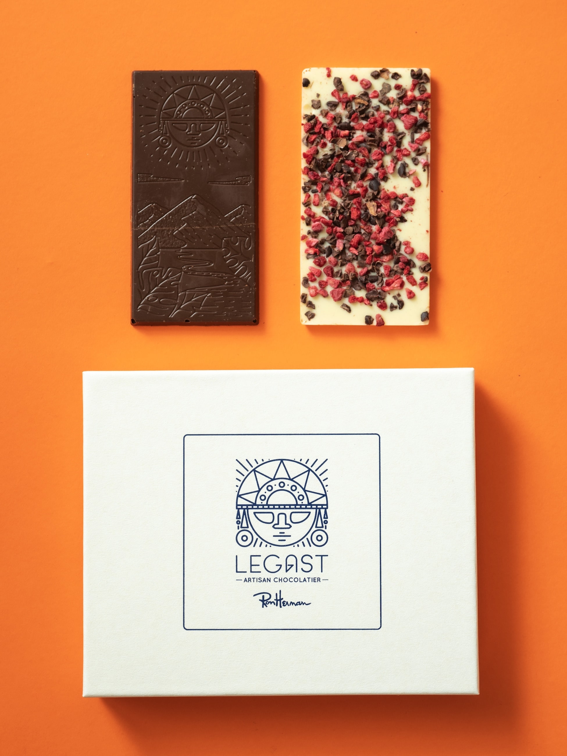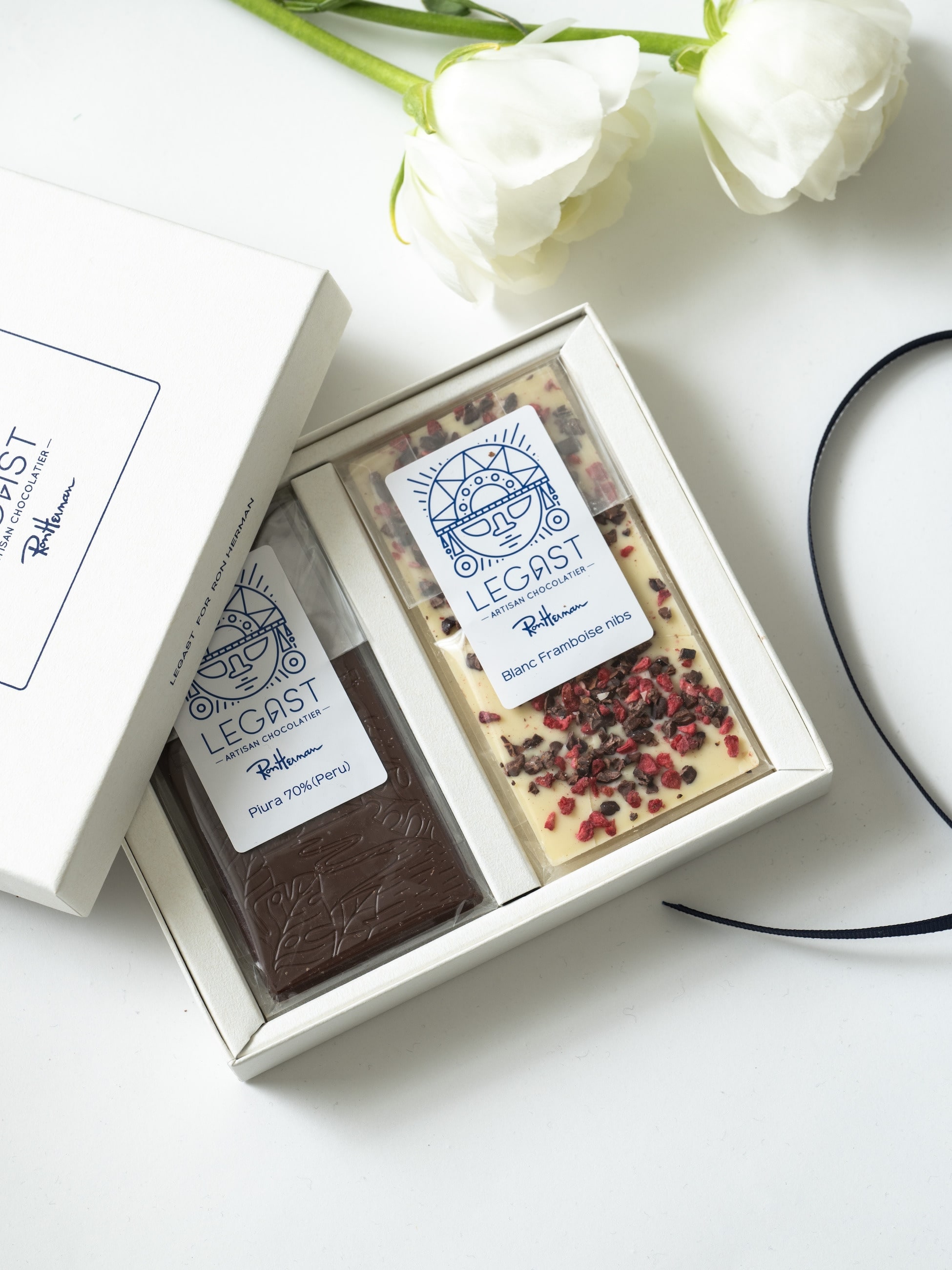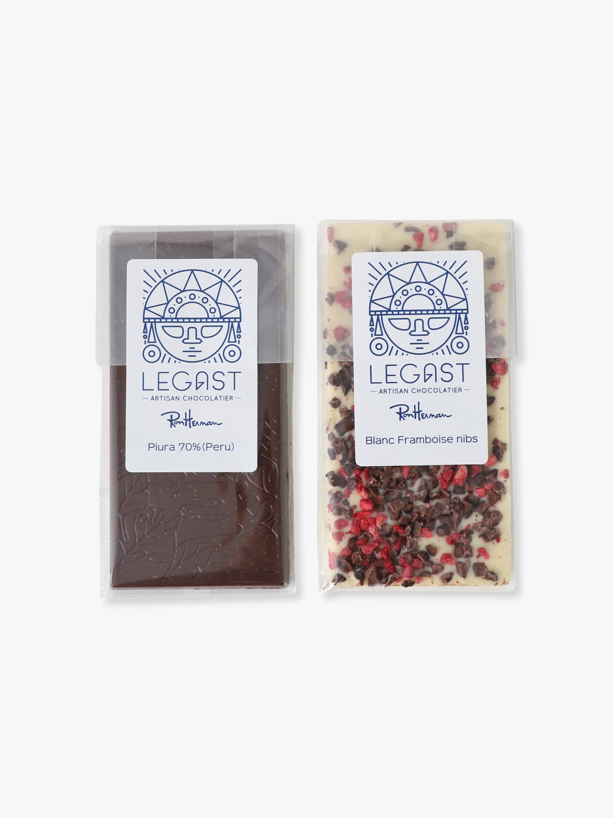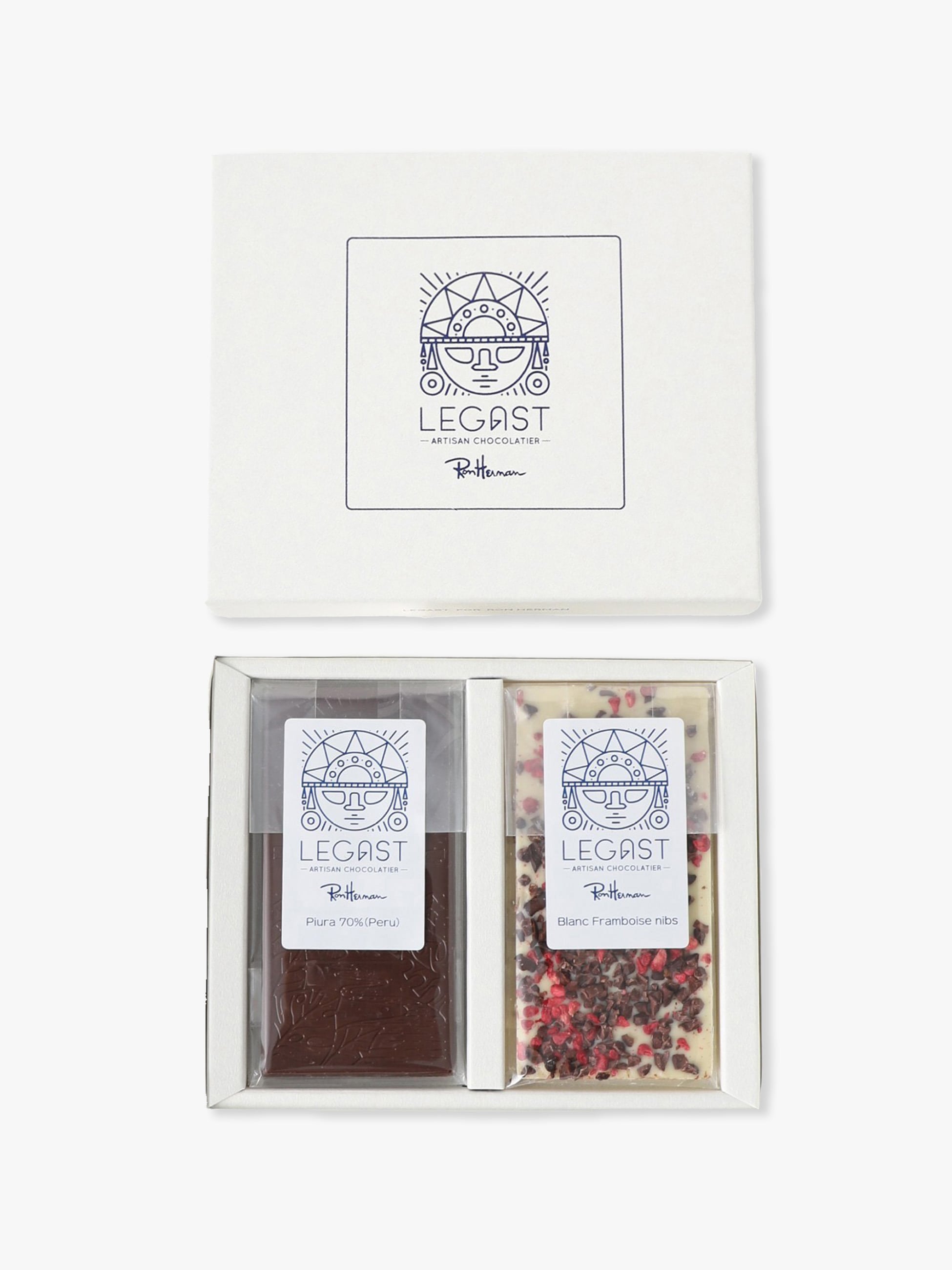 ベルギー発ショコラブランド Legast×Ron Herman Caféコラボレーション第2弾。ブリュッセル郊外の工房で、カカオ選定・焙煎・製造までショコラティエのシバウ・レガスト氏が一貫して手がける本格派ブランドです。有機栽培カカオをフェアトレードで直輸入し、味の追求とサステナブルな背景を両立。今回はRon Herman Café初のタブレットチョコボックスとして、ペルー北部ピウラ産の希少カカオを使ったフルーティーで奥行きある ダークチョコレート、甘酸っぱいラズベリー×カカオニブの食感が楽しいホワイトの2種をセットに。香り・酸味・食感の違いを贅沢に食べ比べできます。ご自身へのご褒美にも、大切な方へのギフトにもおすすめなアイテムです。