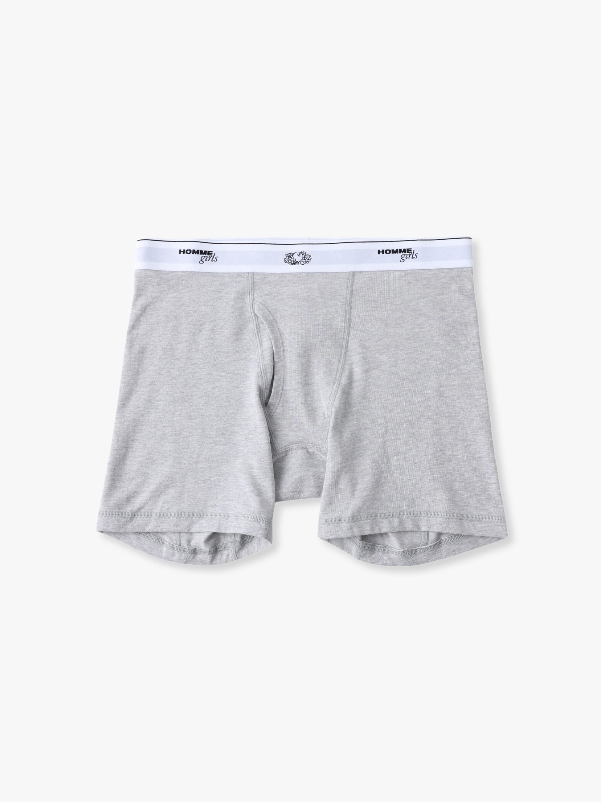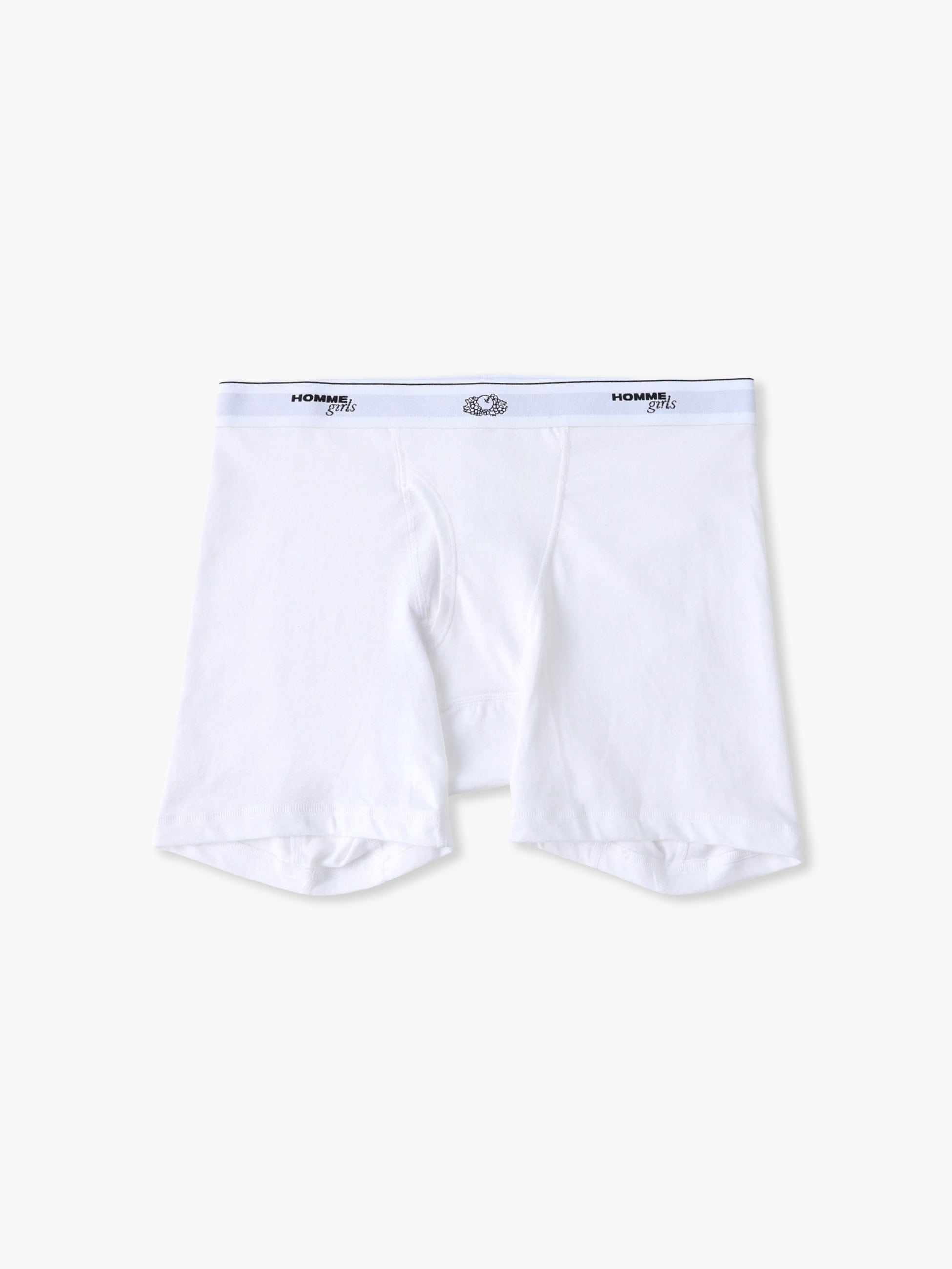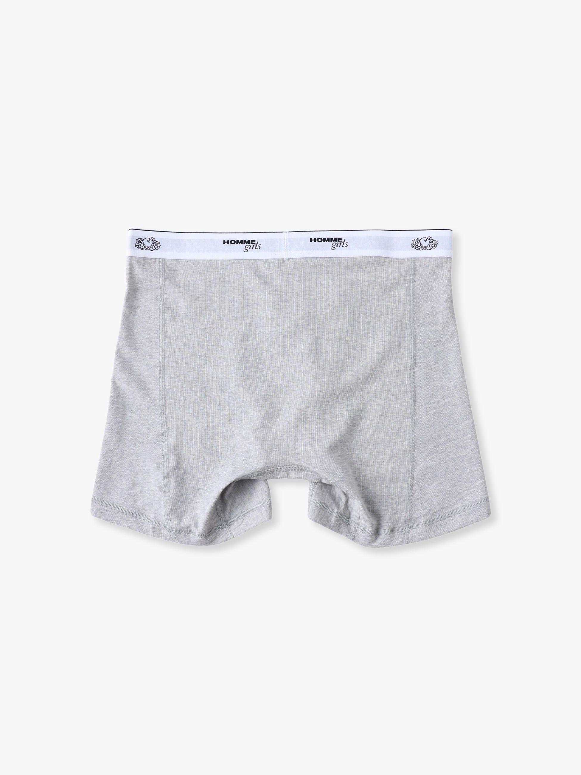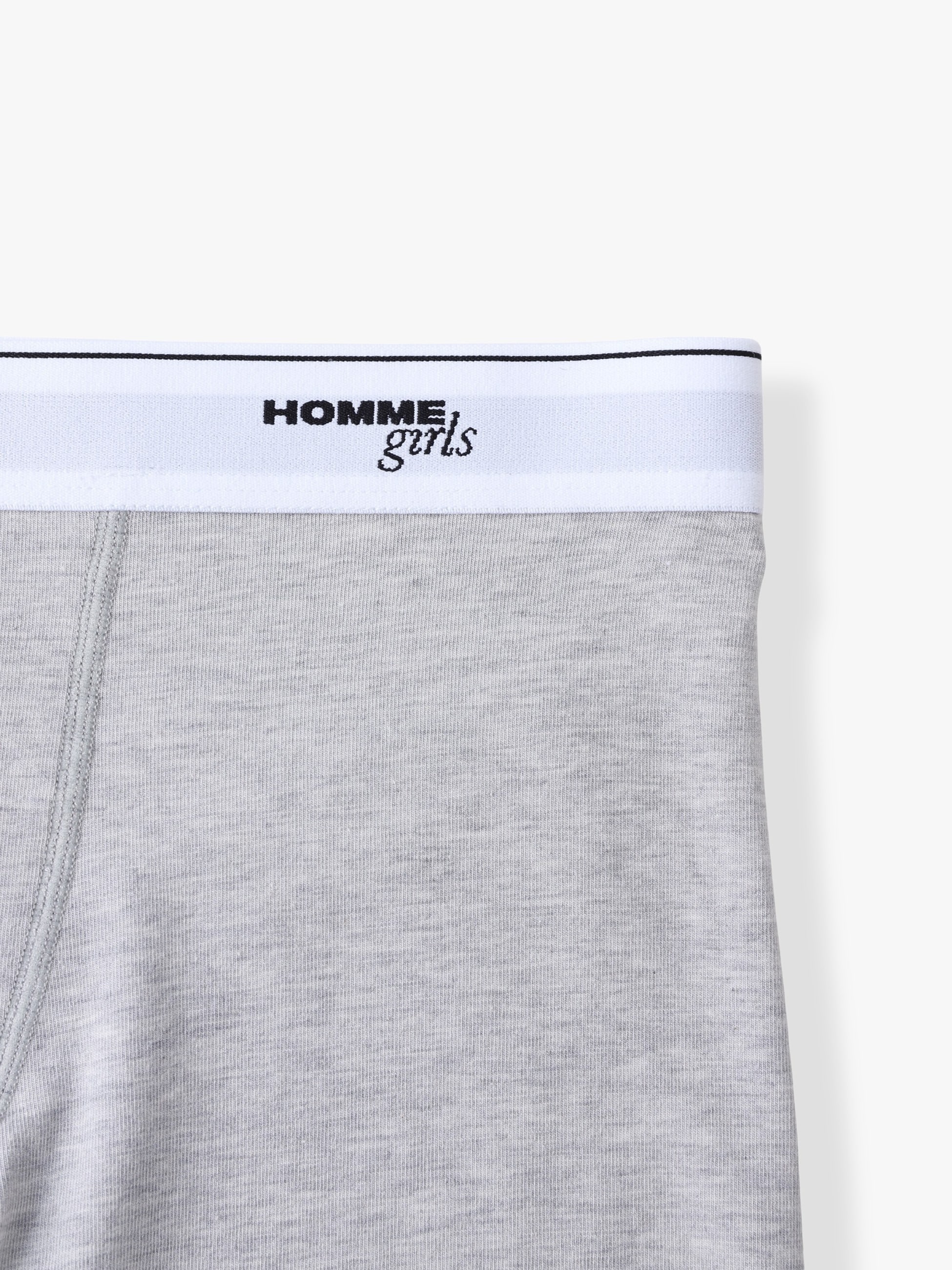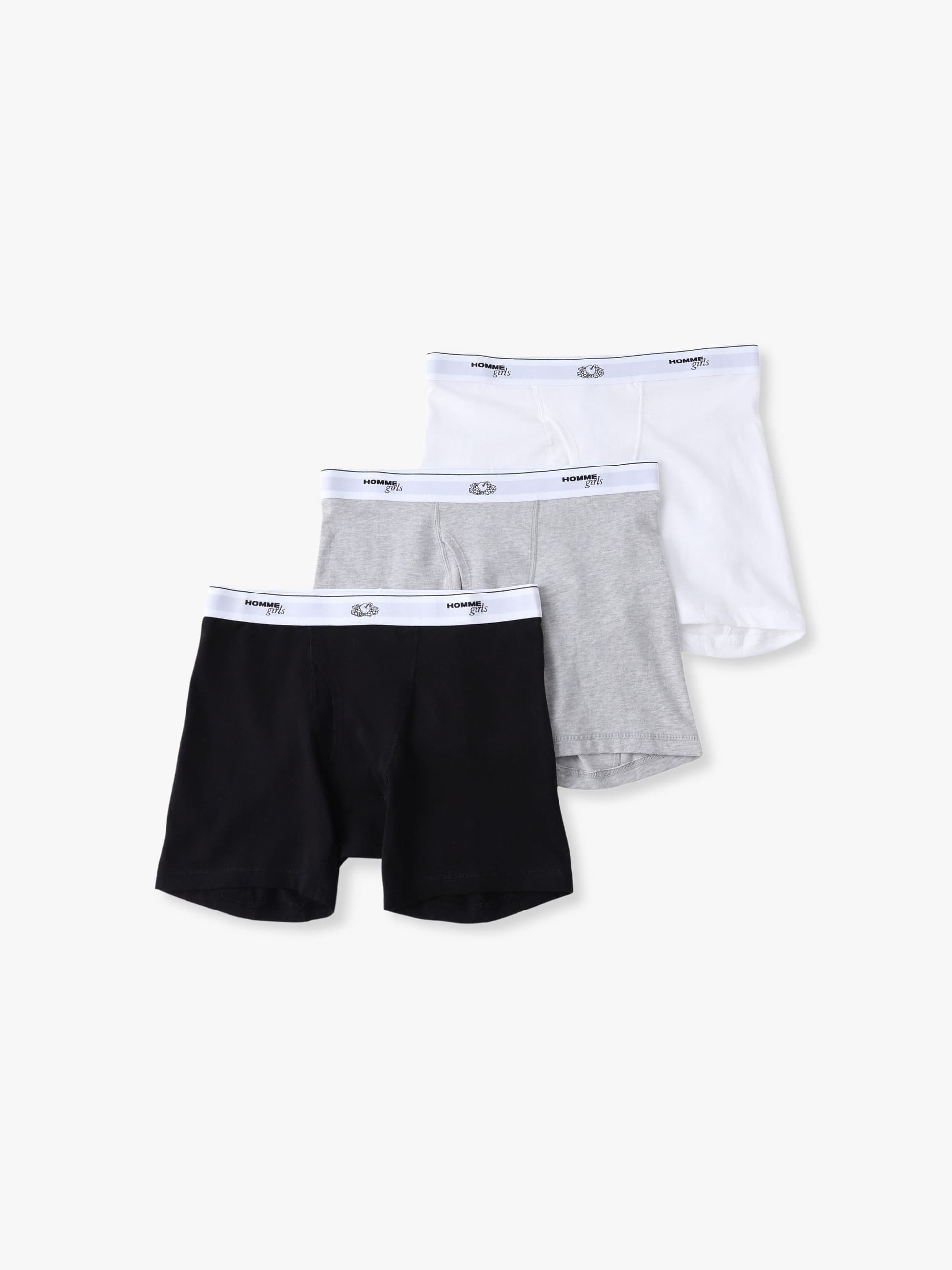 HOMME GirlsとFruit of the Loomの初めてとなるコラボレーションアイテムが登場です。3枚組のボクサーショーツは、コットン100%素材で穿き心地も抜群です。「HOMME girls x Fruit of the Loom」のロゴが入ったゴムバンド付きで、様々なボトムスのウエストからショーツのゴム部分を見せることでヘルシーなスタイリングをお楽しみいただけます。
