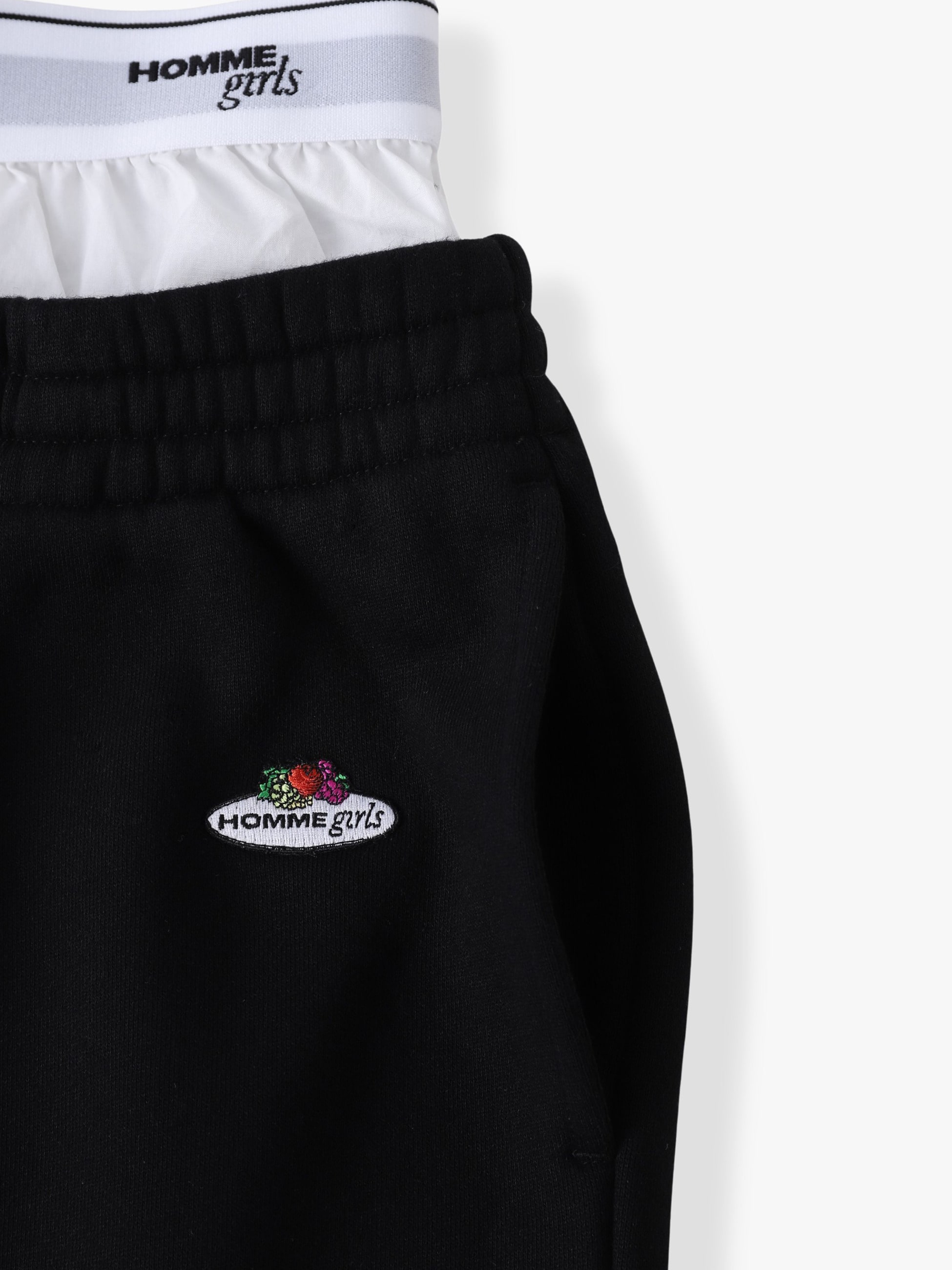 HOMME GirlsとFruit of the Loomの初めてとなるコラボレーションアイテムが登場です。HOMME Girlsのシグネチャーアイテムのひとつであるスウェットパンツは、ブランドロゴ入りのウエストがゴム仕様でリラックスした穿き心地ながら、洗練された印象の優秀なパンツです。同型のネイビーカラーはこちら