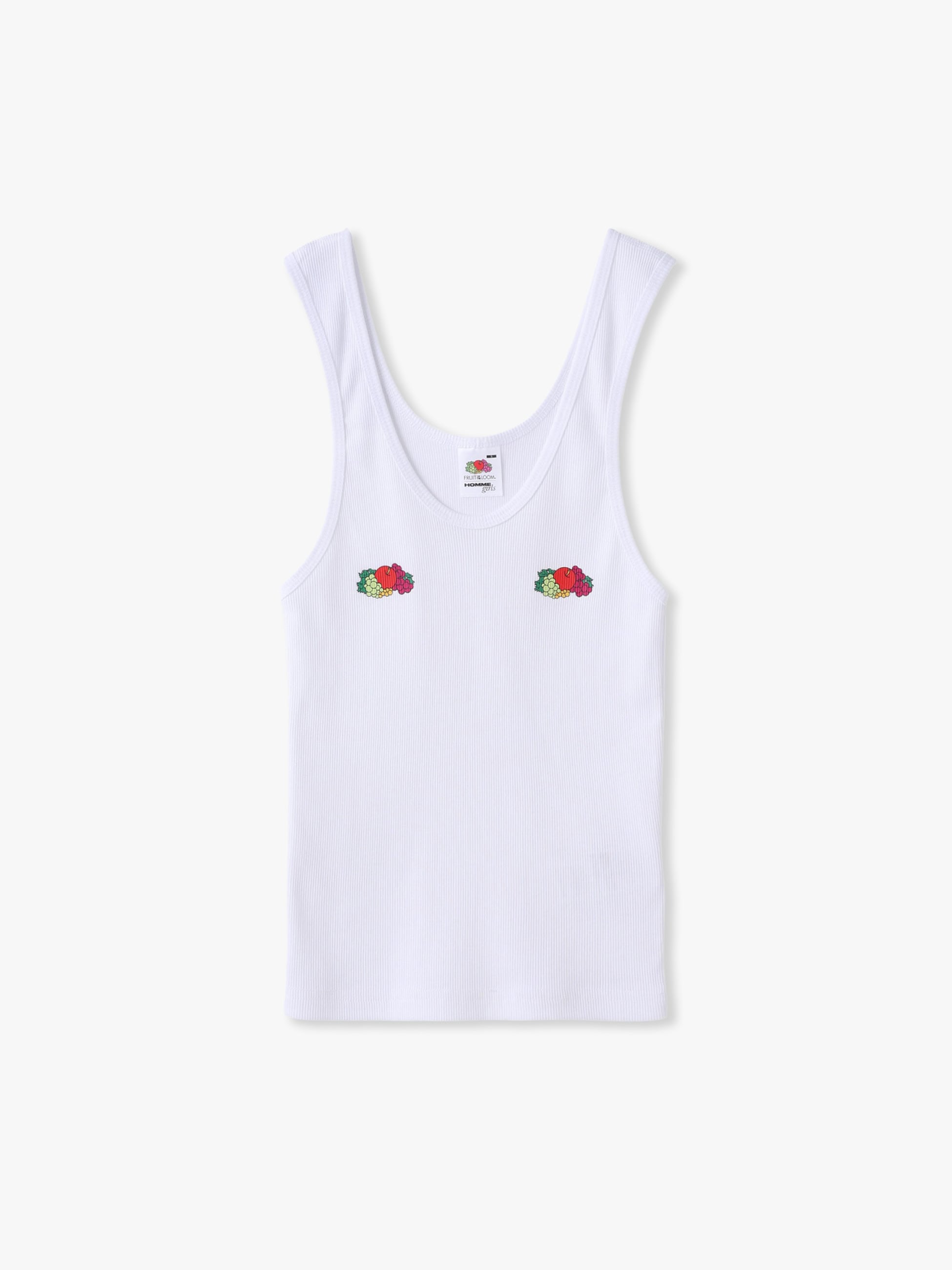 - HOMME GirlsとFruit of the Loomの初めてとなるコラボレーションアイテムが登場です。胸元にフルーツ・オブ・ザ・ルームのダブルロゴをあしらったコットン素材のリブタンクトップは、深めのスクープネックデザインに、コンパクトなサイジングが、ミニマルでヘルシーな印象を演出します。同柄のコンパクトティーはこちら。