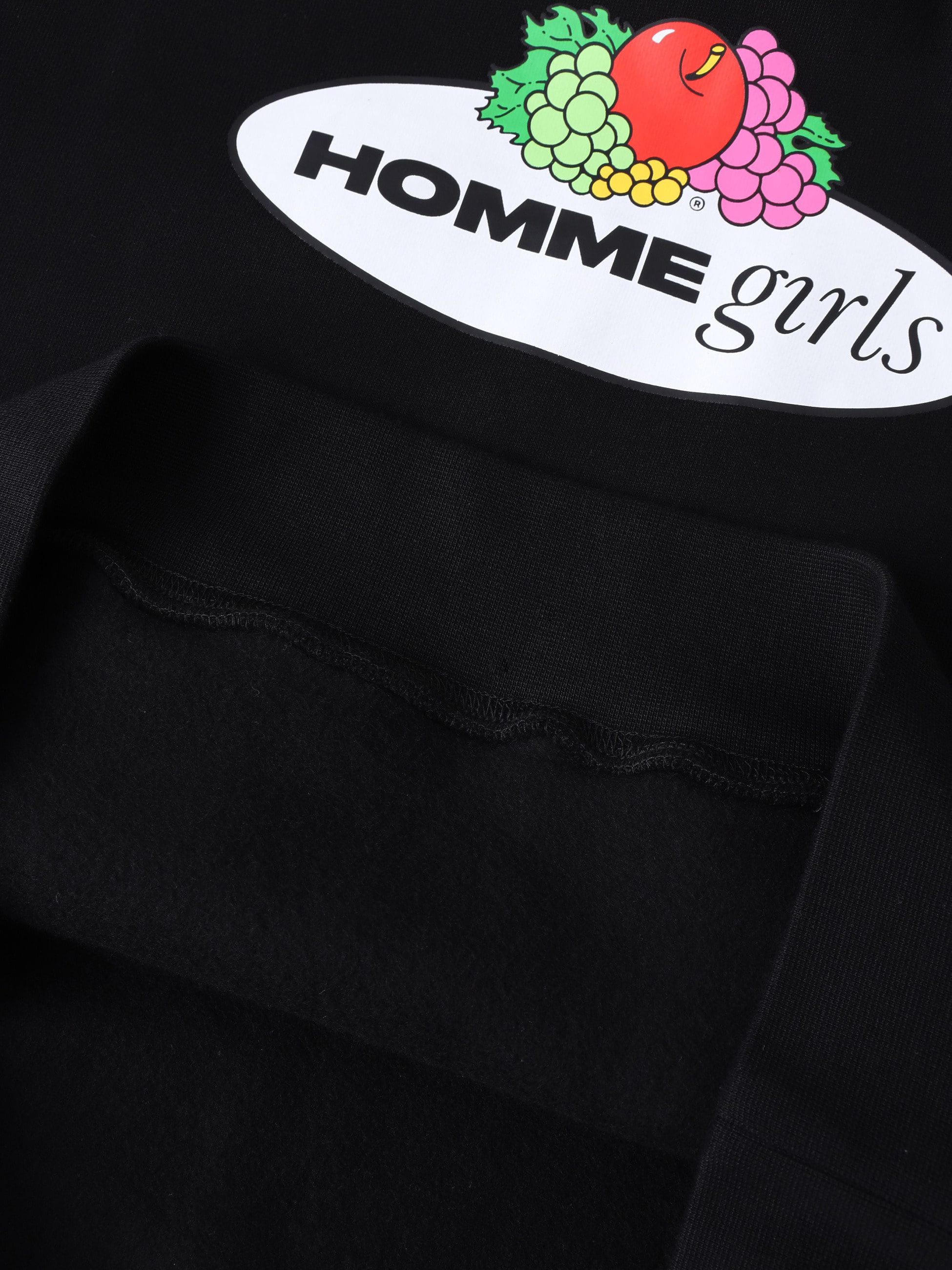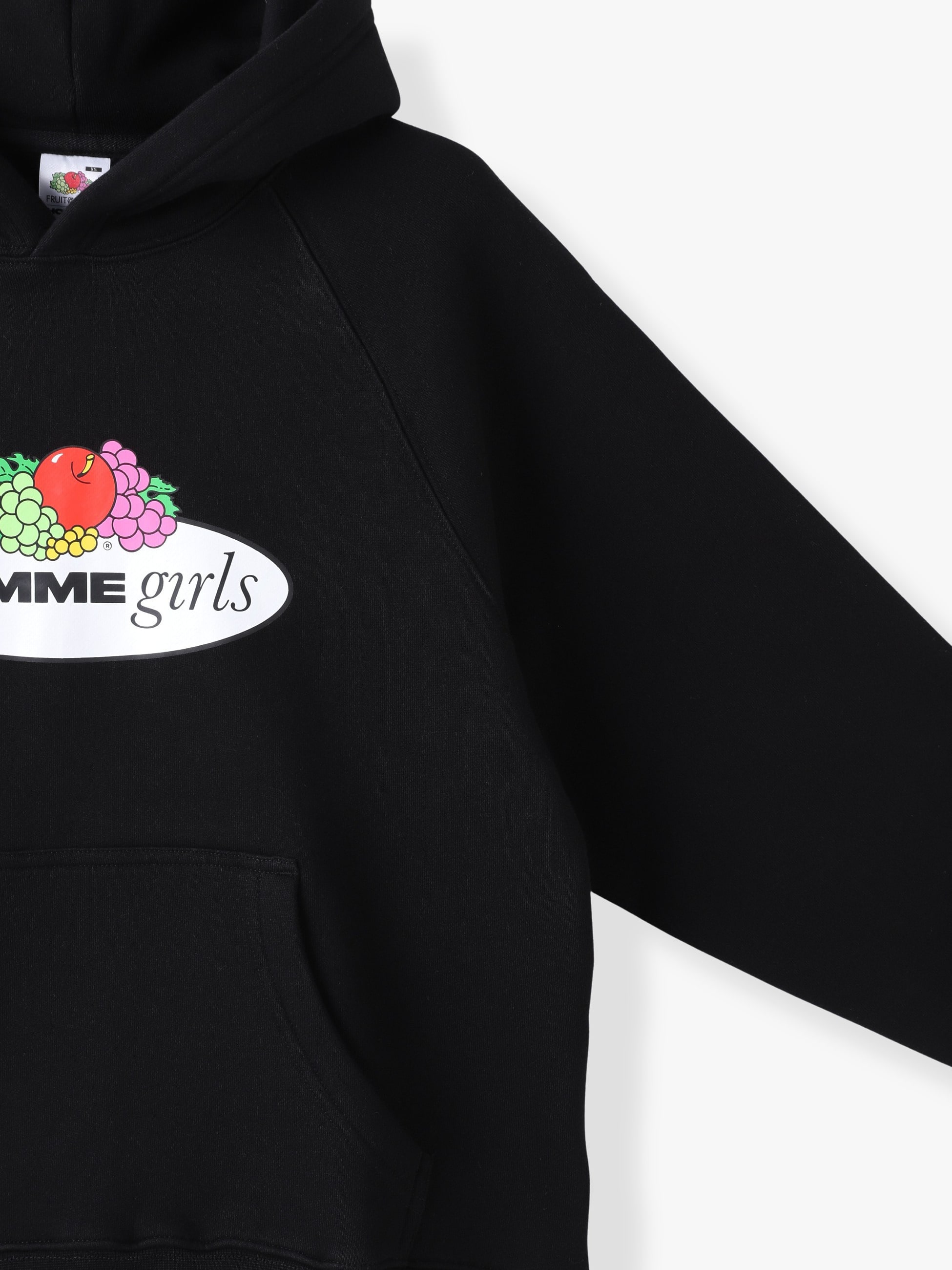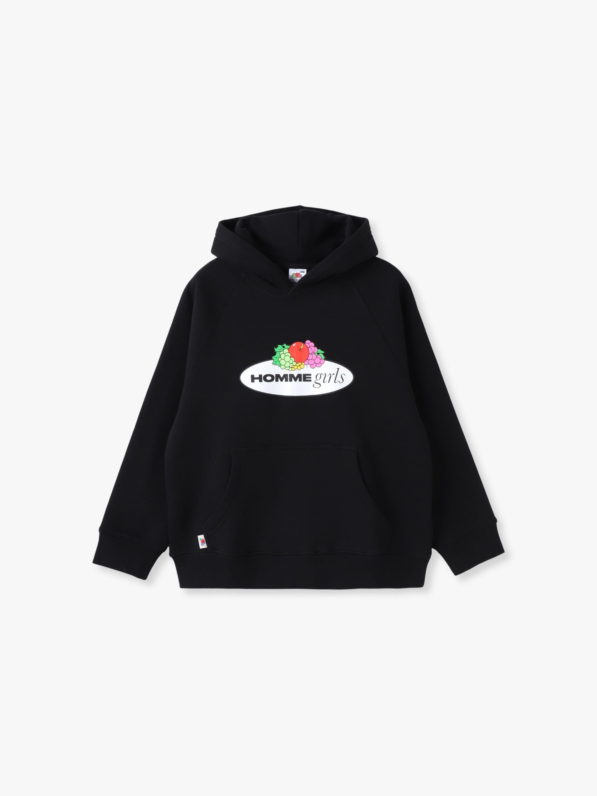 - HOMME GirlsとFruit of the Loomの初めてとなるコラボレーションアイテムが登場です。コットンを100%使用したフーディーは、ゆったりとしたシルエットで、デイリーユースにもぴったりです。胸元にコラボレーションロゴを大胆にプリントし、フロントポケットのFruit Of The Loomのロゴタブが、さりげないワンポイントです。