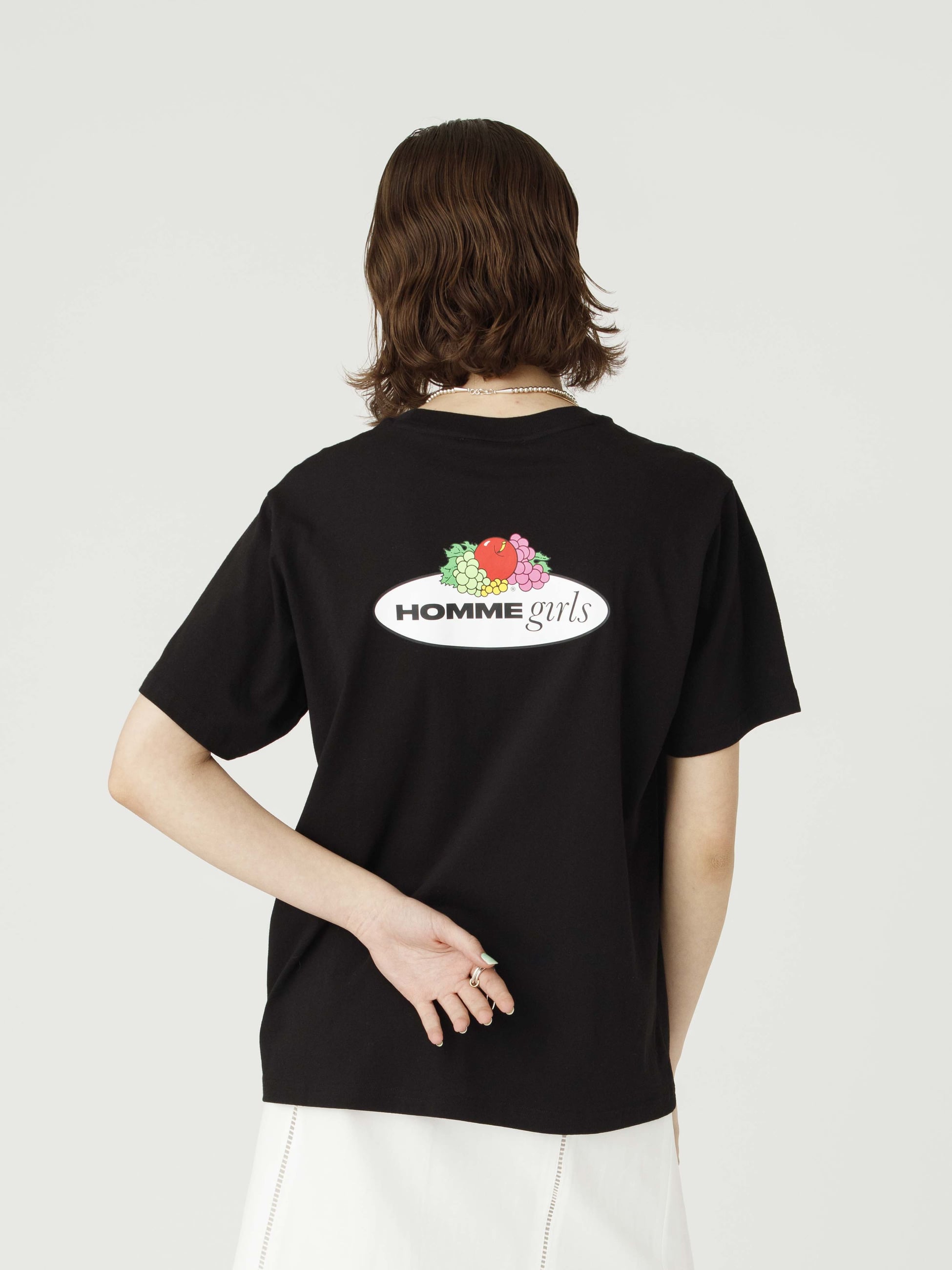 - HOMME GirlsとFruit of the Loomのコラボレーションアイテムから、背面にあしらわれたロゴプリントが印象的なTシャツを、ブラック、ラベンダー、ライトブルーの3色でカラー別注しました。コットン100%で着心地もよく、左胸のポケットがアクセント。クラシックなシルエットは合わせるボトムスを選ばず、ワードローブとして重宝する特別な1着です。同型のホワイトもございます。