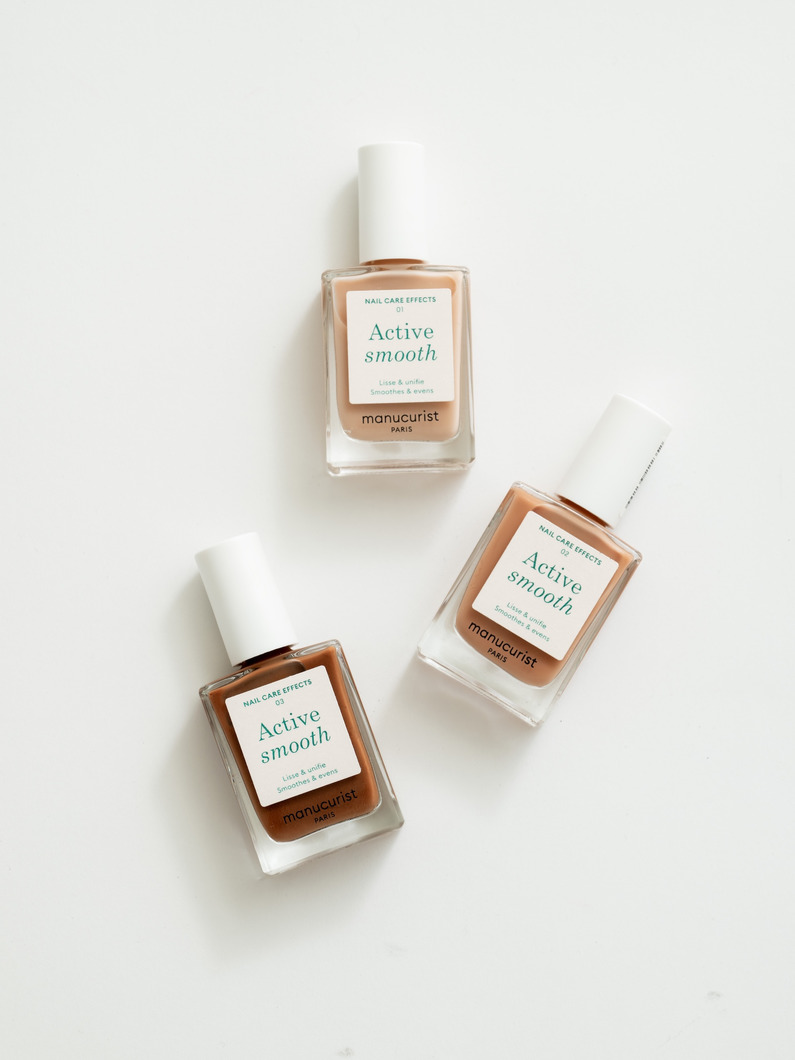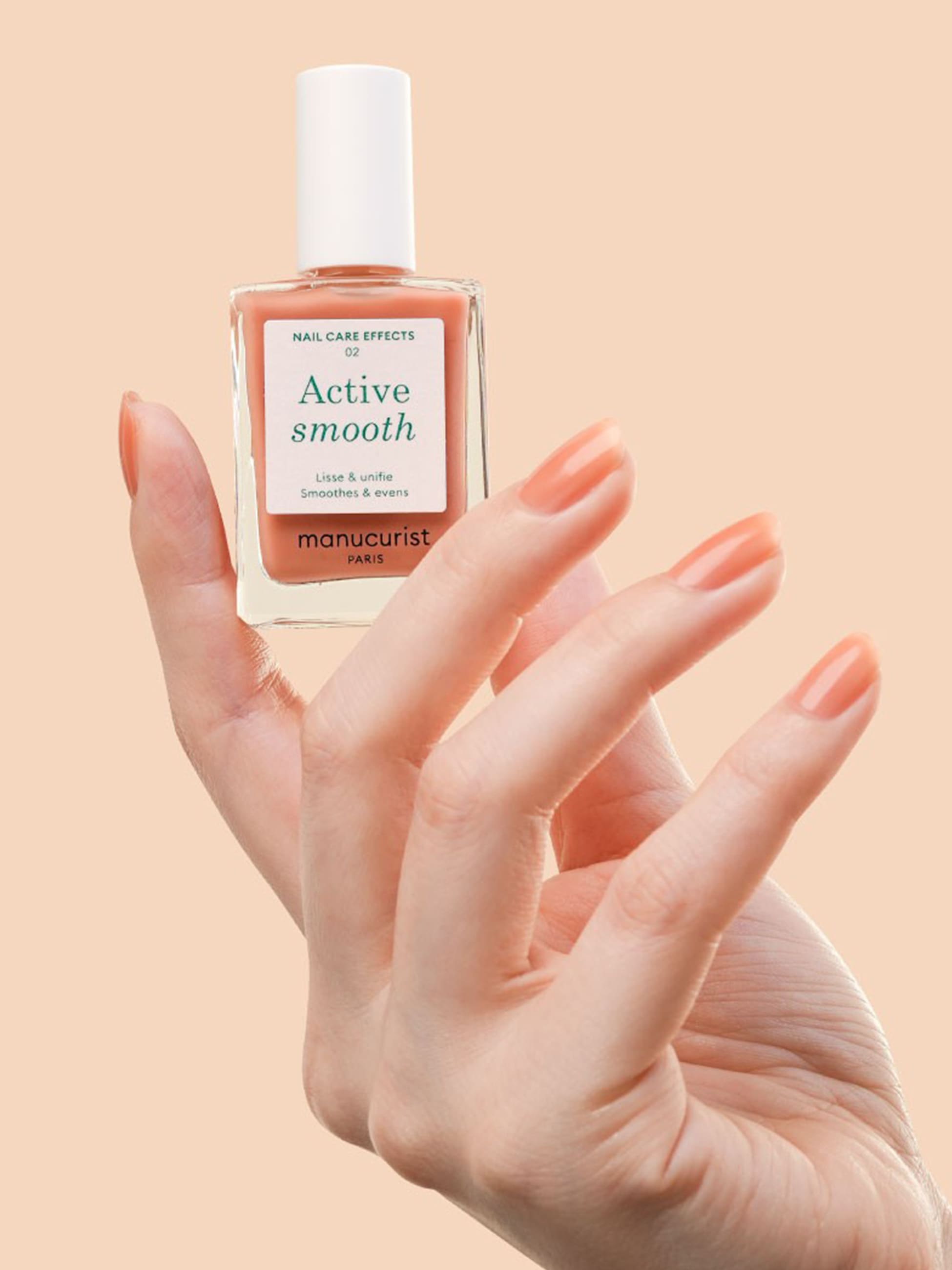 パリのネイルスペシャリストが考案した、ベース・カラー・トップ、トリートメントが一つになったオールインワンのネイルポリッシュのアクティブシリーズより、2025年の新色が登場。スムース02は、ありそうでなかった絶妙な透明感のあるブラウンで、こなれ感たっぷりのネイルに仕上がります。まるで爪に纏うフィルターのように、くすみや凹凸を自然にぼかし、肌色を問わずトーンを整えます。豊かな植物由来成分が爪にうるおいを与え、健やかにしながら、セルフネイルをお楽しみいただけます。