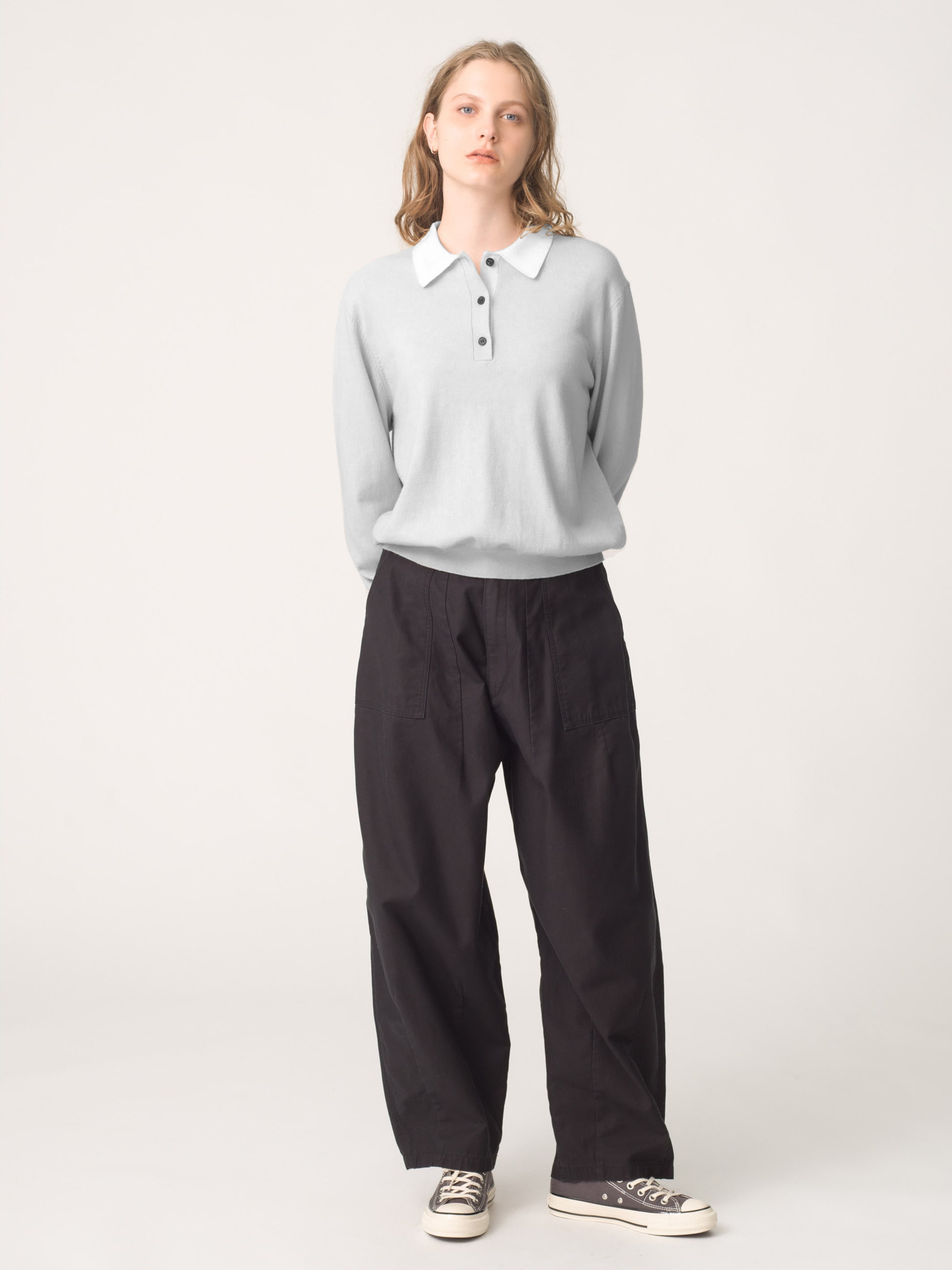 ミレイ ポロ ニットプルオーバー(チャコールグレー/ライトブルー/オートミール)