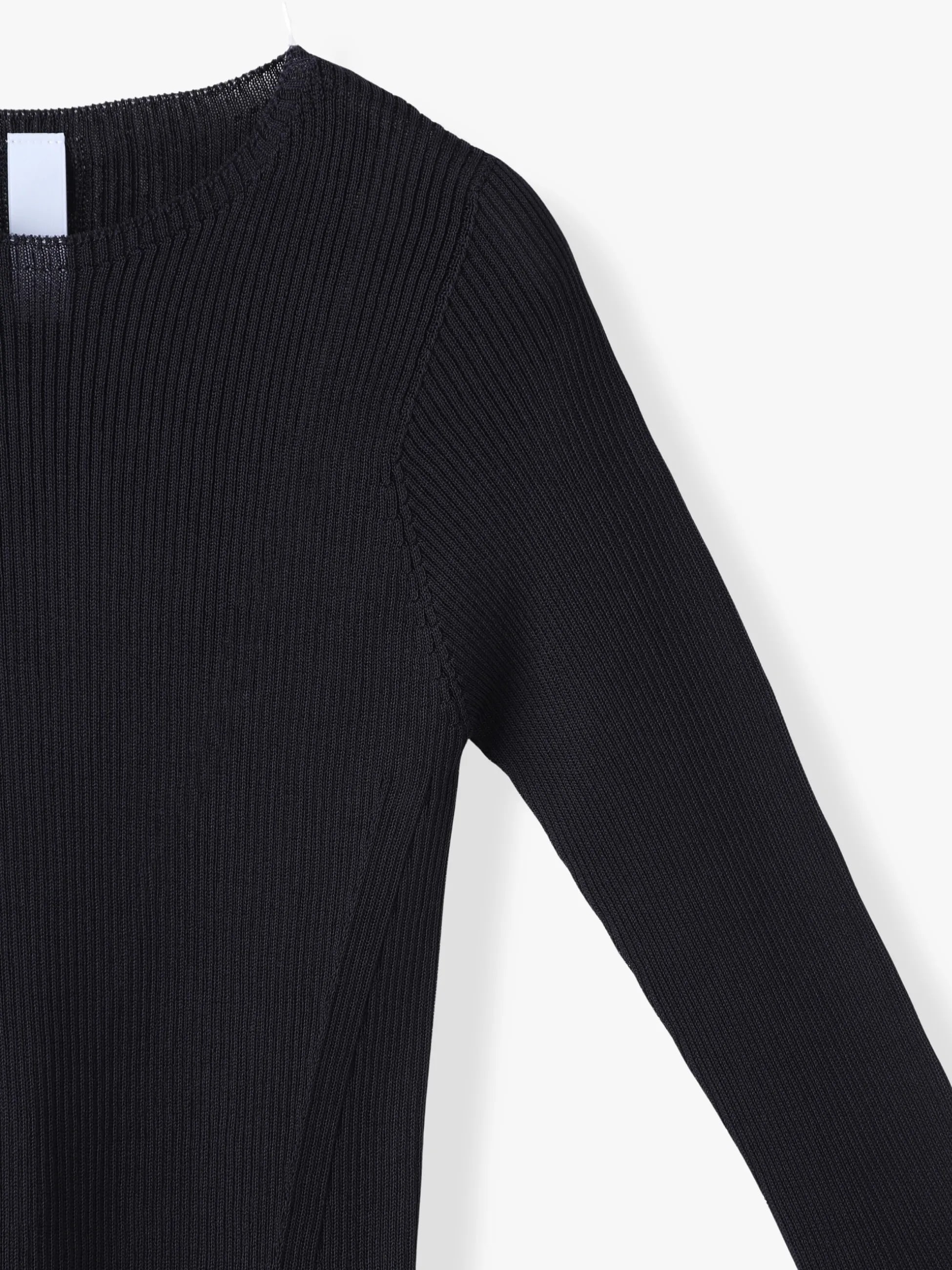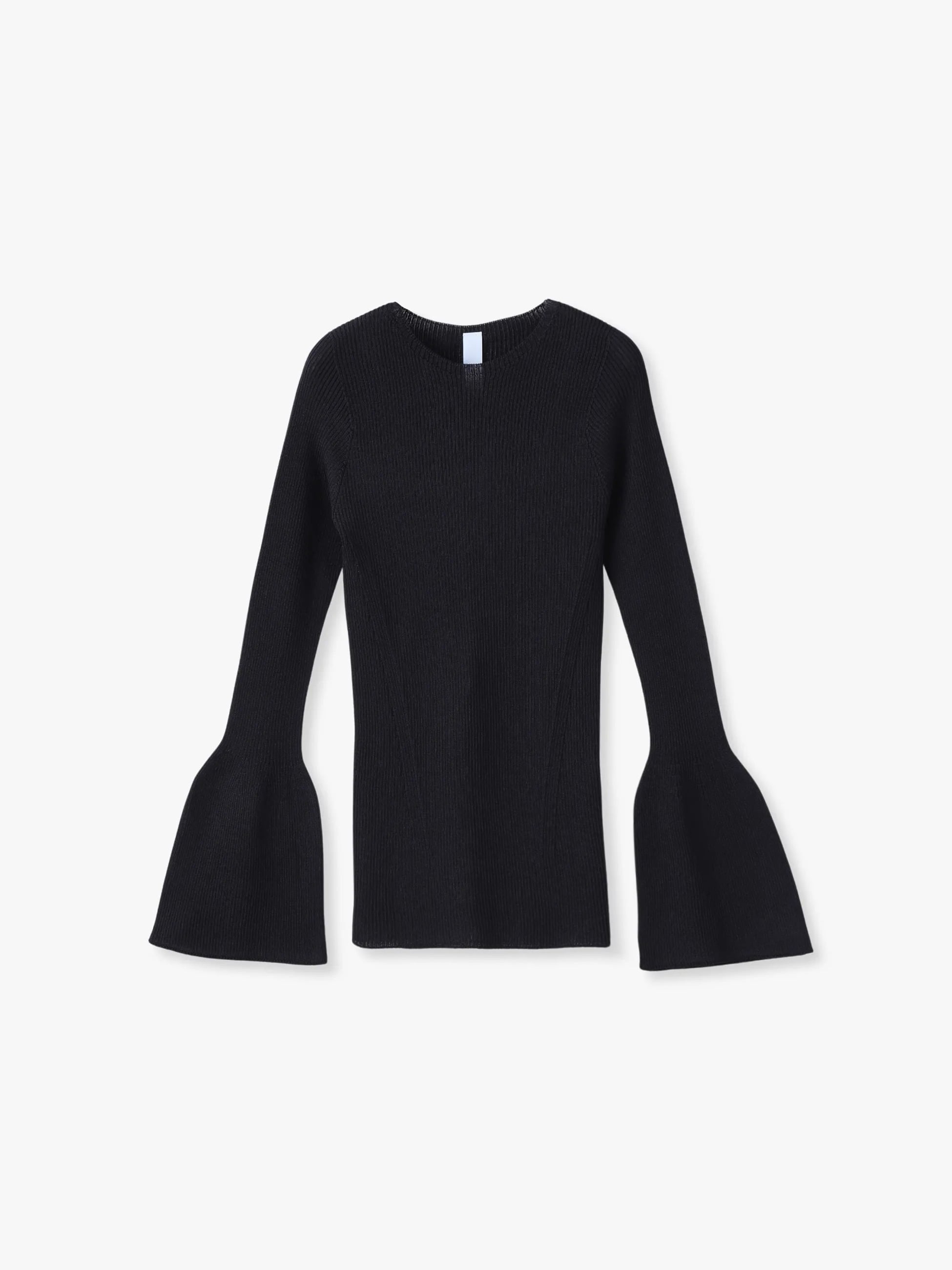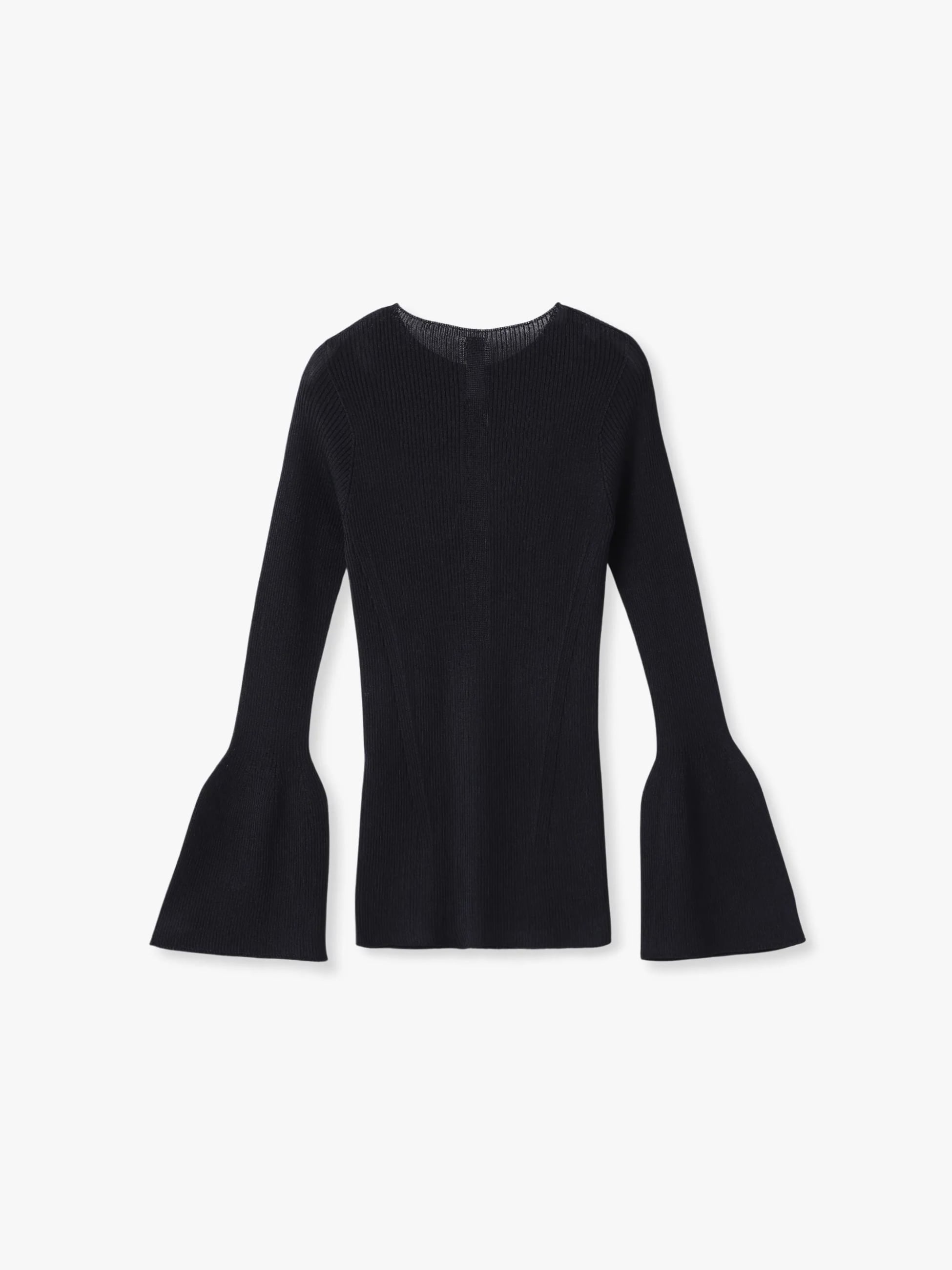 - ハイゲージリブ素材を用いたタイトなシルエットのベルスリーブトップスは、ミニマルながらも、編み続きのベルスリーブがデザインのアクセントです。キュプラならではのサラッとした肌触りで、無縫製ならではの快適な着心地です。どんなボトムスとも好相性で、普段使いとしてはもちろん、お出掛け着としても活躍する一枚です。