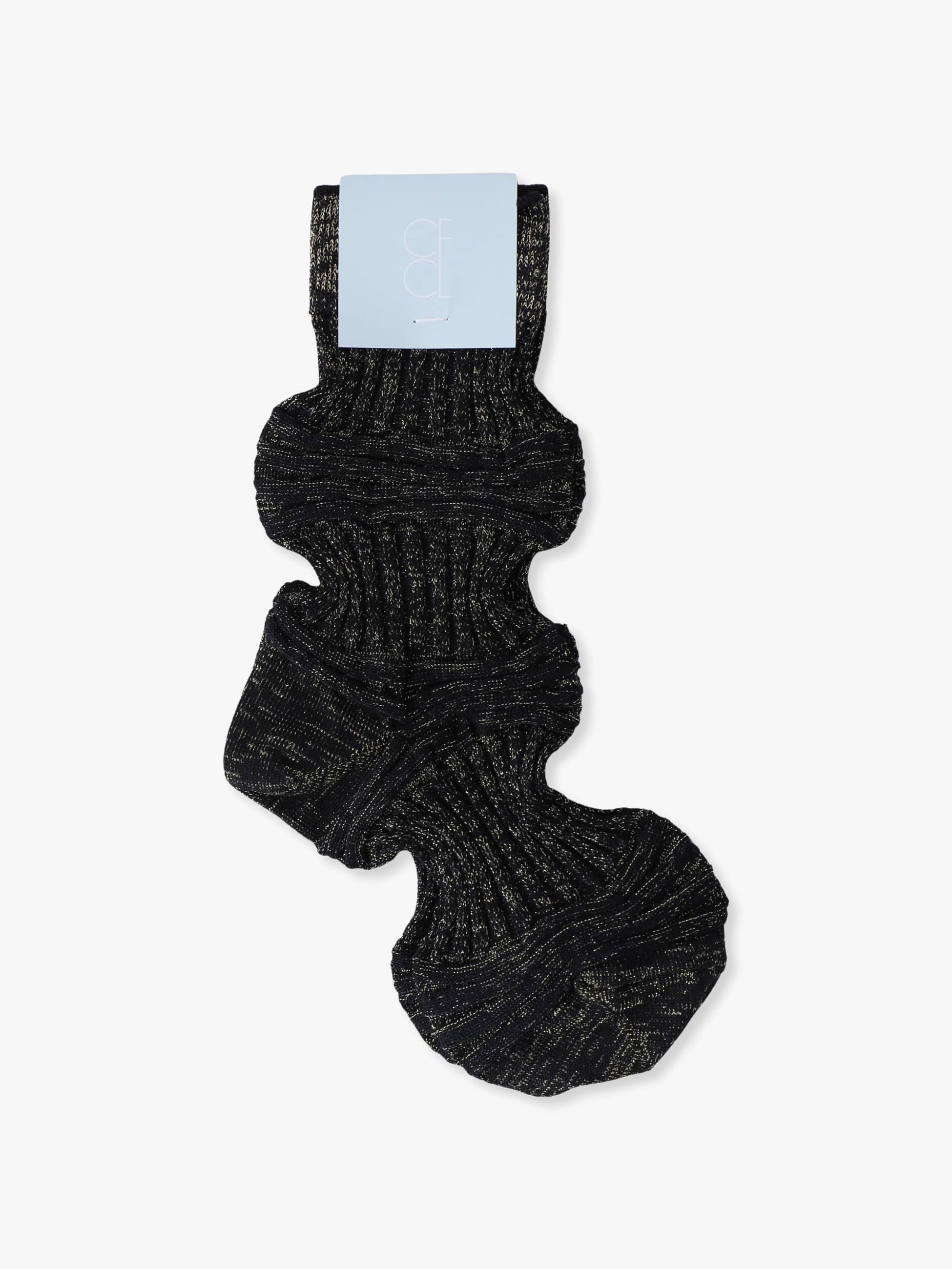 - ユニークなシルエットのソックスは、横に突っ張る性質のガーターと横に縮む性質のあるリブを交互に組み合わせ、爪先やかかとなどの負荷がかかる部分には再生ポリエステルを使用し、その他は透け感のある糸と肌触りの良いオーガニックコットンで仕立てています。着用するとオーソドックスなシルエットになり、コーディネートのワンポイントとしてや、サンダルと合わせたスタイリングも素敵です。