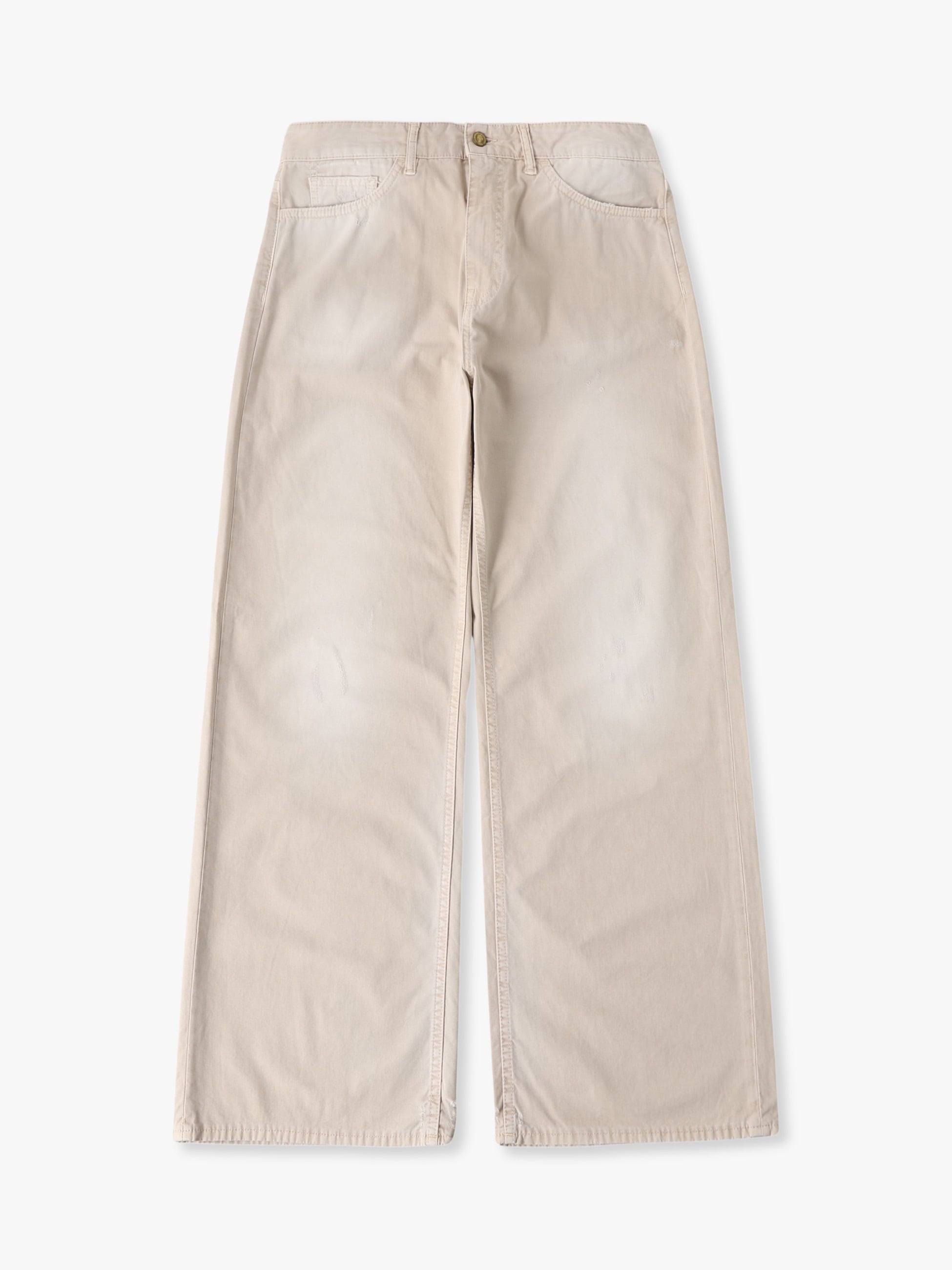 - 100%コットン素材のデニムパンツは、ダメージ加工とガーメントダイ加工によるヴィンテージのような表情とフェードしたカラーリングが特徴です。また、ゆったりとしたリラックスフィットは、シンプルなコーディネートの主役になる一着です。