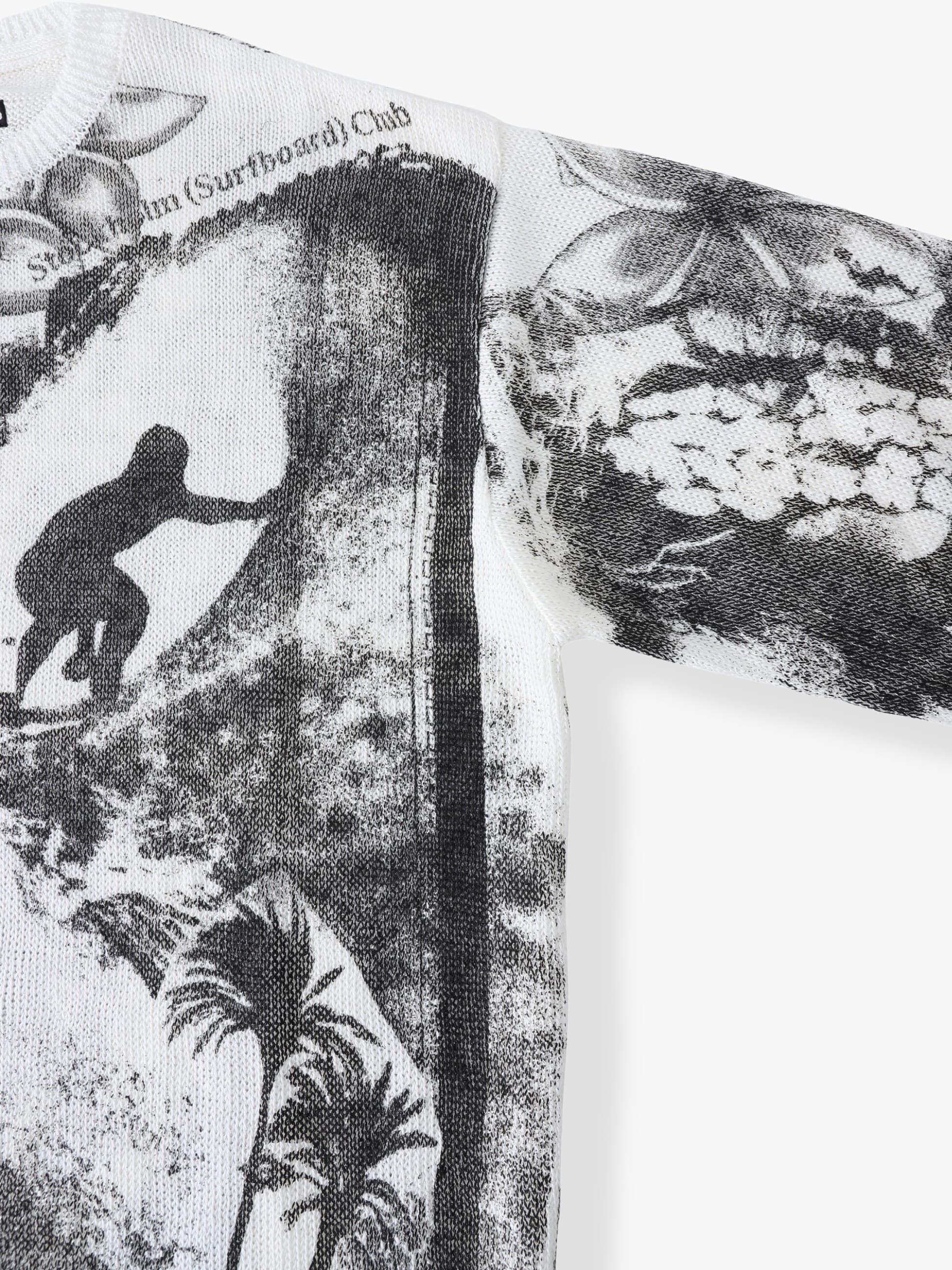- リネンを混紡したニット素材を使用したプルオーバーは、全体にプリントで施されたサーフ柄のコラージュデザインが特徴です。また、リネン特有のライトな着心地や清涼感のある風合いもポイント。程よくすっきりとしたレギュラーフィットは、コーディネートの主役になる一着です。
