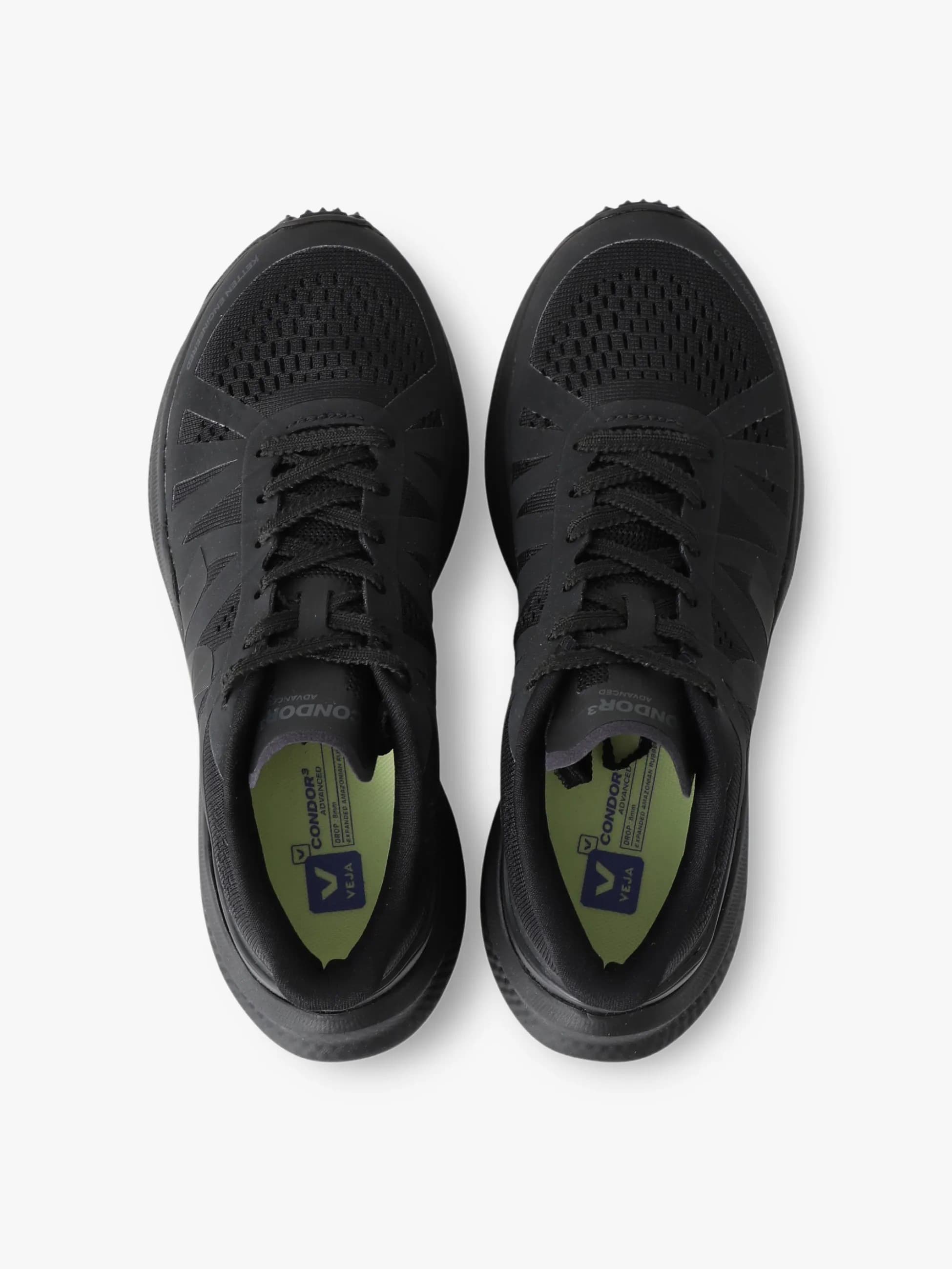 VEJAのランニングラインから登場したランニングシューズ「Condor 3 Advanced」です。モード感の漂うオールブラックで仕上げた一足は、ランニングはもちろん、日常やお出かけ時にもぴったりで、しっかりとした安定感のあるソールが抜群の履き心地です。