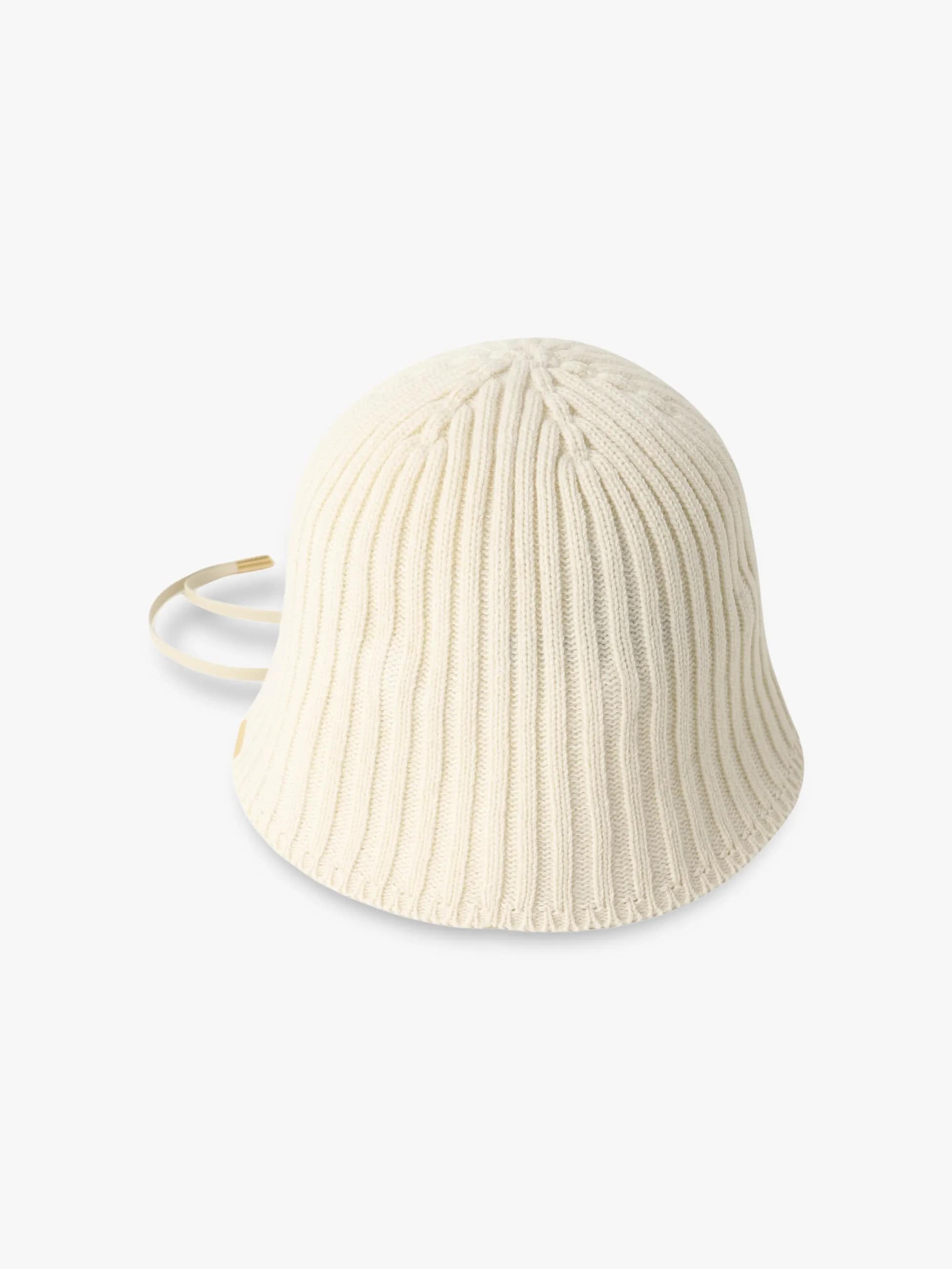 - リブのニットキャップは、ハットのようなデザインと、ソフトな雰囲気でありながらもきちんと自立する、端正なフォルムが特徴です。付属のドローコードは取り外しが可能で、シンプルで上質感があり、長く愛用できるアイテムです。