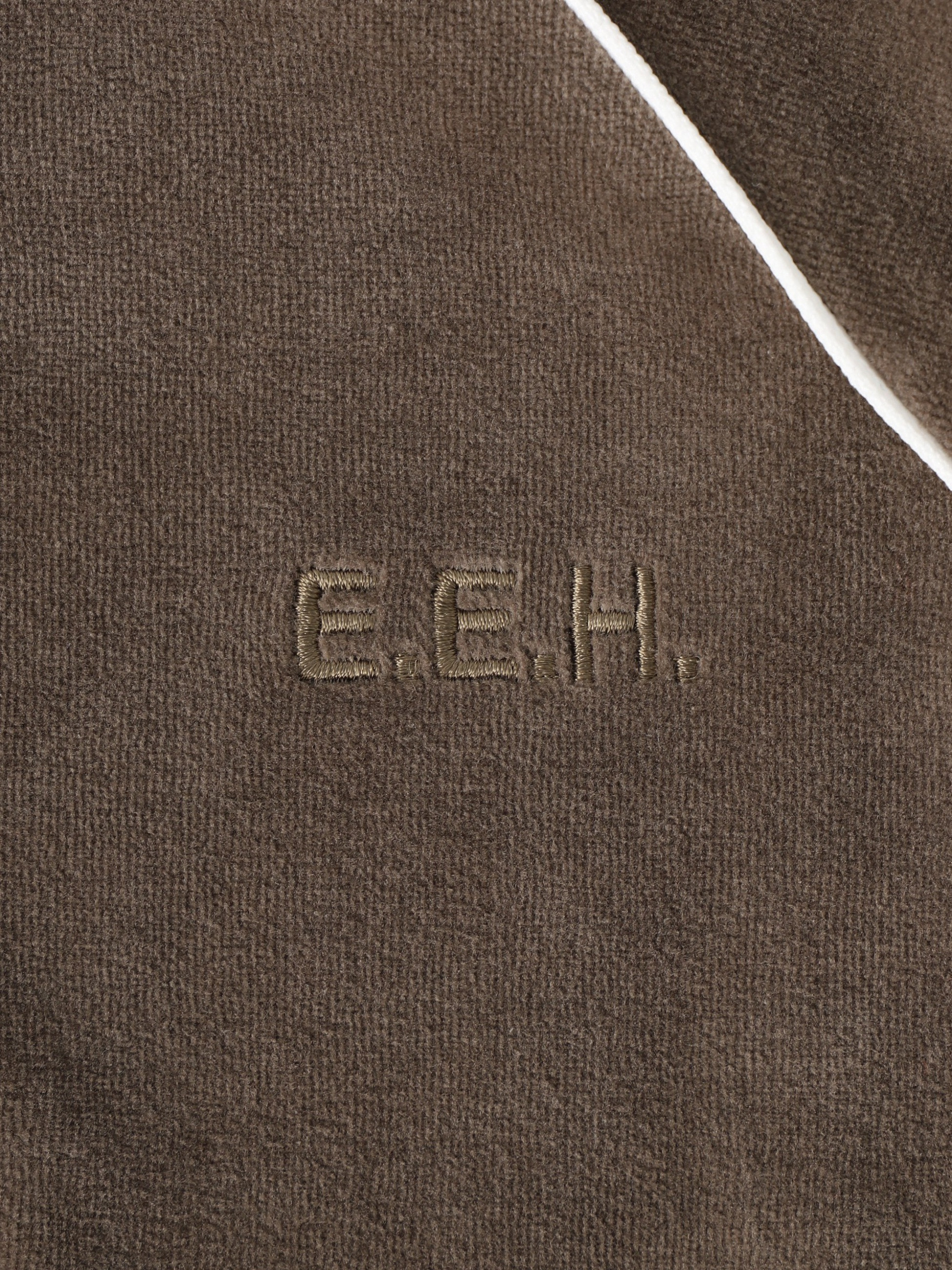 ベロア素材のトラックジャケットは、柔らかな光沢が上品で落ち着いた印象を与えてくれます。胸元にはブランドロゴの刺繍が施されており、ラグランのホワイトラインがさりげなくアクセントになります。同シリーズのベロアトラックパンツとセットアップで着ると、統一感のあるスタイルに仕上がります。