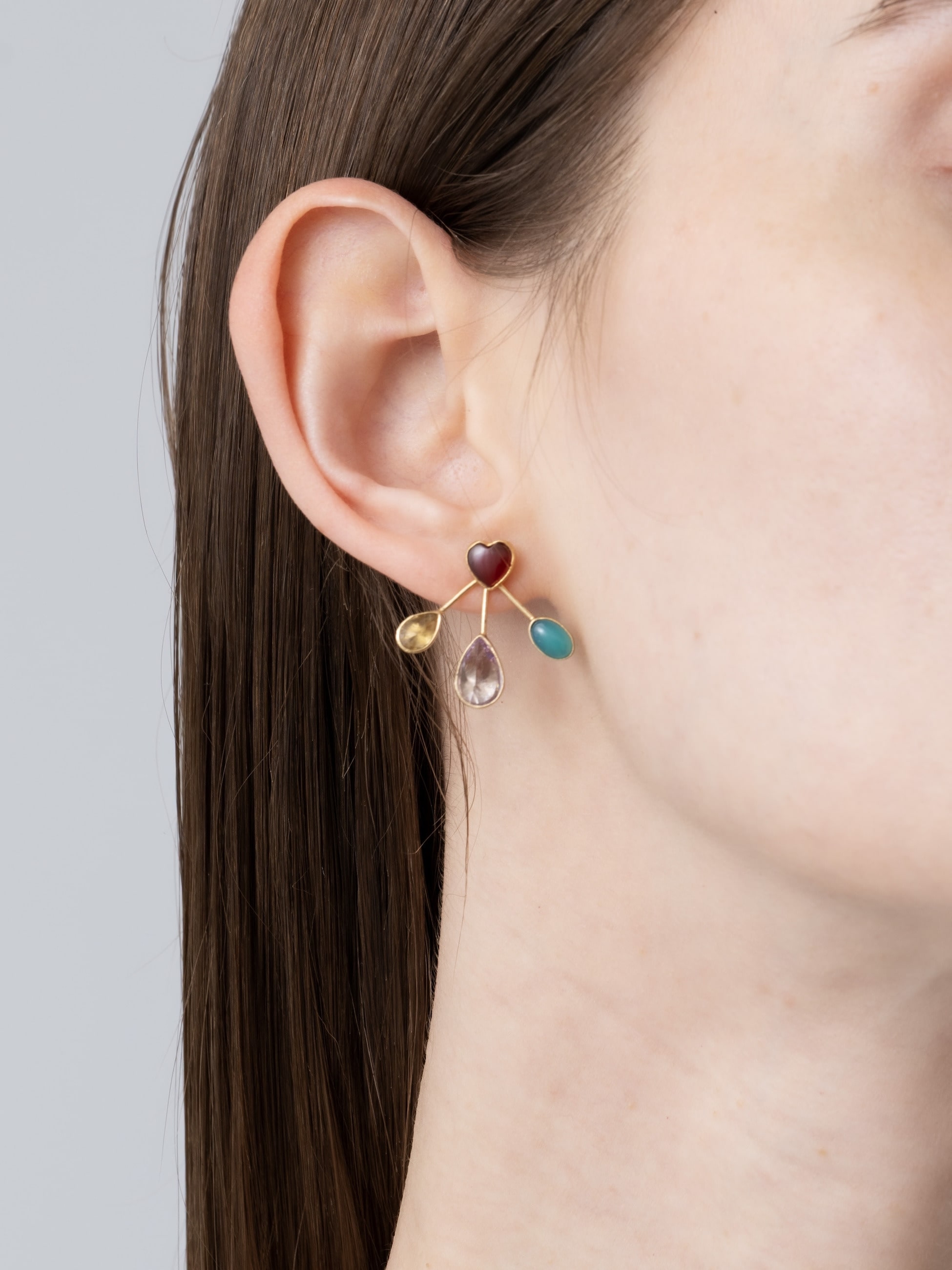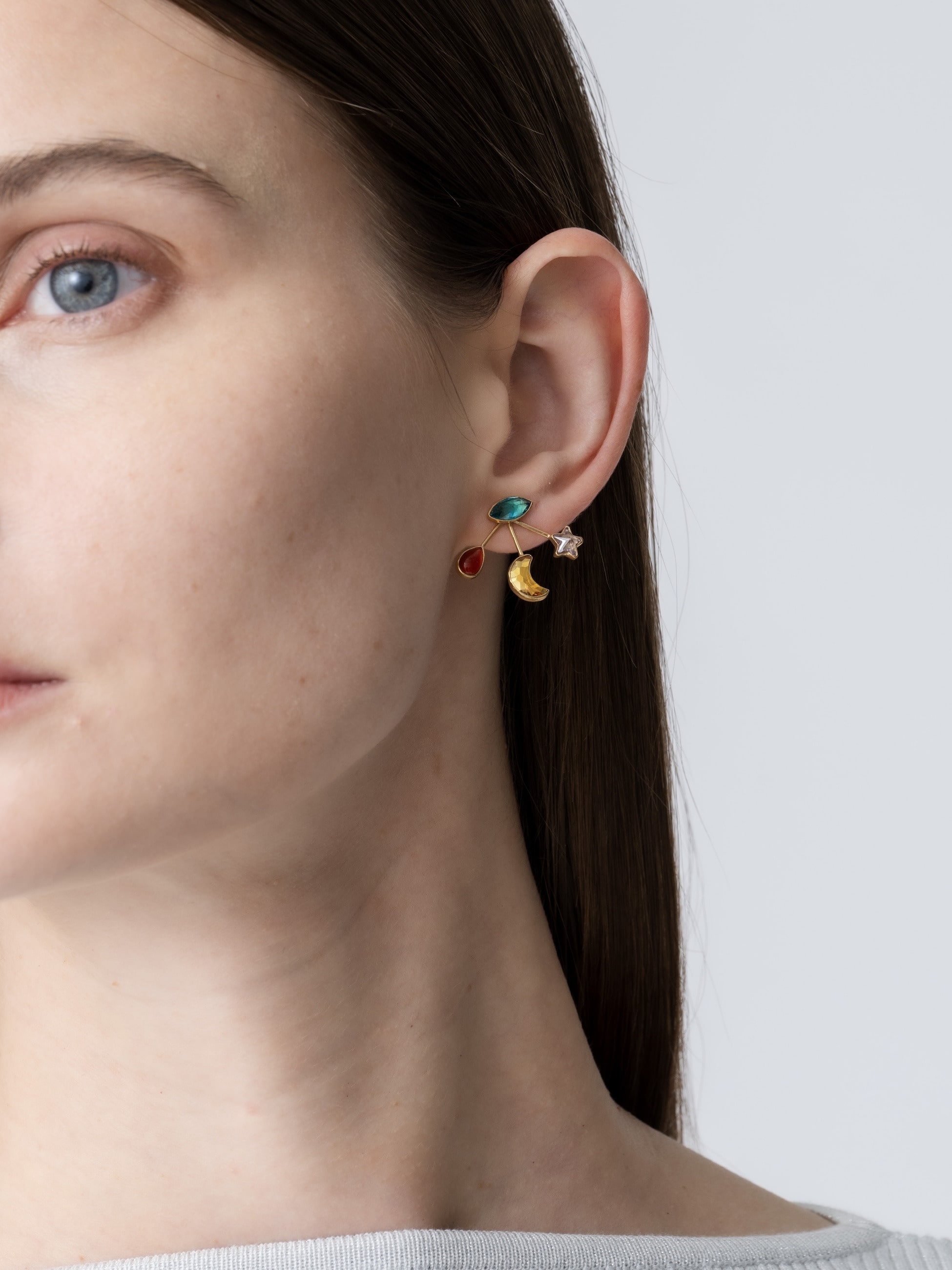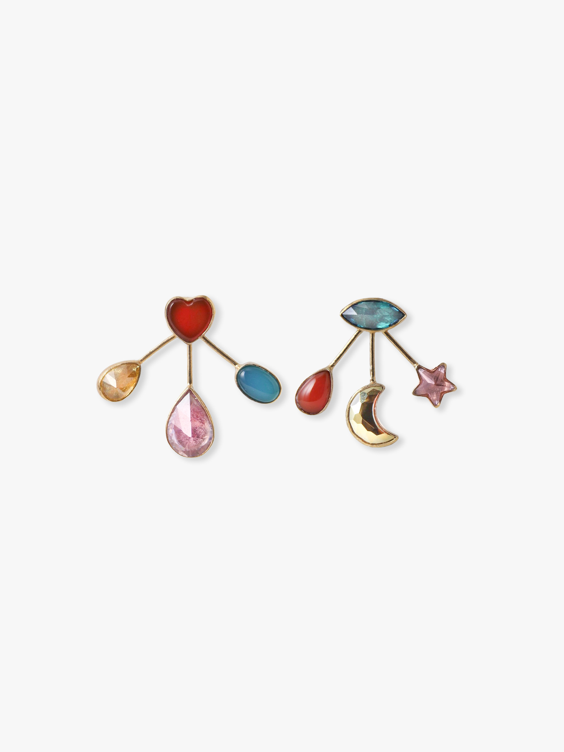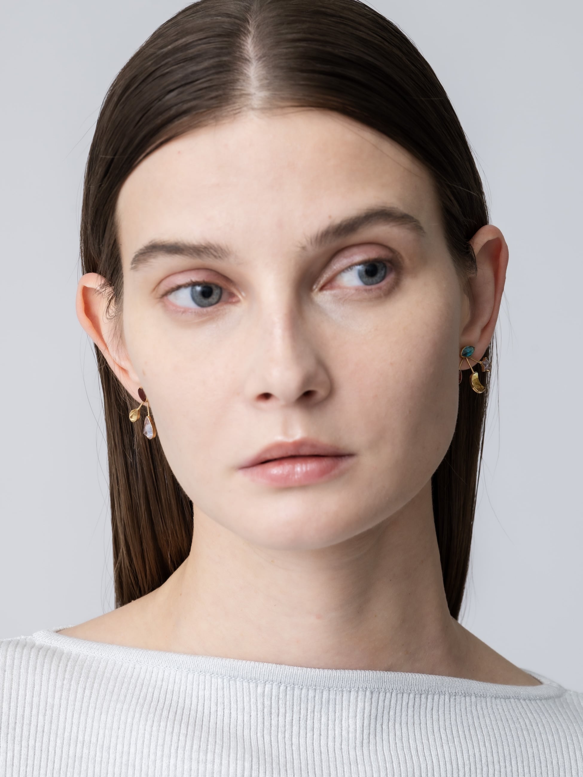 - 様々なモチーフがあしらわれたアシンメトリーのピアスは、耳たぶのラインからモチーフが見える愛らしいデザインで、程よい存在感がありコーディネートのアクセントとしてもおすすめです。バックチャームは取り外しが可能で、単体でスタッドピアスとして、チャームはお手持ちのピアスと合わせたりと、自由に組み合わせをお楽しみいただけます。