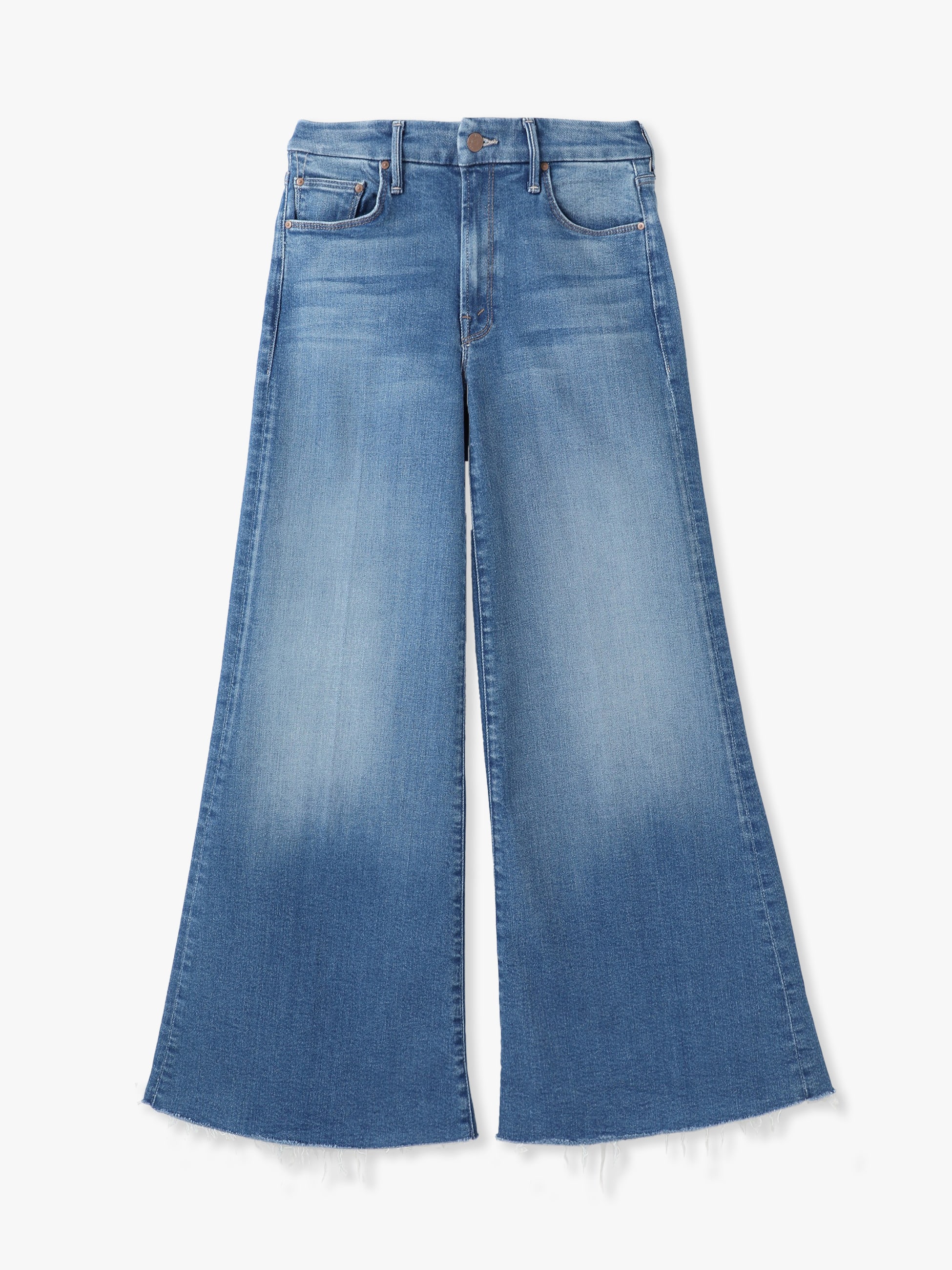 - 脚を綺麗に演出するワイドフレアシルエットが特徴のデニムパンツです。シンプルなトップスと合わせても存在感があり、ハイウエストデザインで、クロップド丈のトップスとも好相性です。