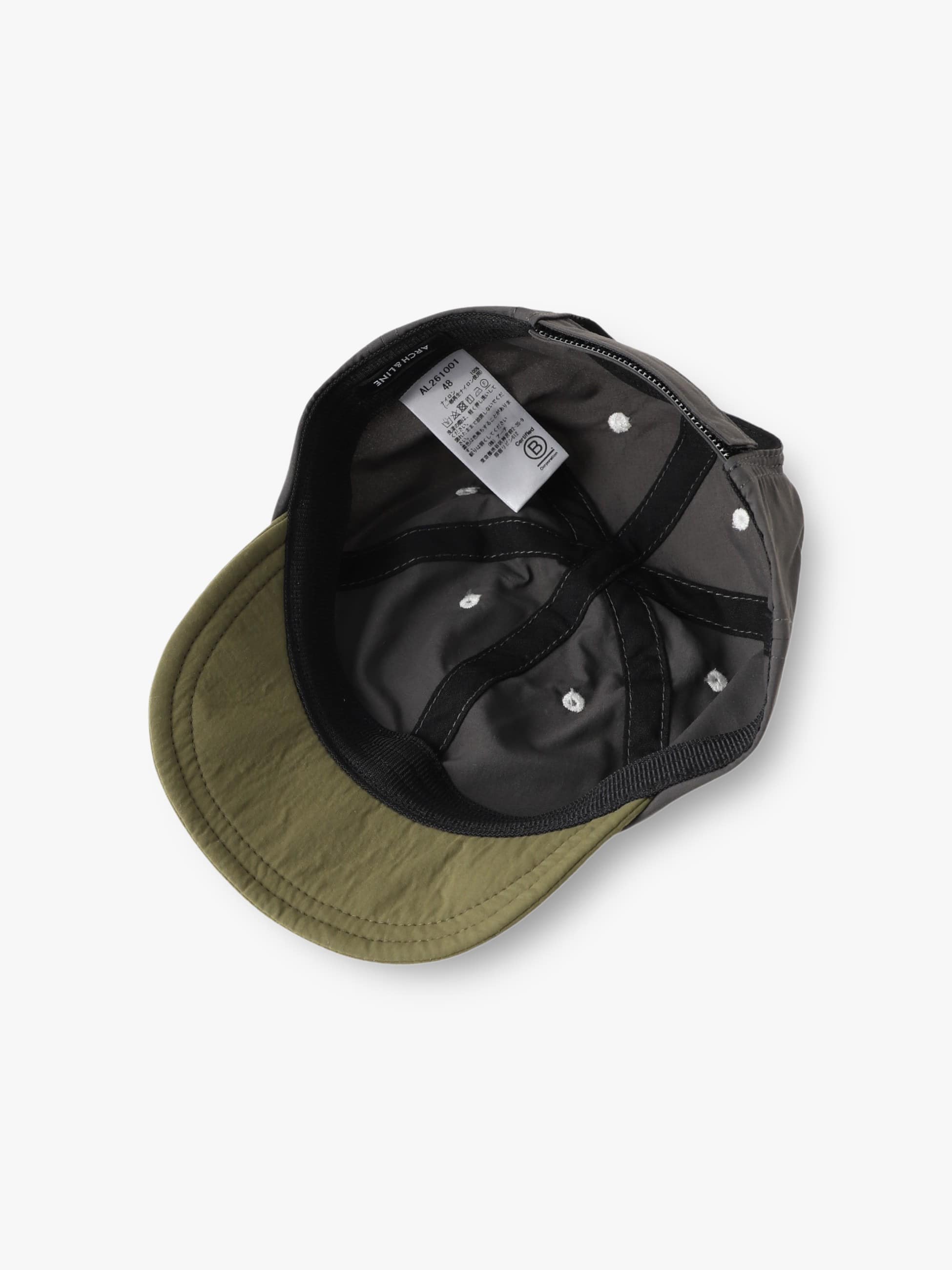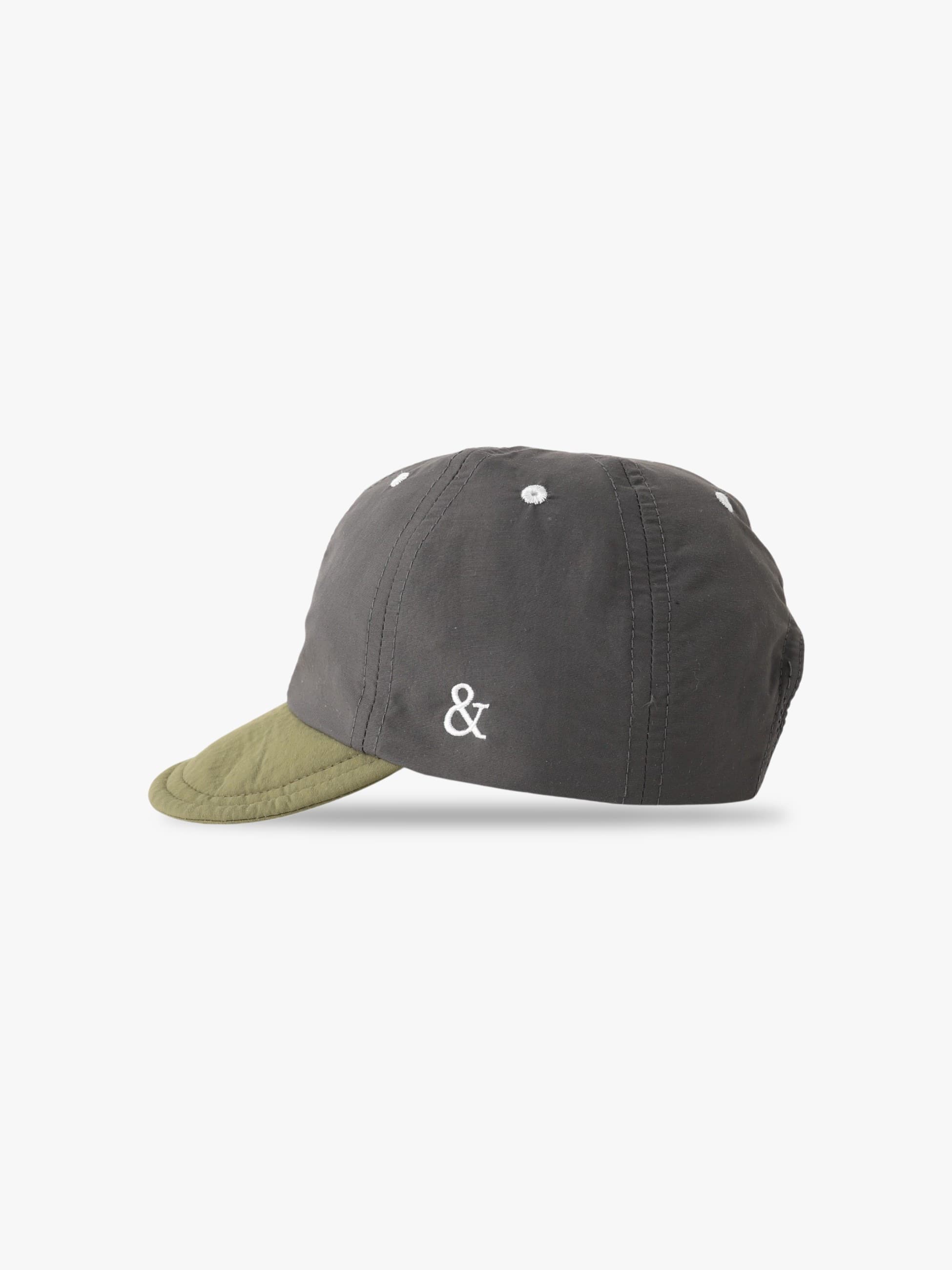 ツバがクレイジー切替デザインのキャップです。素材にはリサイクルナイロンを使用し、紫外線カット(遮蔽率95%)、撥水、接触冷感、透湿性などの機能を備え、快適な着用感をキープします。ツバの芯を柔らかく設定しており、折りたたんで持ち運びができ、後ろはマジックテープで調整が可能です。