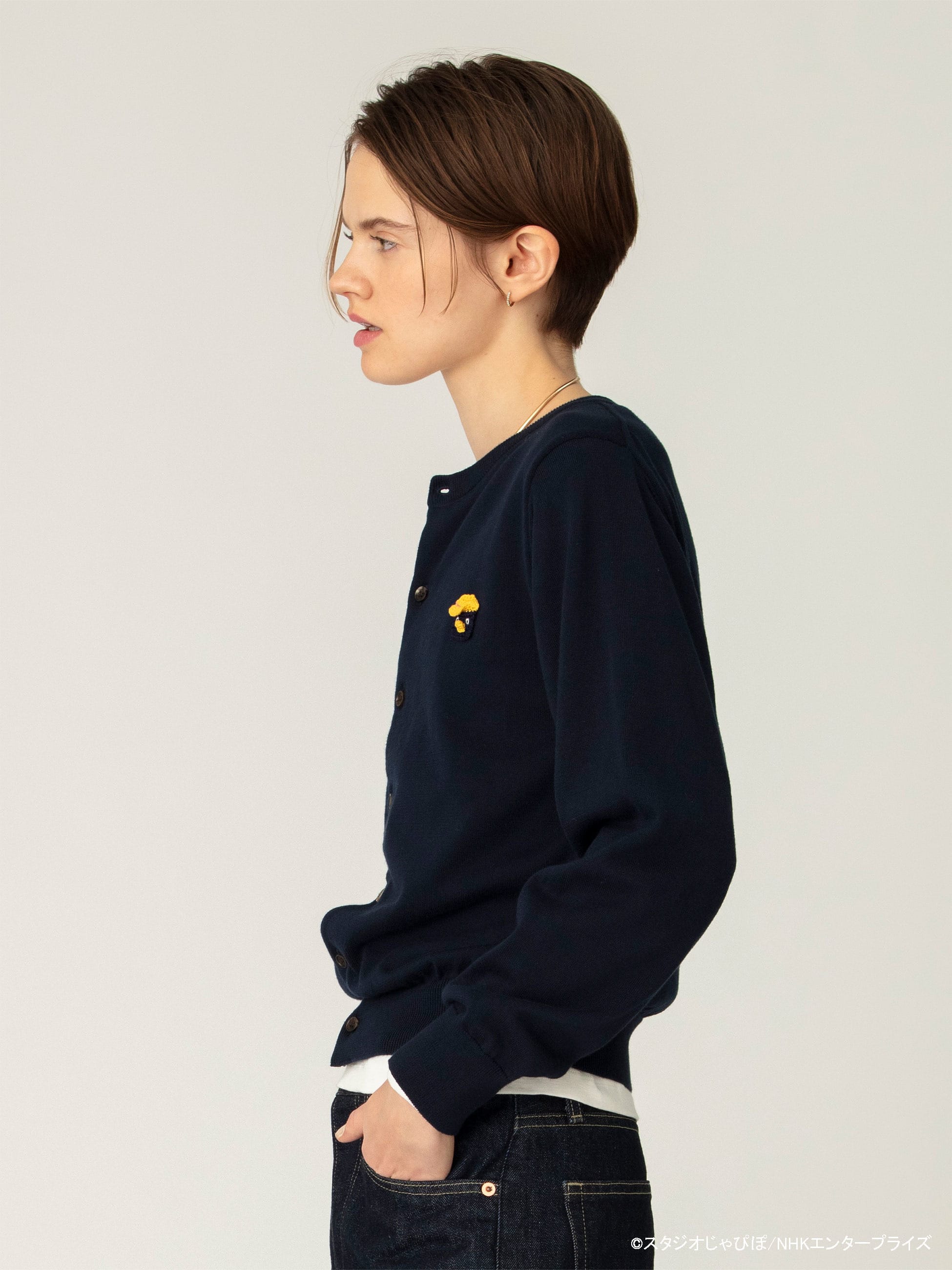 pillings5周年を記念した、NHKの「にこにこぷん」との特別なコラボレーションアイテムが登場です。ベーシックなニットカーディガンに施された、手編みによるぴっころのワッペンは、一点一点表情が異なり、温かみと個性を楽しめるアイテムです。