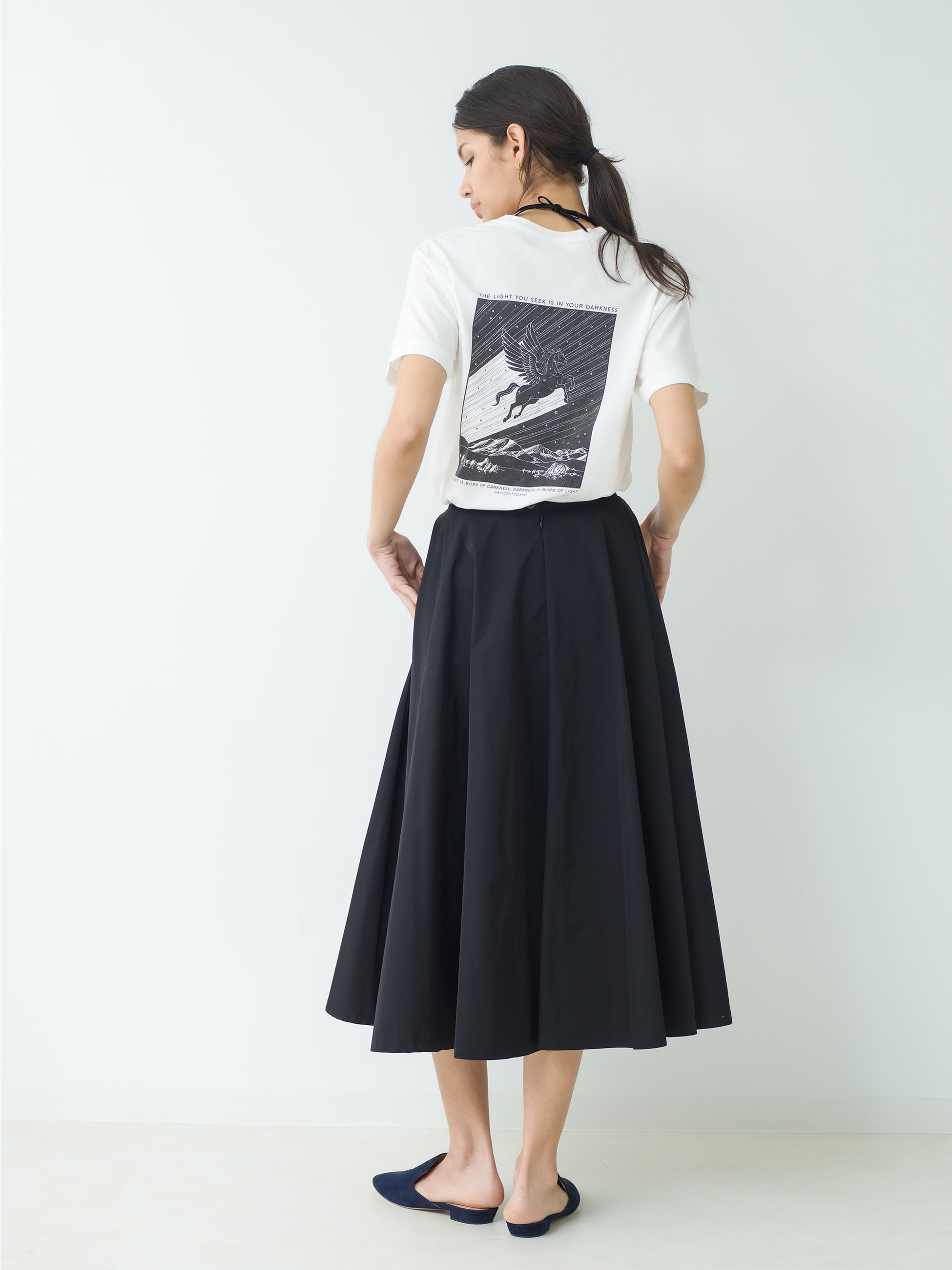 動くたび軽やかに揺れるフレアスカートをロンハーマンで別注しました。すっきりとしたウエストまわりに、たっぷりとしたギャザーは存在感がありながら、洗練された美しいシルエットを演出します。ハリと軽やかさのある素材を使用し、真夏でも快適な着心地です。ビンテージTシャツやスウェットなど、カジュアルなアイテムとのスタイリングも素敵です。