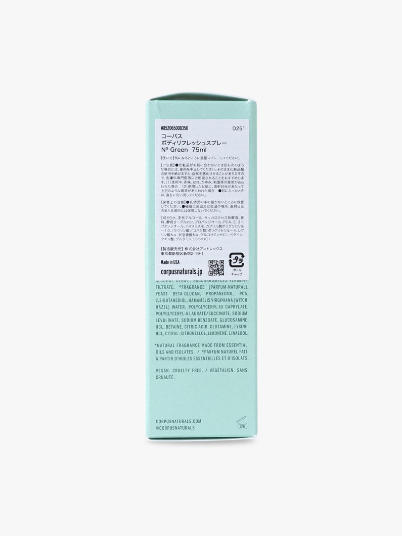 - 汗の気になるニオイを防いでくれる、植物由来のデオドラントスプレーです。天然酵素、植物エキス、プレバイオティクスがブレンドされており、臭いを効果的に軽減。N゜GREENの香りは、ほのかな柑橘系と、あたたかみと質感を生むほのかな木の香りが調和した、柔らかく繊細な香りです。