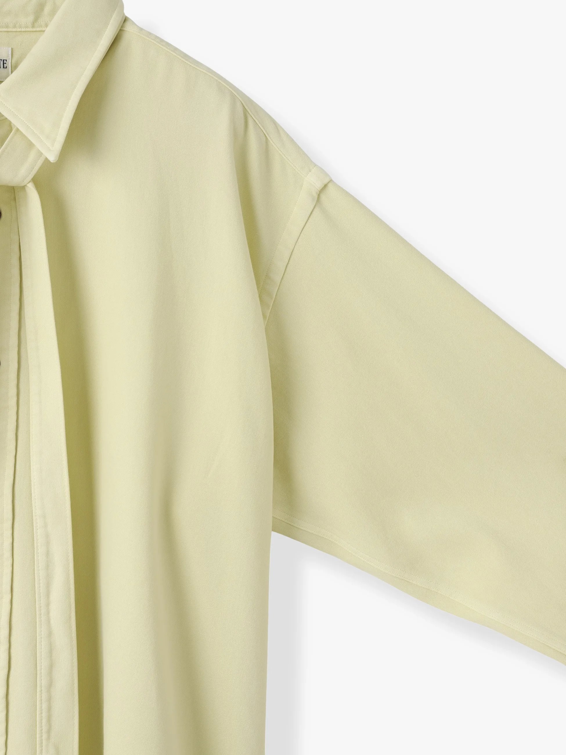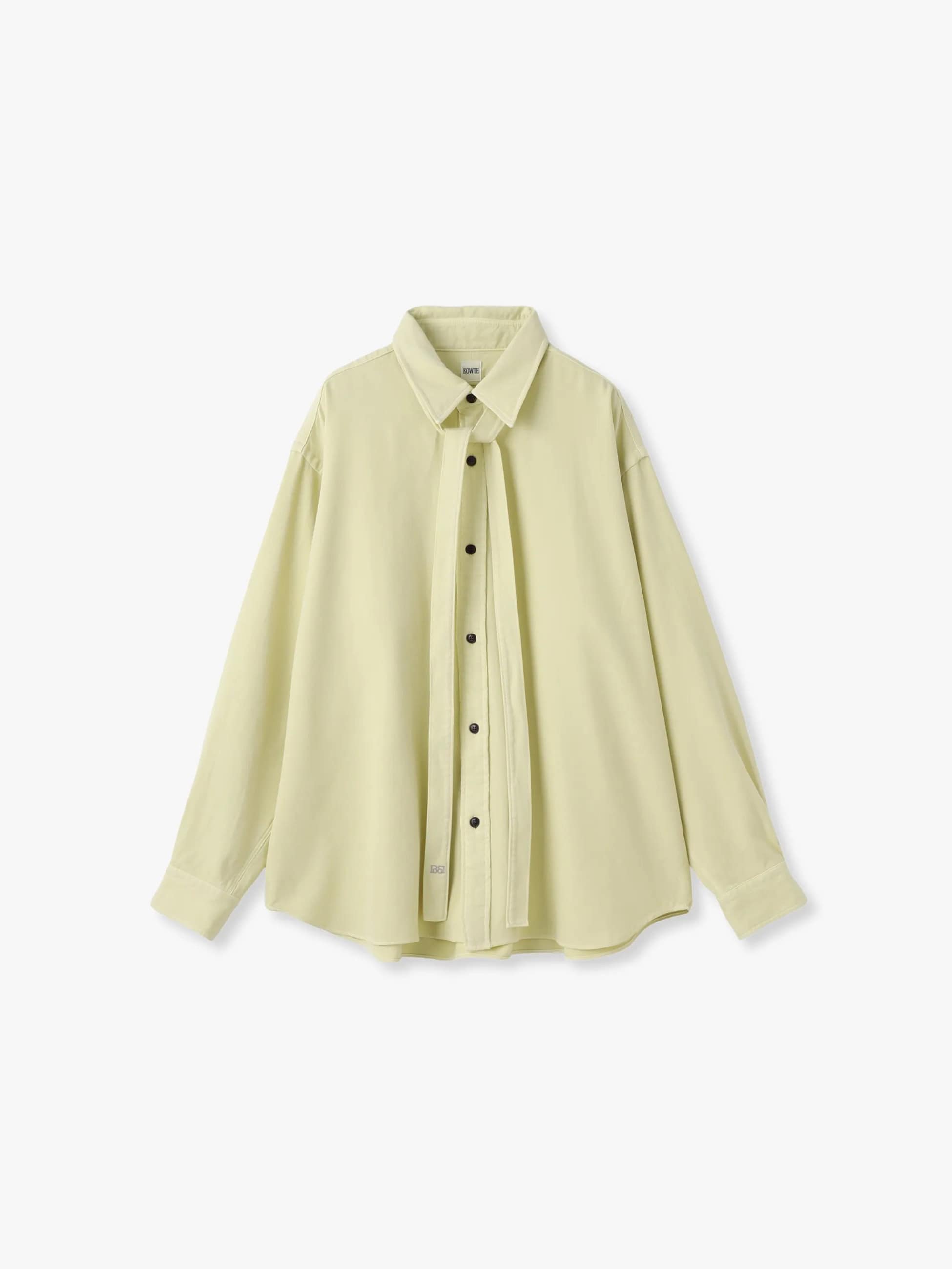 - オーバーサイズのボウタイシャツは、高密度なスーピマコットンを二重構造にすることでソフトな風合いが生まれ、上質感のある風合いを実現しています。ニュアンスのあるイエローカラーが秋冬シーズンの差し色にもぴったりで、肌寒い日の軽い羽織りとしても重宝します。ボウタイは取り外しが可能で、スタイリングに合わせてアレンジもお楽しみいただけます。