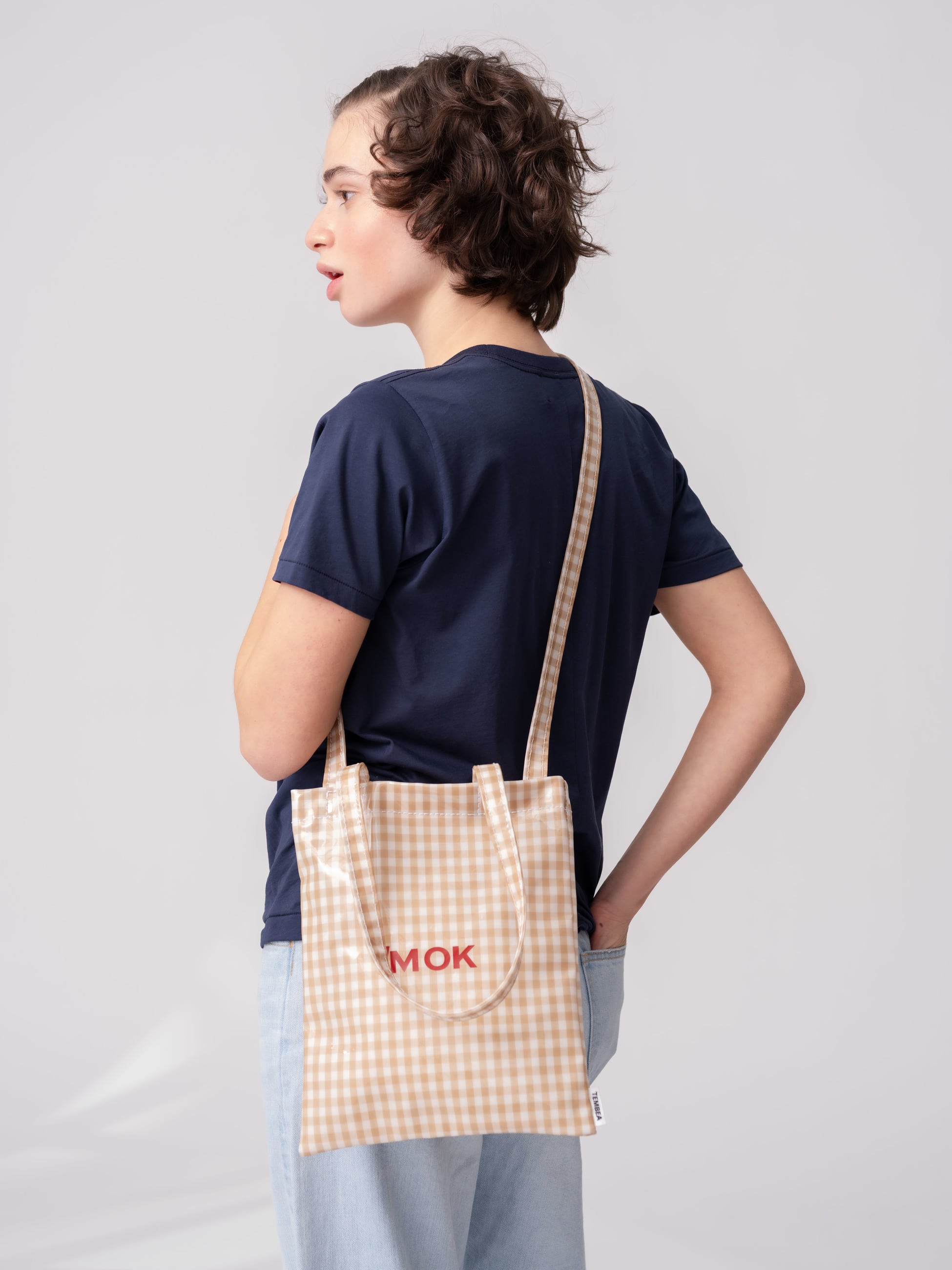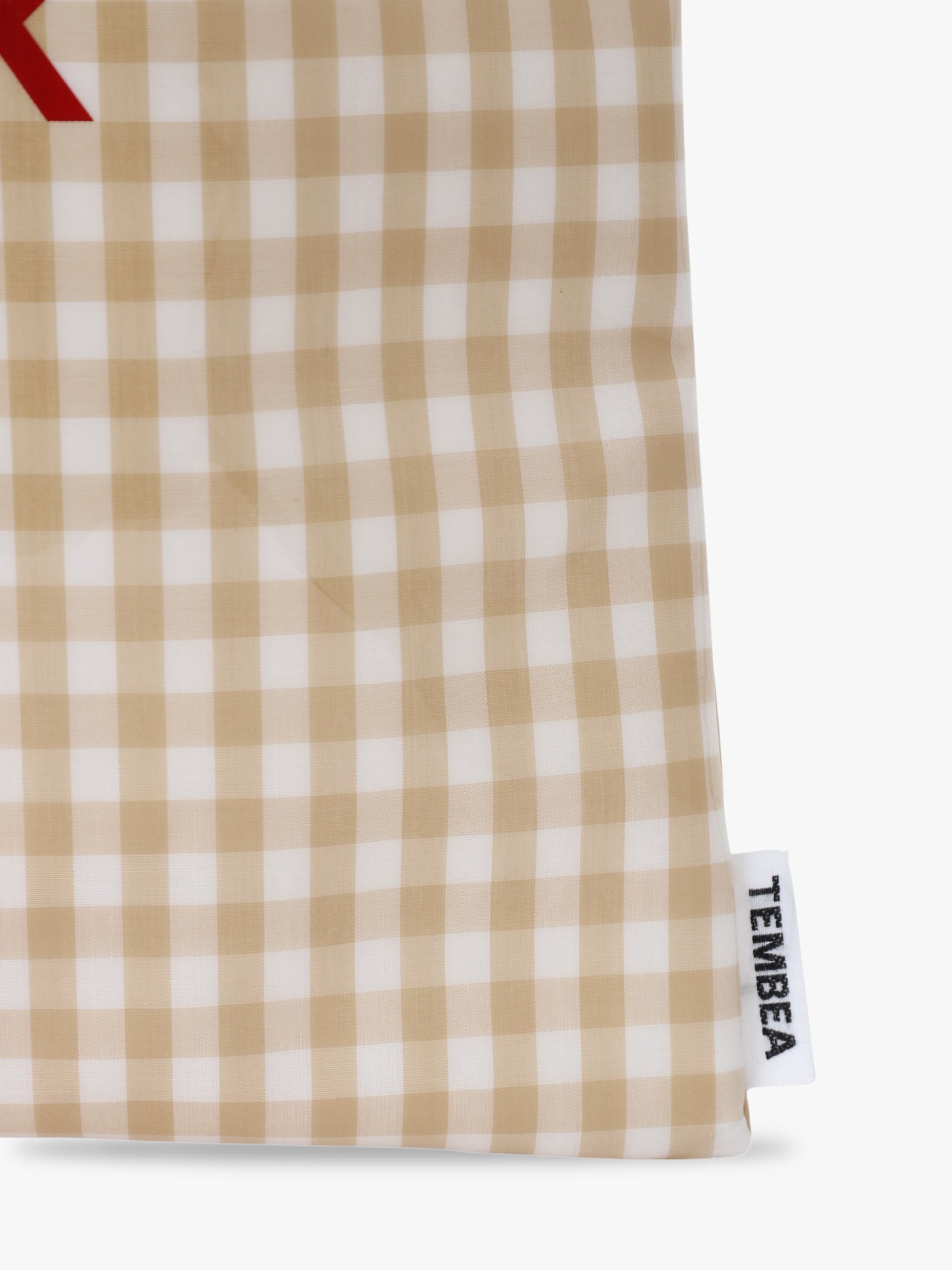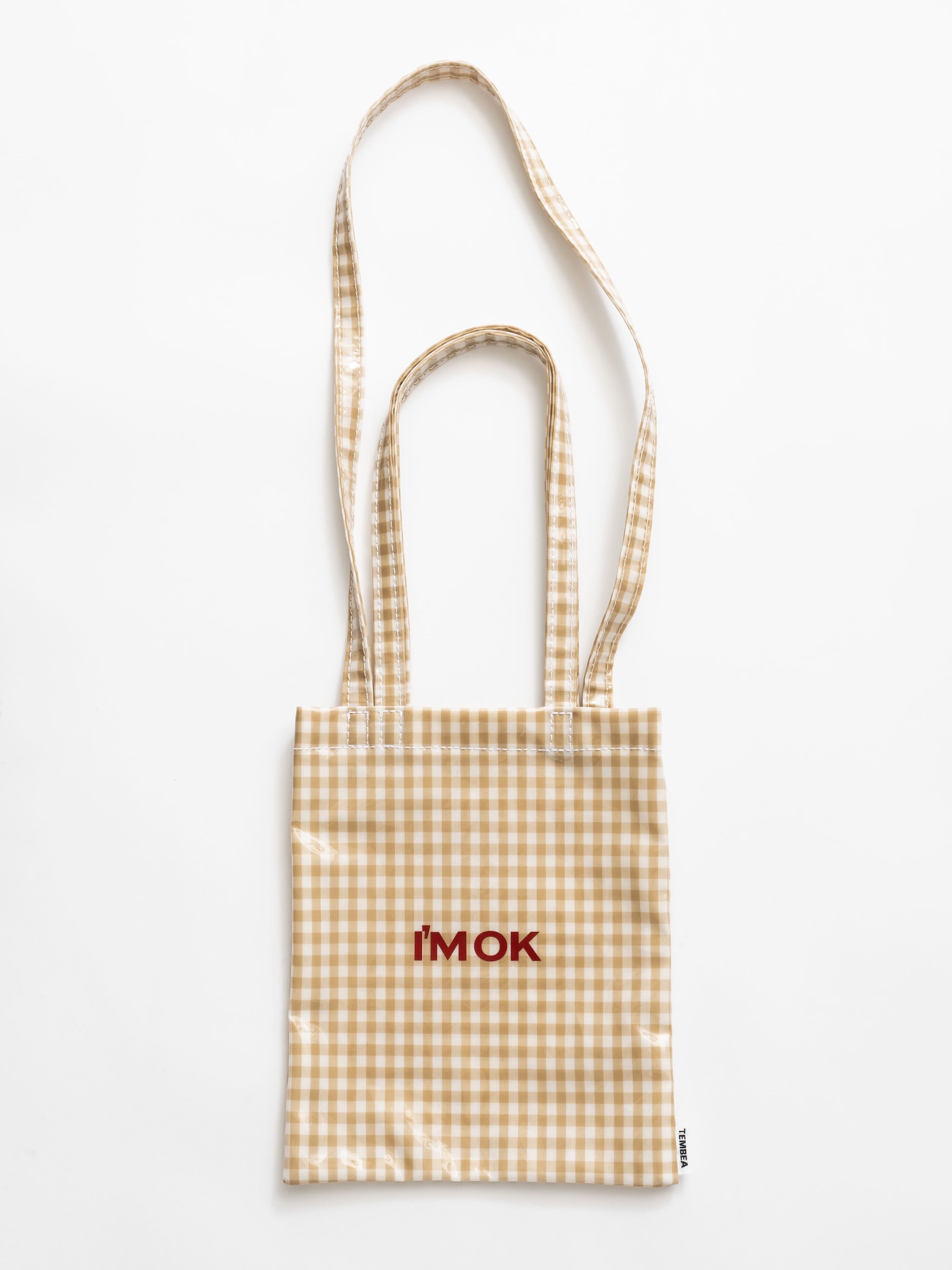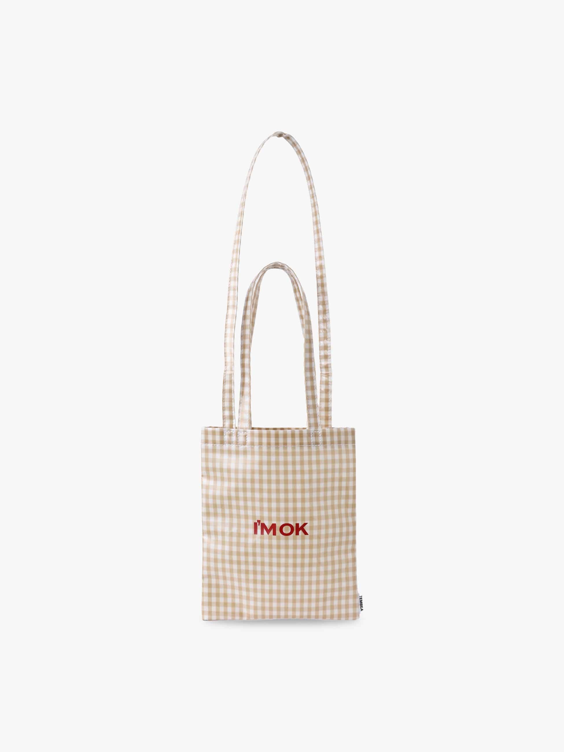 毎シーズン人気のI’M OK × TEMBEAのコラボレーションバッグから、新作のスモールサイズが登場です。ベージュのギンガムチェックにレッドのブランドロゴがアクセントになっています。PVCコーティングを施しているため水や汚れに強く、雨の日にも気兼ねなくお使いいただけます。必要な荷物をコンパクトに収納でき、デイリーからお出かけまで幅広く活躍します。