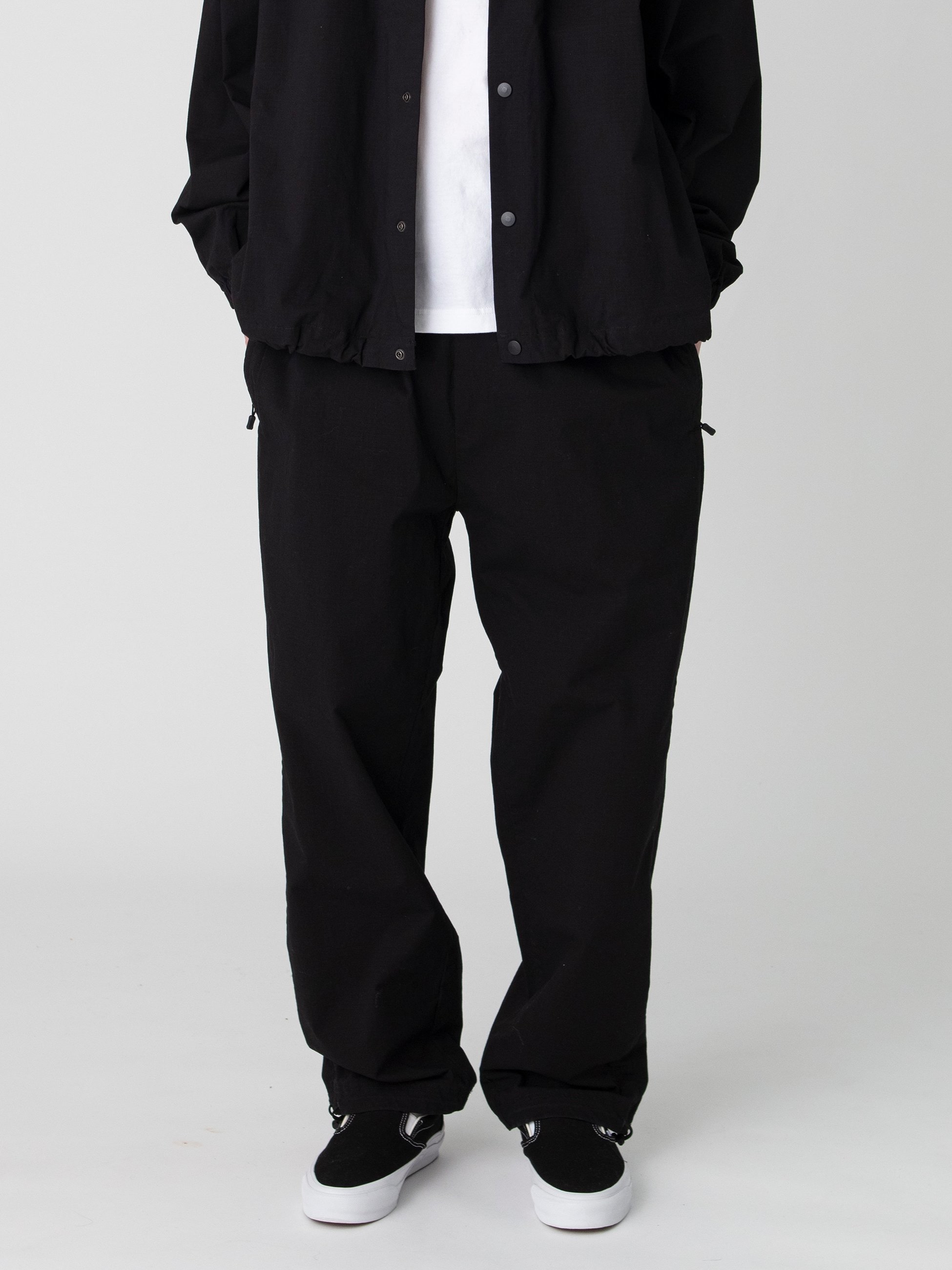 ロンハーマンのためだけに作られた、コットンとコーデュラナイロンの混紡素材のリップストップナイロン生地を使用したイージーパンツ。ポリウレタンをカバリングしたオリジナル糸を採用し、コーデュラ素材の優れた耐久性と耐摩耗性に加えて、優れたストレッチ性を実現した快適な穿き心地が特徴です。また、ワンウォッシュ加工を施した、程よくハリのあるさらっとした風合いやMADE IN JAPANによる品質の高さも魅力のひとつ。ファクトリーブランドならではの拘りや確かなものづくりに、ロンハーマンのエッセンスが合わさったスペシャルなアイテムをお楽しみください。