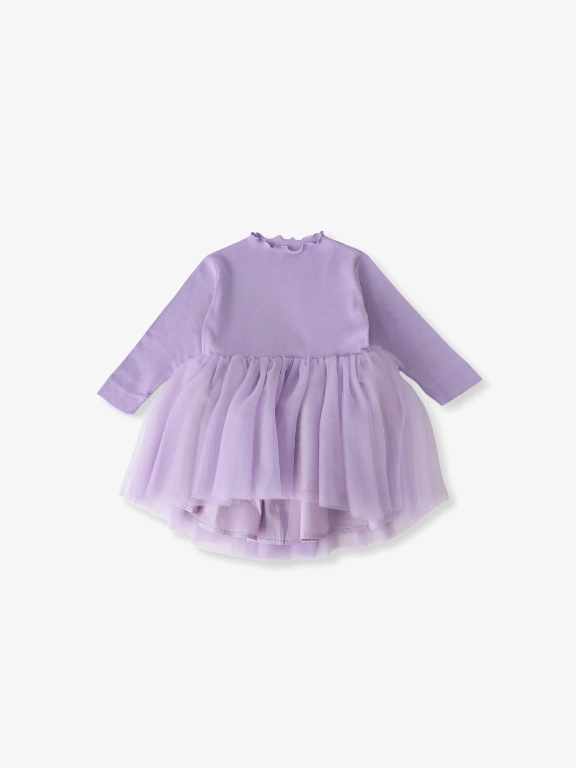 バレリーナチュチュからインスピレーションされたドレスは、体に密着する部分は伸縮性に優れた動きやすいジャージー素材を使用し、スカート部分は何層にも重ねたチュールがふわっと広がる、思い切りロマンティックな仕上がりに。シワになりにくく、ご自宅の洗濯機でホームクリーニングも可能です。1枚で約3年ほどお召しいただけ、お子様の成長とともに、長めのドレスからチュニックとして変化し、ボトムをレイヤードしたスタイリングもバランス良く着ていただけます。