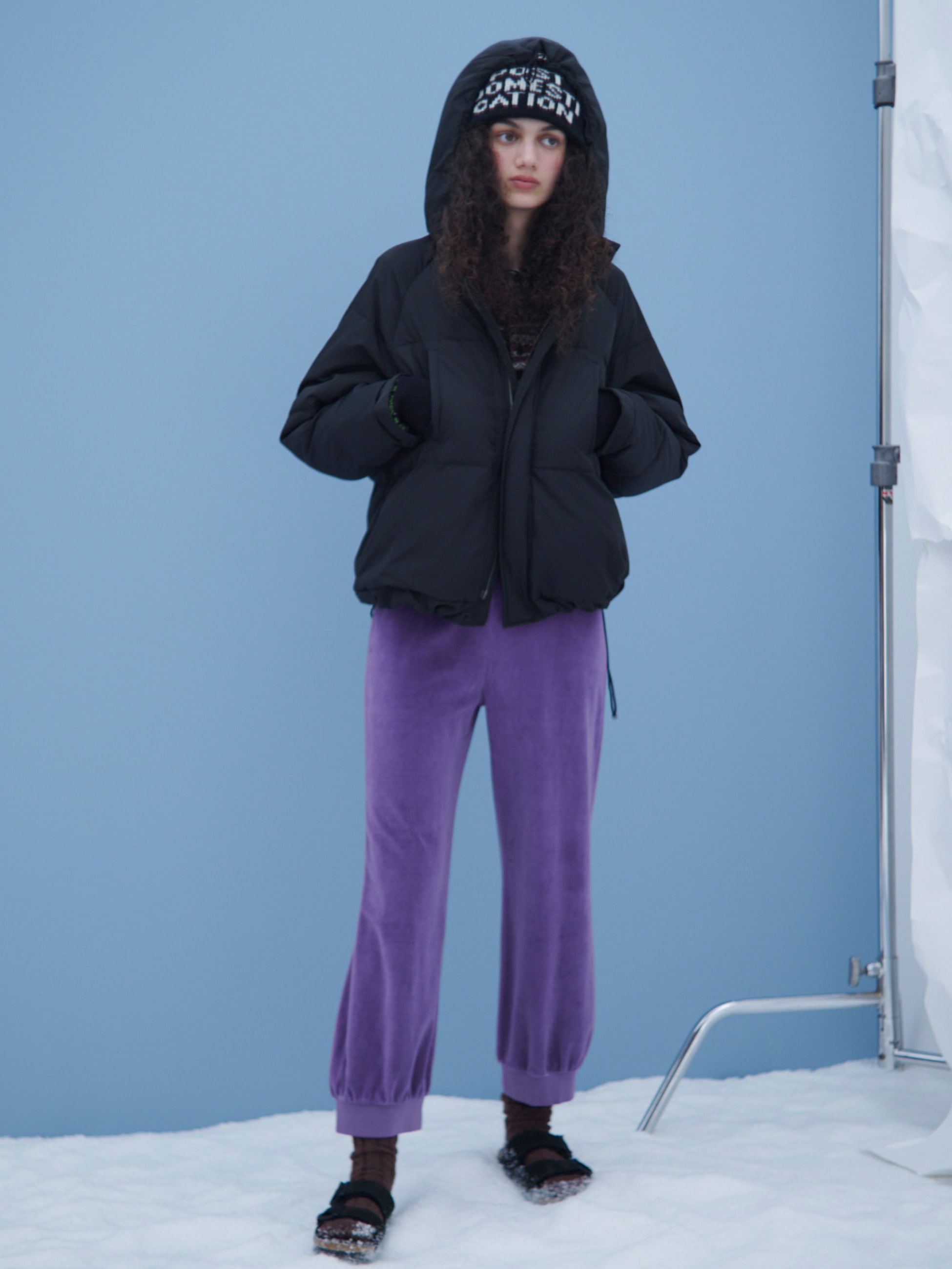- ブランドのシグネチャーのひとつ、トスクハイウエストハーレムパンツより、程よい光沢感となめらかで肌触りの良いベロア生地を使用したモデルが登場。ややバルーンになったユニークなシルエットが特徴で、脚のラインを美しく見せる優雅さと、リラックス感のある程よい緩さを兼ね備えた1本です。飛行機内など、旅行にも最適です。