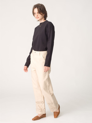- ブランドのシグネチャーのひとつ、トスクハイウエストハーレムパンツより、程よい光沢感となめらかで肌触りの良いベロア生地を使用したモデルが登場。ややバルーンになったユニークなシルエットが特徴で、脚のラインを美しく見せる優雅さと、リラックス感のある程よい緩さを兼ね備えた1本です。飛行機内など、旅行にも最適です。