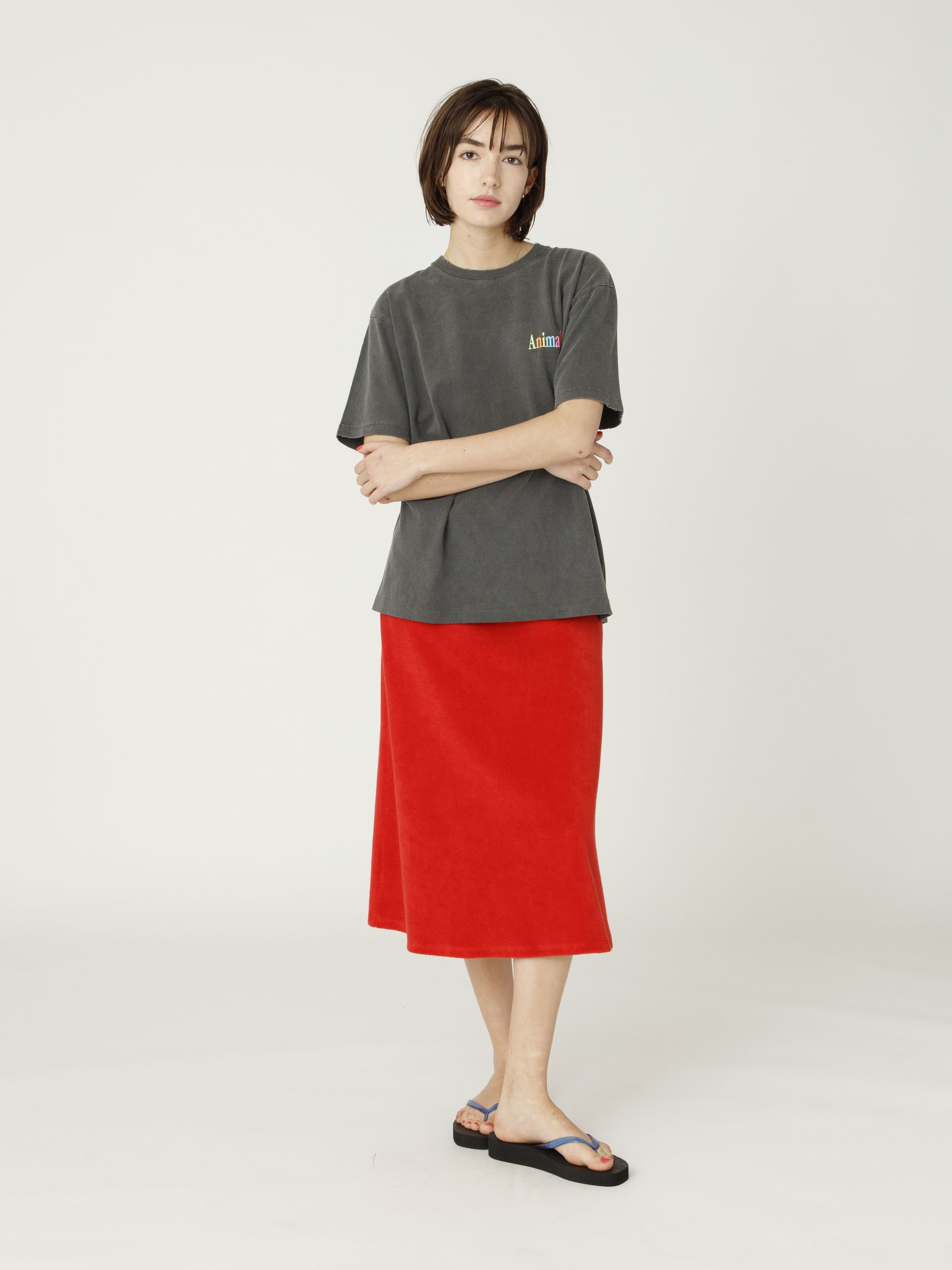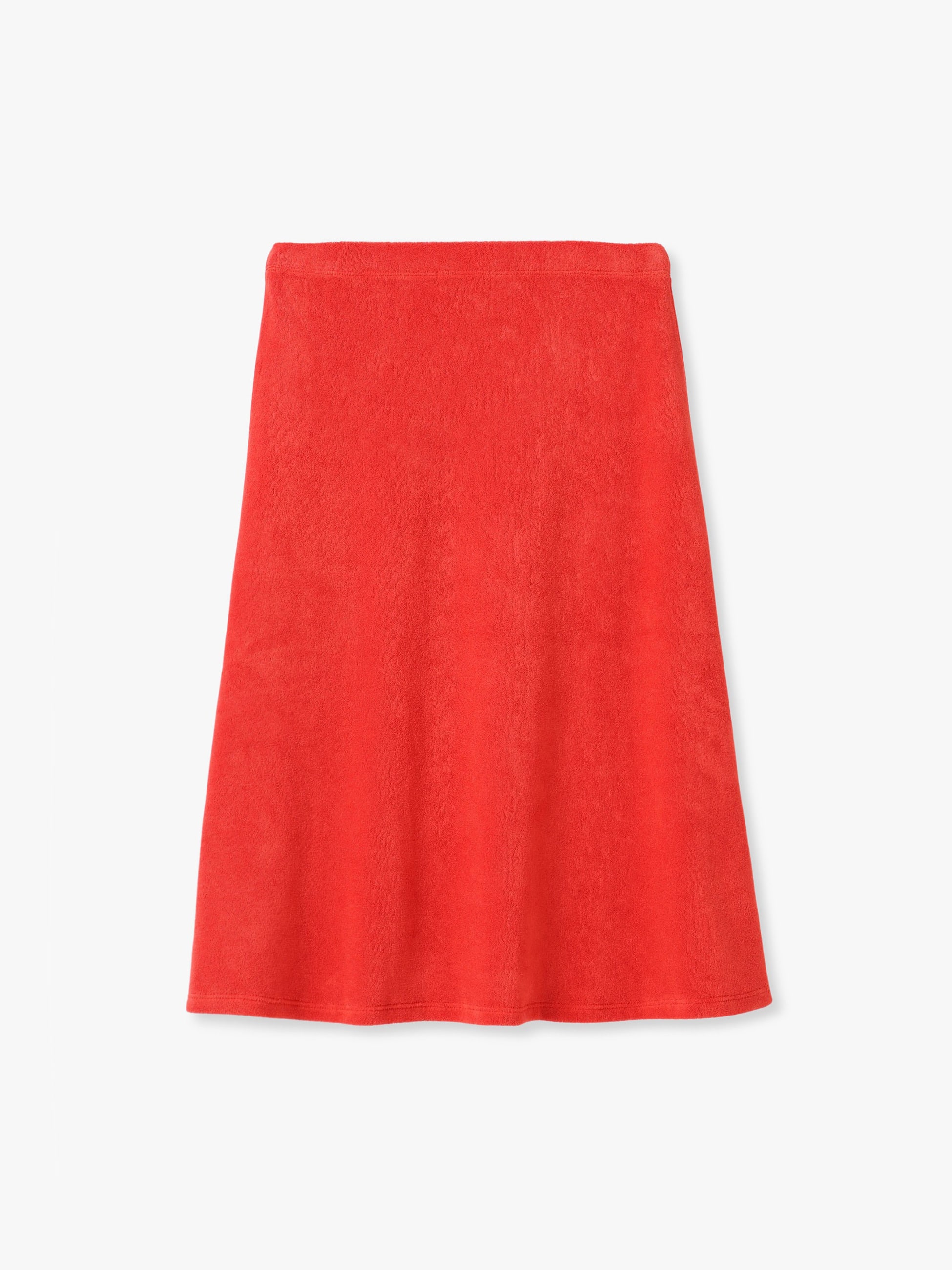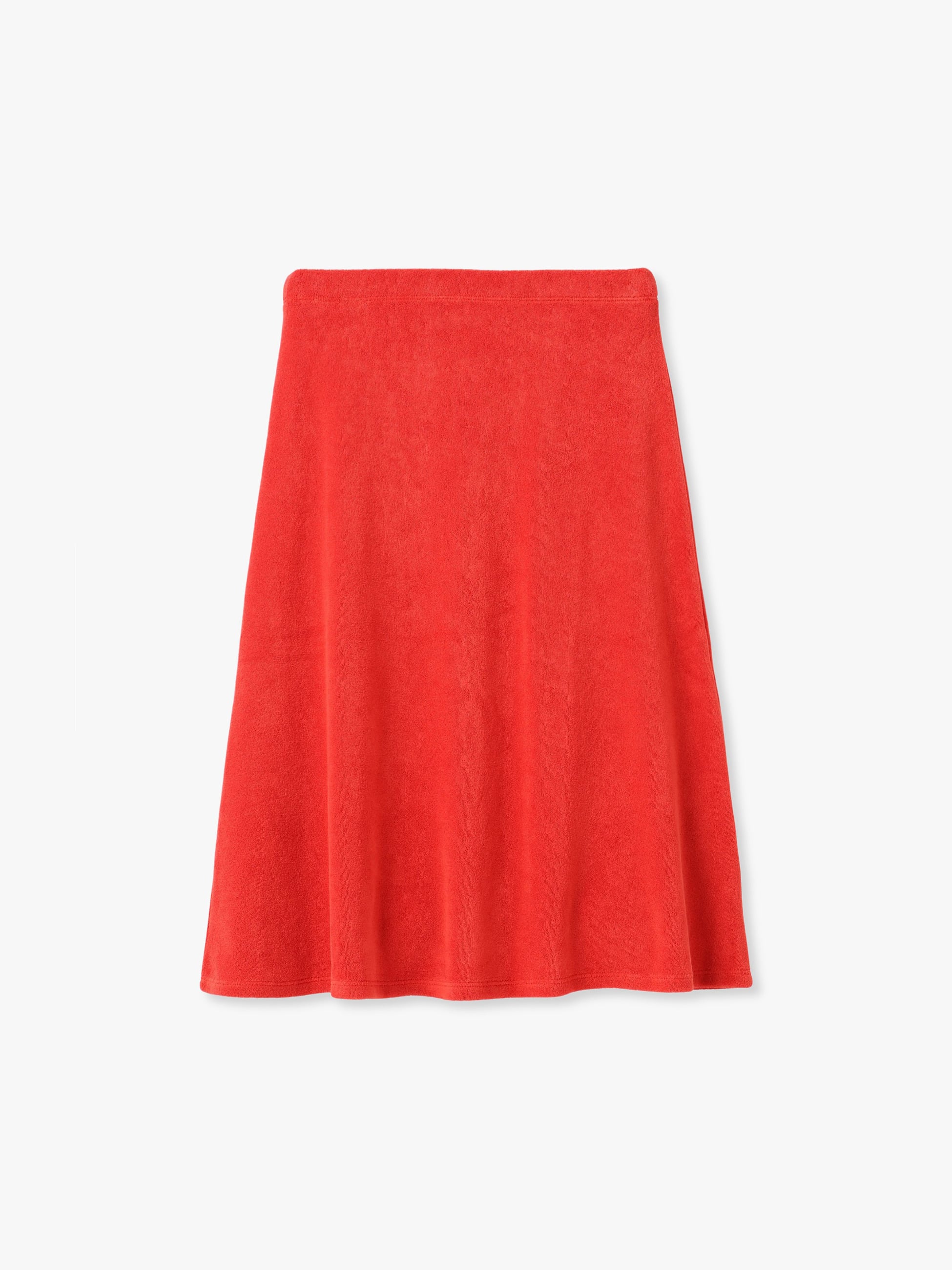 テリー素材で仕立てたミディ丈のスカートが、RHC ロンハーマンエクスクルーシブで登場です。シックなブラックと目が覚めるようなレッドの2色展開で、程よいフレアシルエットと膝下の着丈がいつものスタイリングに鮮度をプラス。あえてシンプルにスリーブカットソーや、フラットシューズ、サンダルと合わせたヘルシーなスタイリングも素敵です。