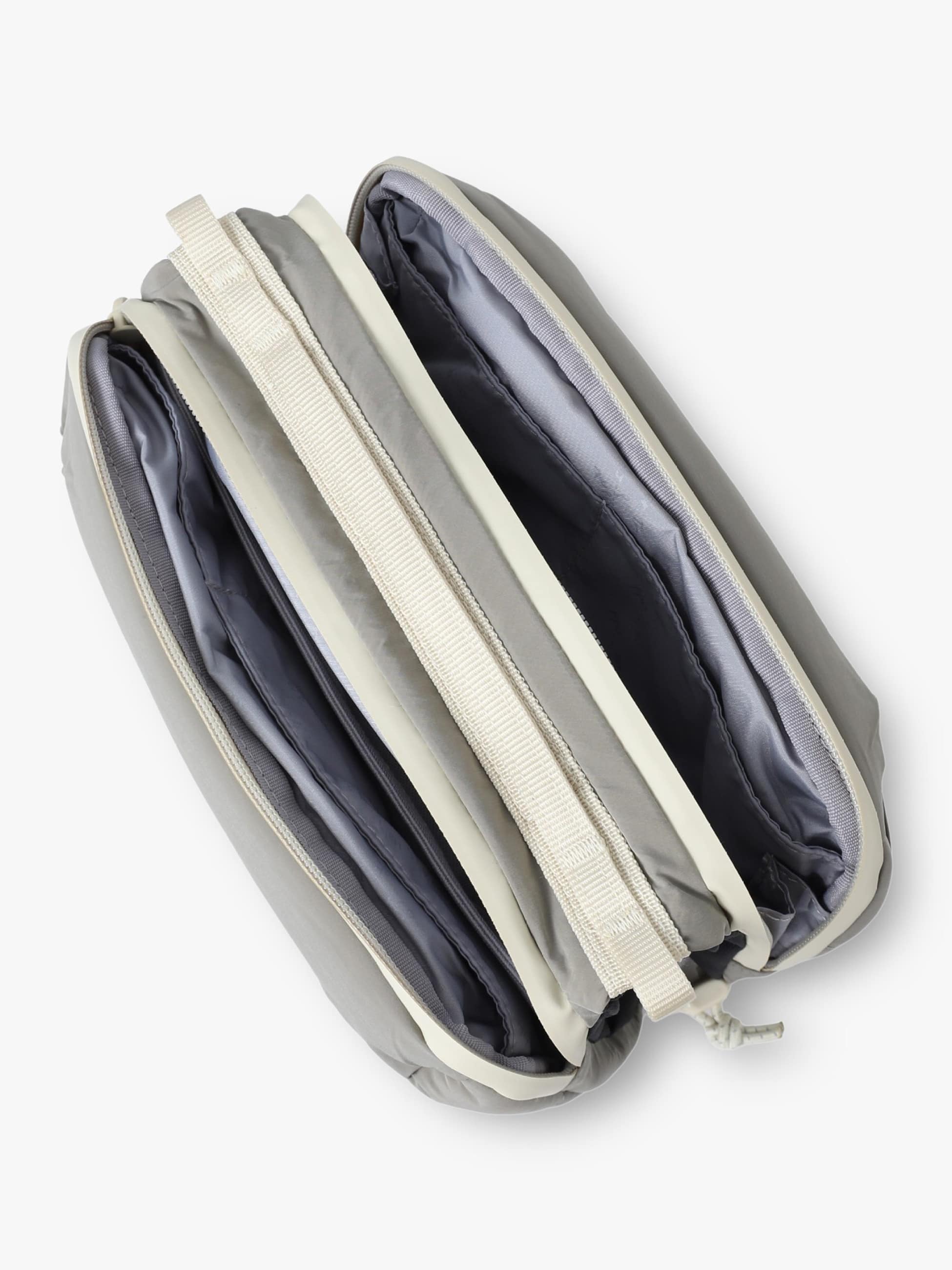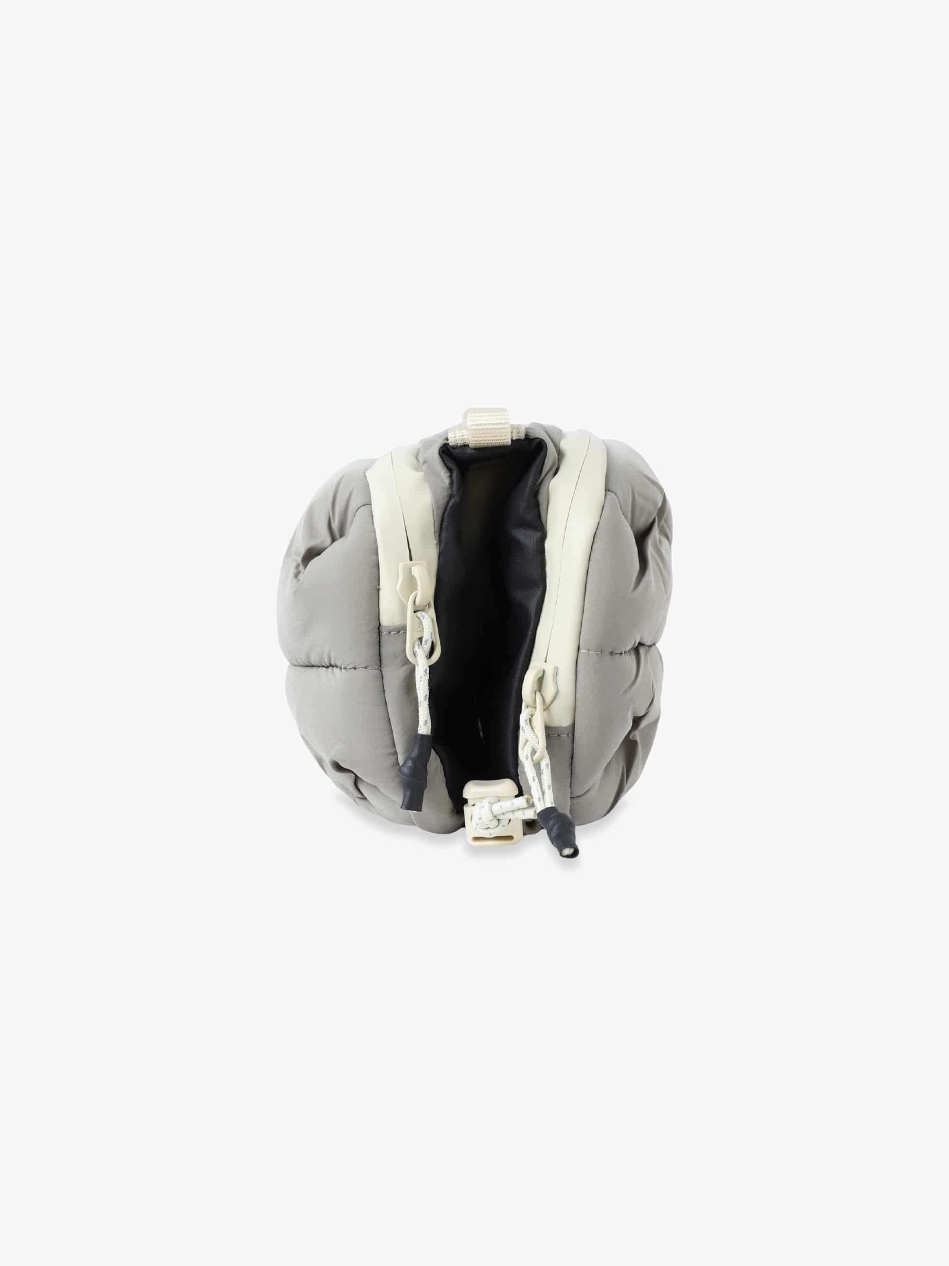 - タンブラーボトルやスマートフォン、財布、鍵などの必需品をを持ち運べる多機能ポーチ。ボトルや折り畳み傘の収納ができるコンパートメント付きで、旅行や外出にも便利です。軽量で撥水仕様のパファー素材を採用し、別売りのロープを付けるとショルダーバッグとしても活躍します。環境に配慮したサステナブルなデザインも魅力です。