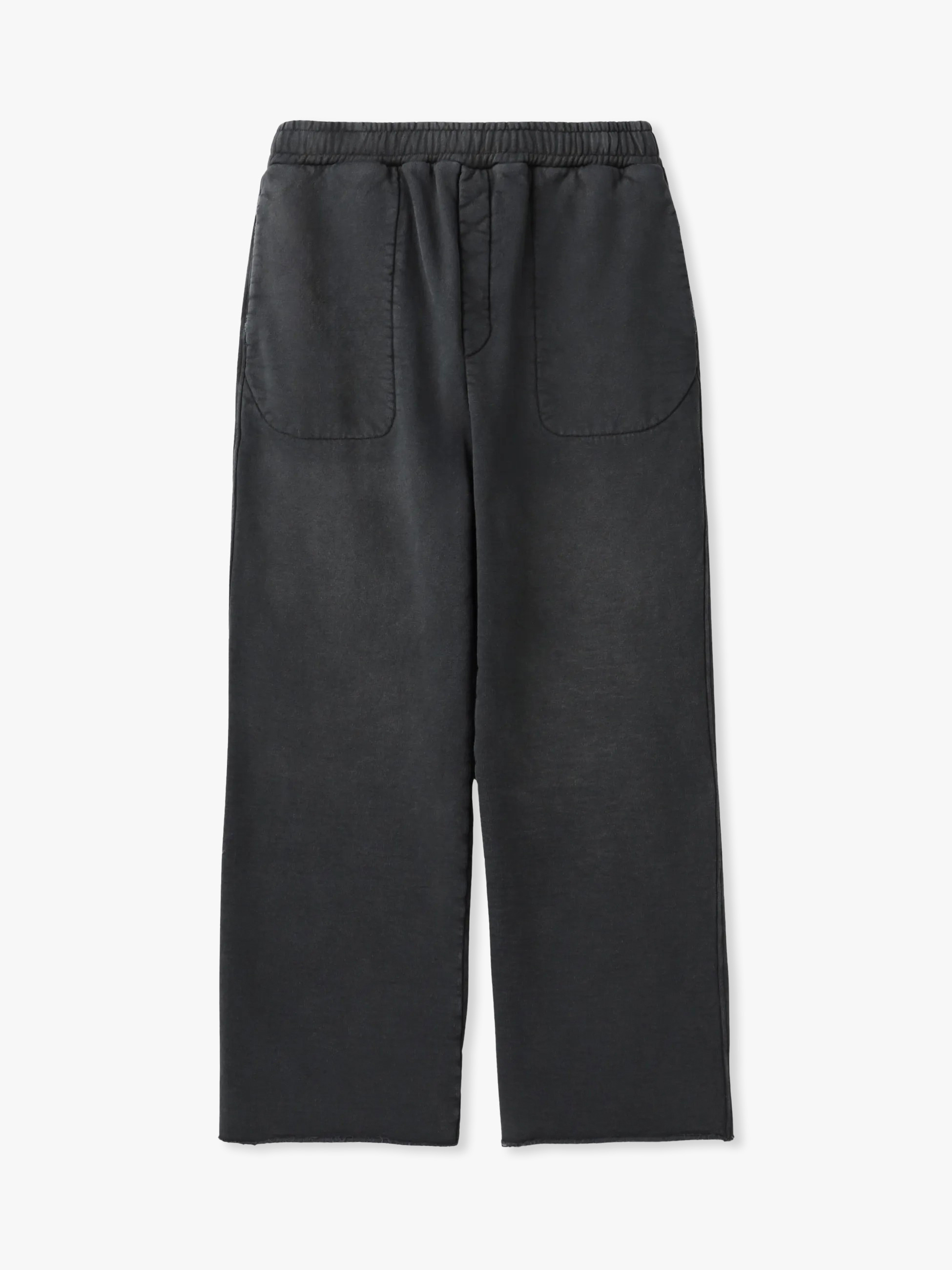 25FWシーズンのHidden Gemsでは、ロサンゼルスを舞台とし、LAでビンテージショップを営んでいる、大人の女性がセレクトするようなビンテージアイテムを思い描き、デザインに落とし込んだコレクションを展開します。こだわり抜かれた加工が特徴のヘビーオンスの裏毛素材のスウェットパンツは、職人の手仕事により、ビンテージのような風合いを表現しています。股下のガゼットや脚のラインを拾いすぎないワイドなシルエットにこだわったアイテムです。ブラックは同シリーズのフルジップフーディーとのセットアップ着用も素敵です。