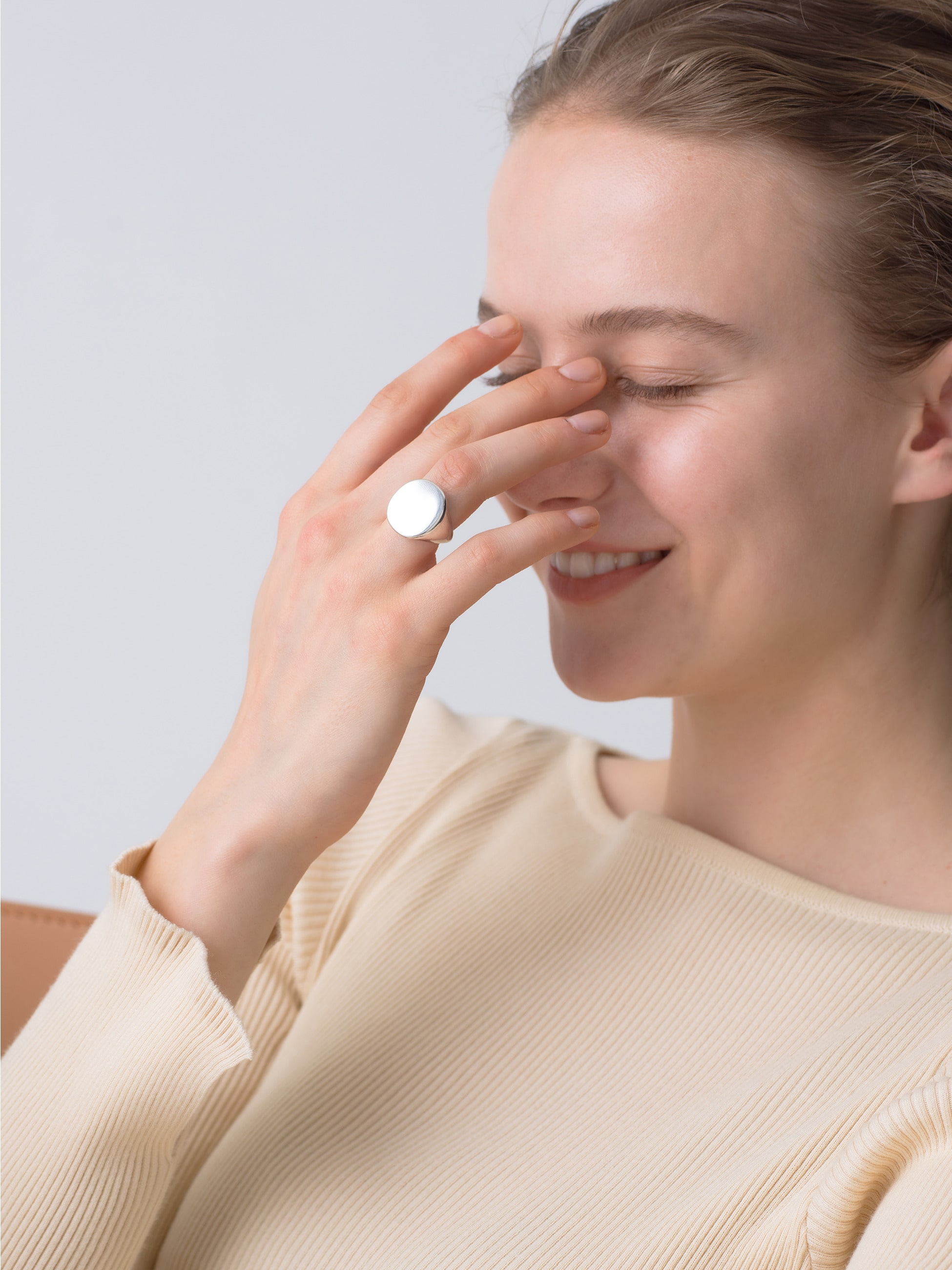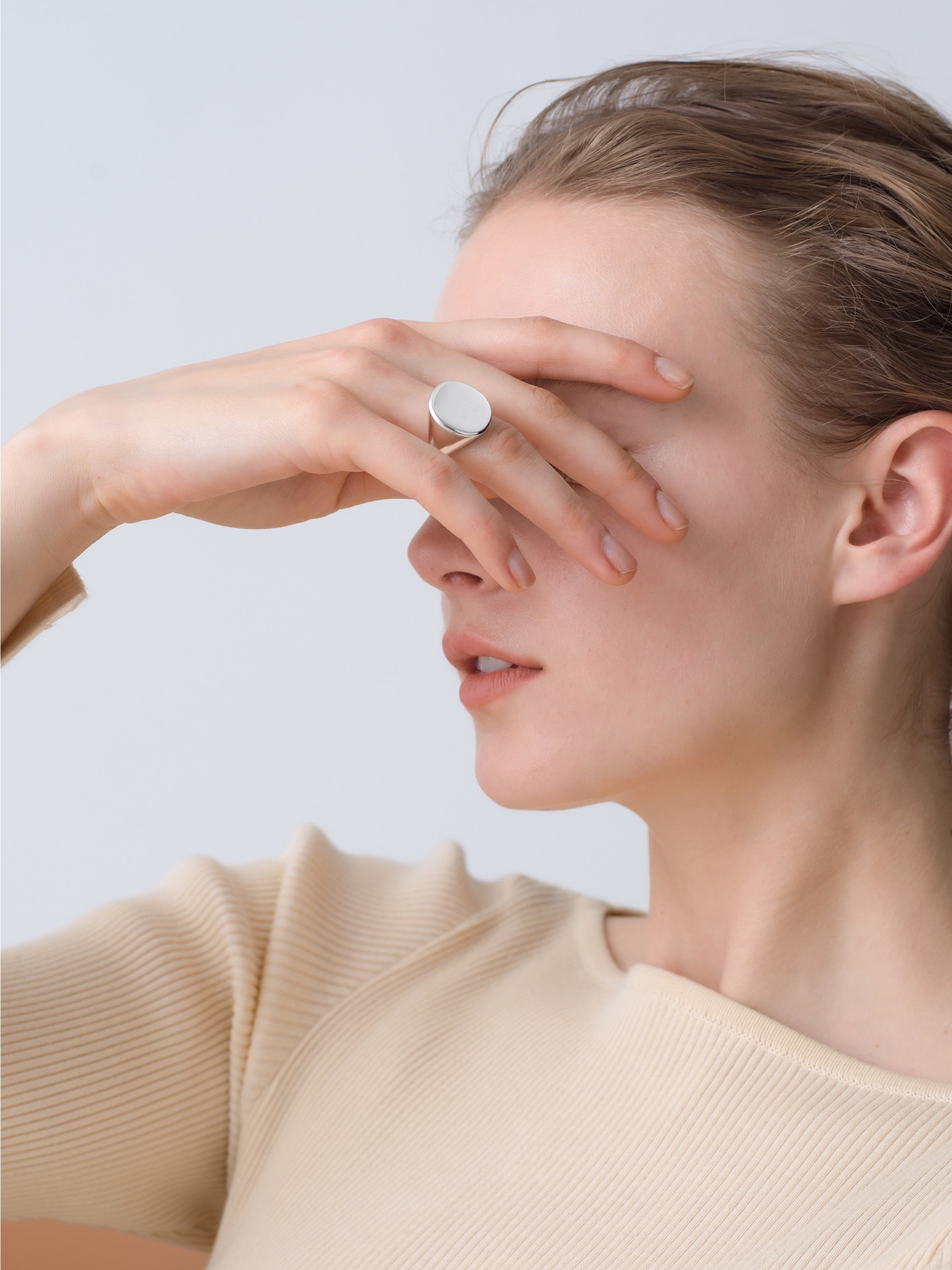 - ボリュームのあるシグネット型のリングは、HOORSENBUHSのシグネチャーモチーフであるTRI-LINKが施されています。ユニセックスで着用いただけます。