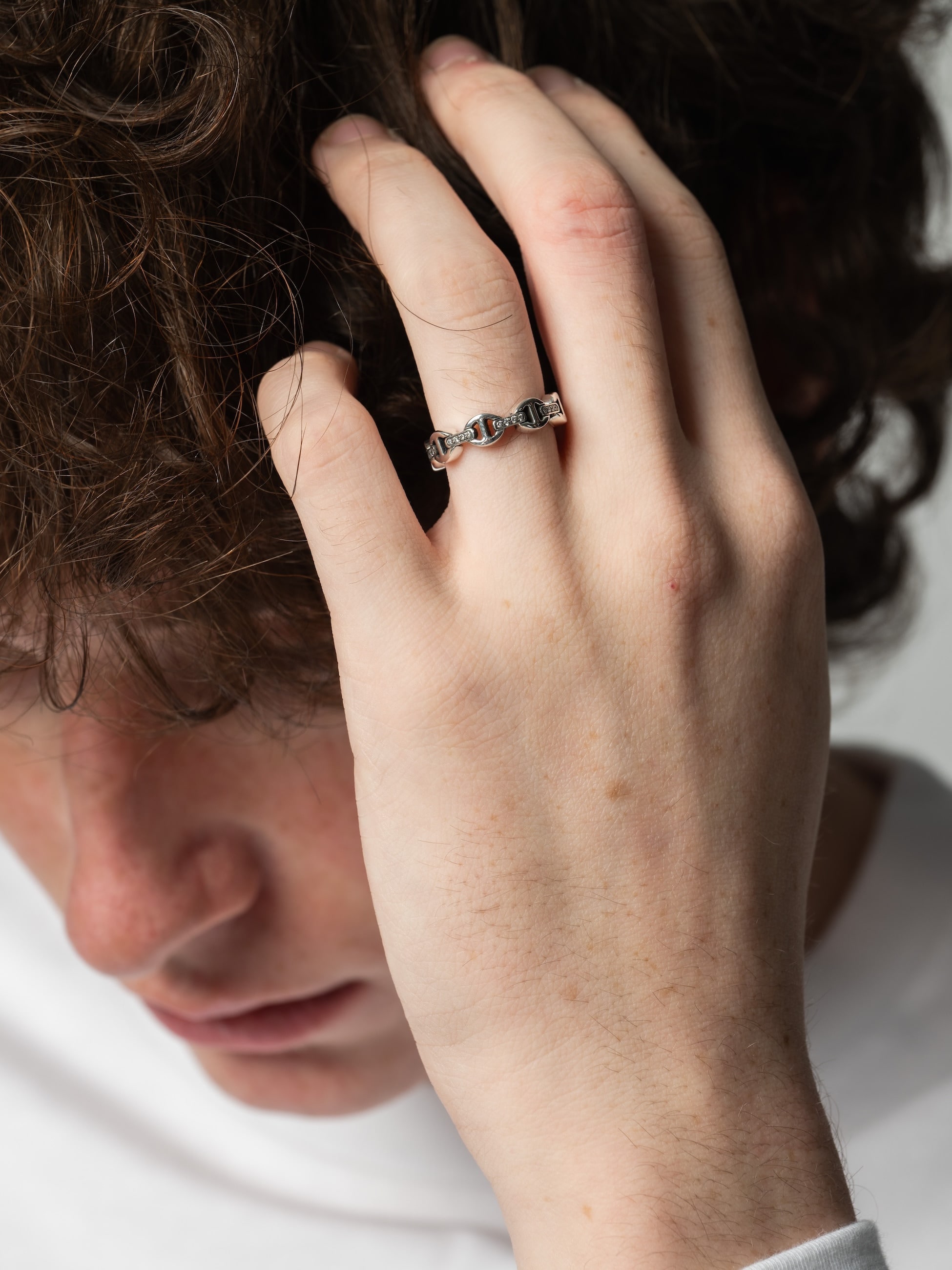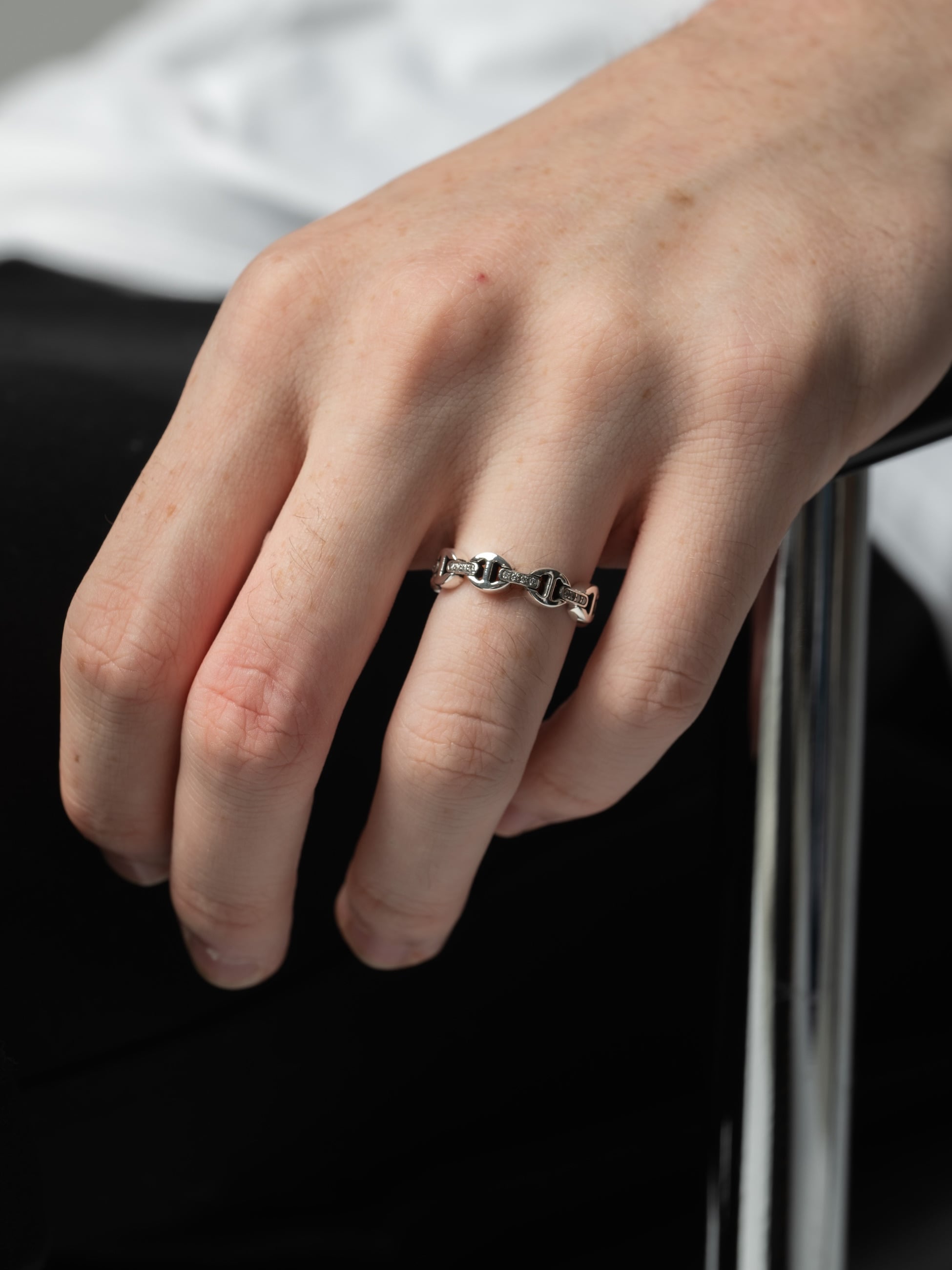 マイクロシリーズの中では最もボリュームのあるTRI-LINKのリング。ボリュームのあるHOORSENBUHSももちろん素敵ですが、私はこのマイクロシリーズがお気に入りです!華奢な中にもきちんと存在感があり、ブリッジ部分にあしらわれたダイヤモンドと相まって指を素敵に魅せてくれます。