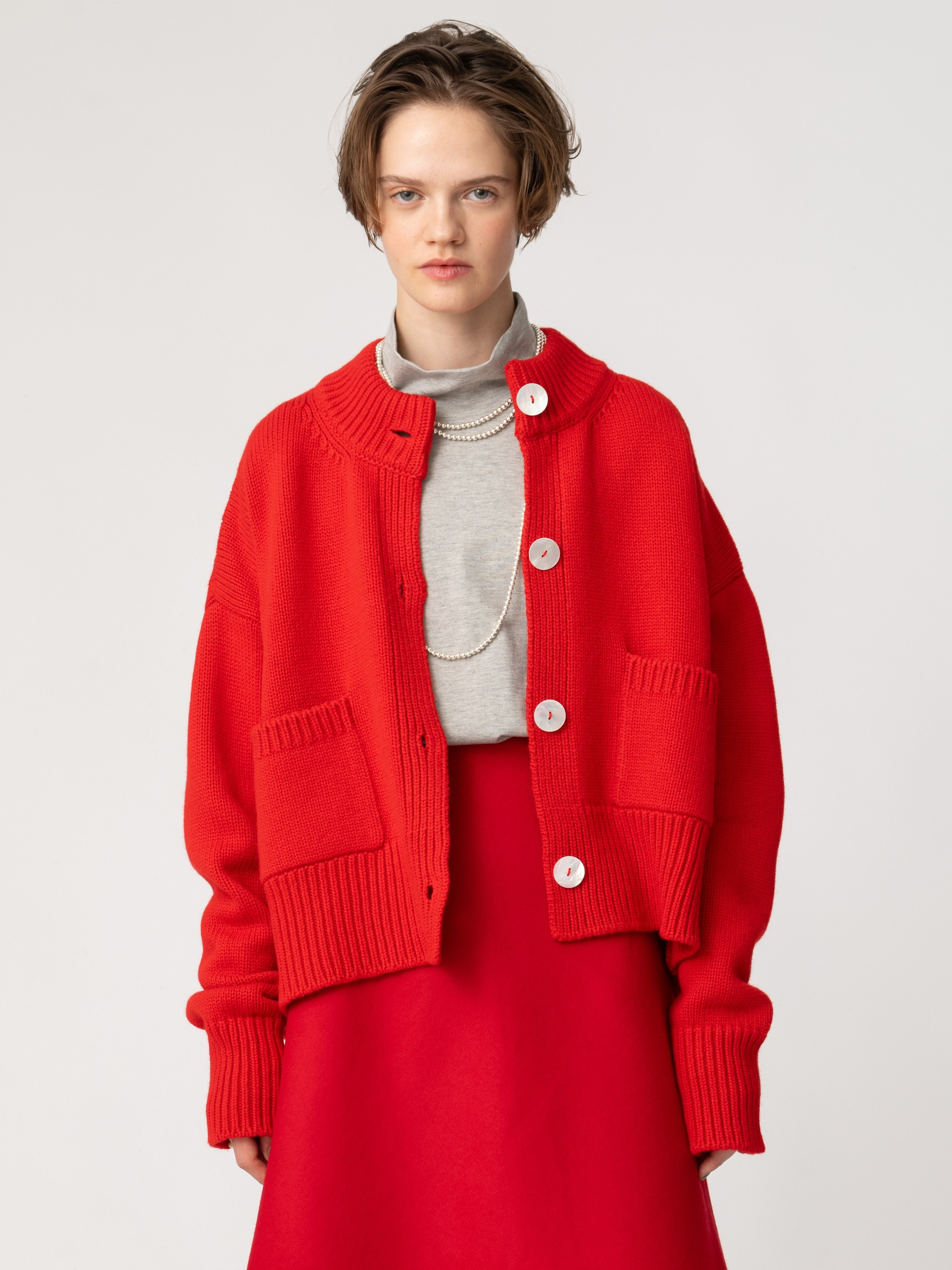 - 24FWシーズンに好評をいただいたニットカーディガン「Icebreaker」を、今季は冬の装いに映える鮮やかなレッドをセレクトし、ロンハーマンでカラー別注しました。ミドルゲージの編地がほどよい厚みでありながら、柔らかな肌触りと軽い着心地で、フロントの大きなボタンがデザインのポイントに。汎用性が高く、スタイリングのアクセントとして活躍します。
