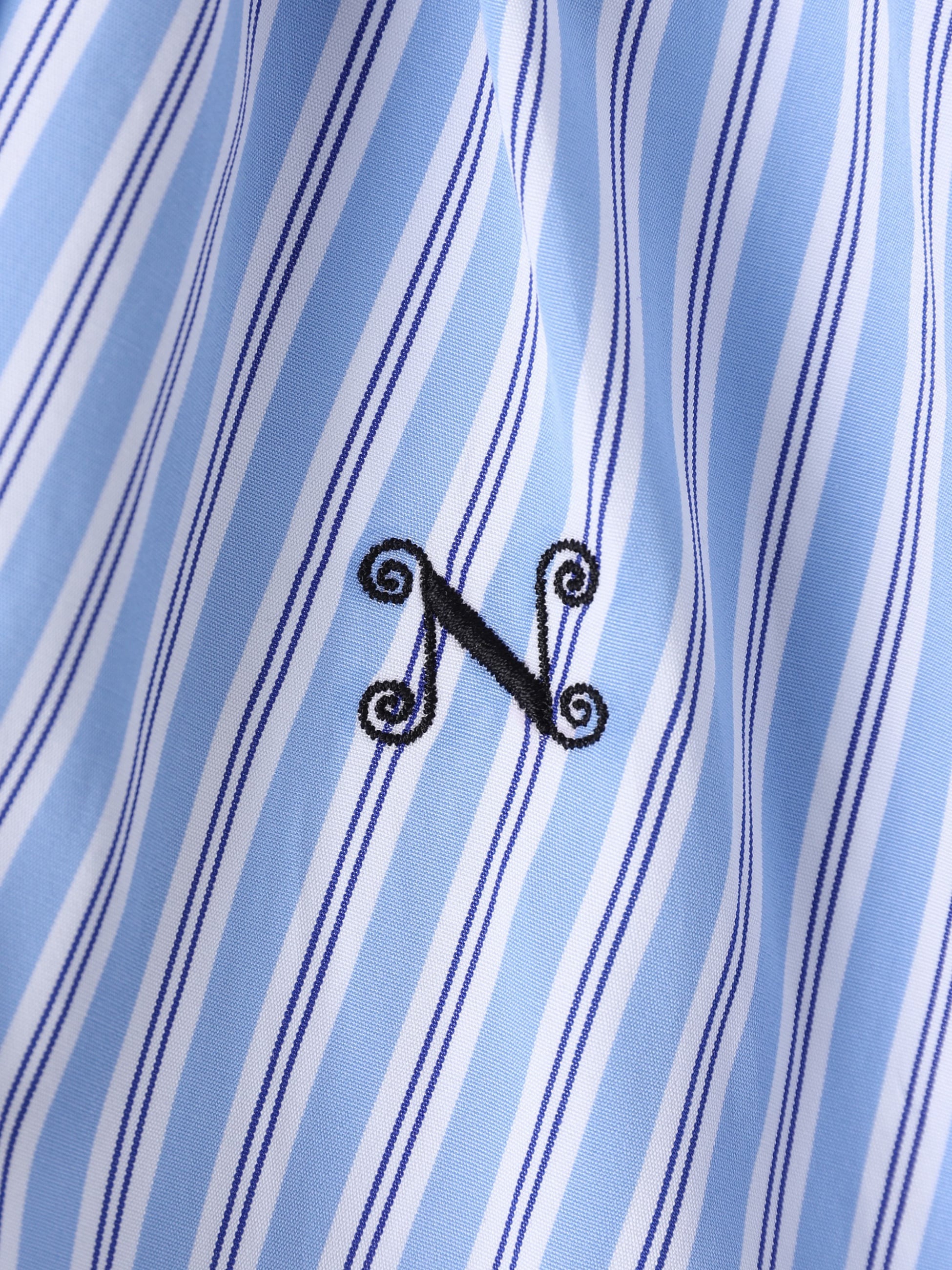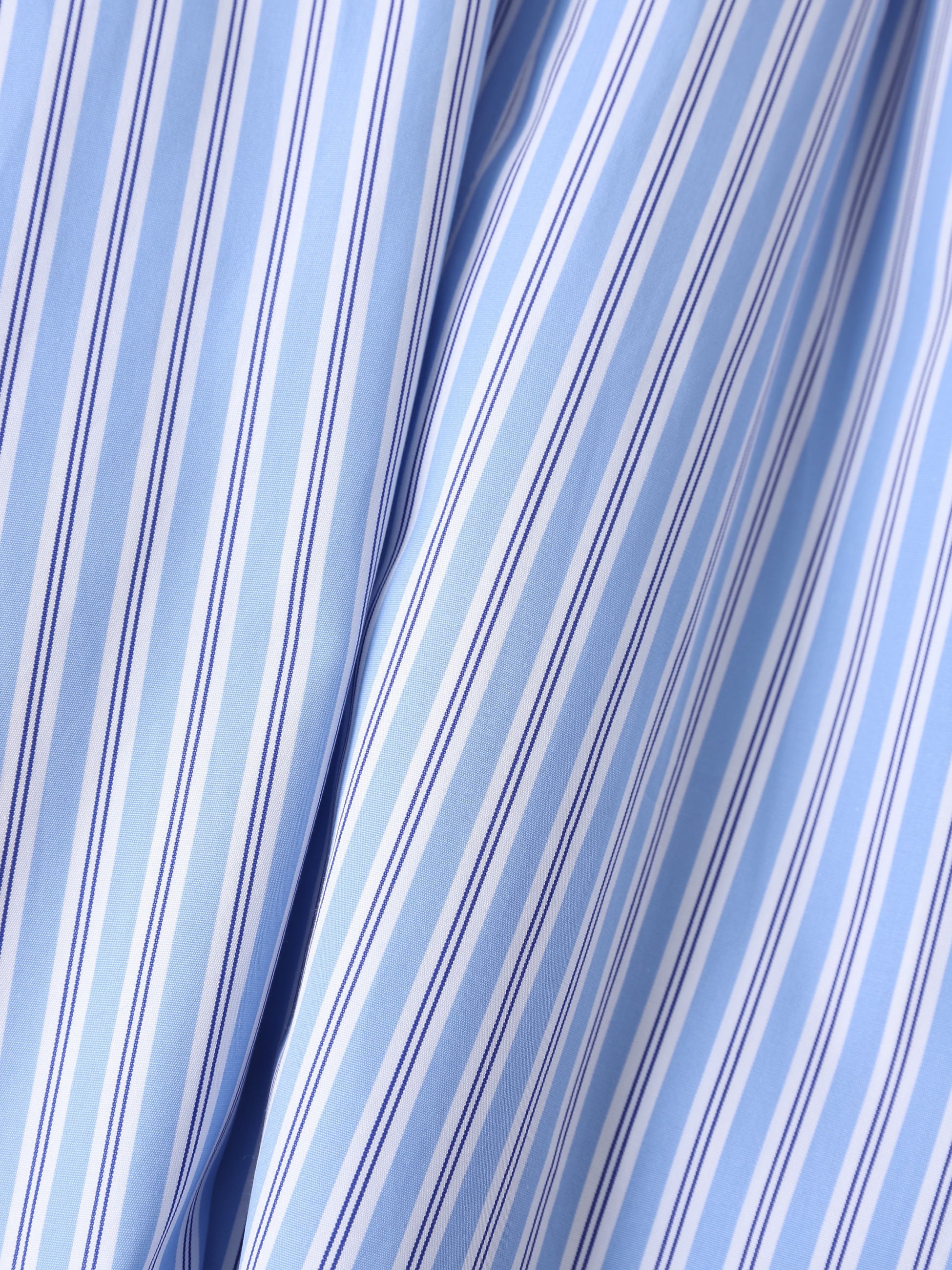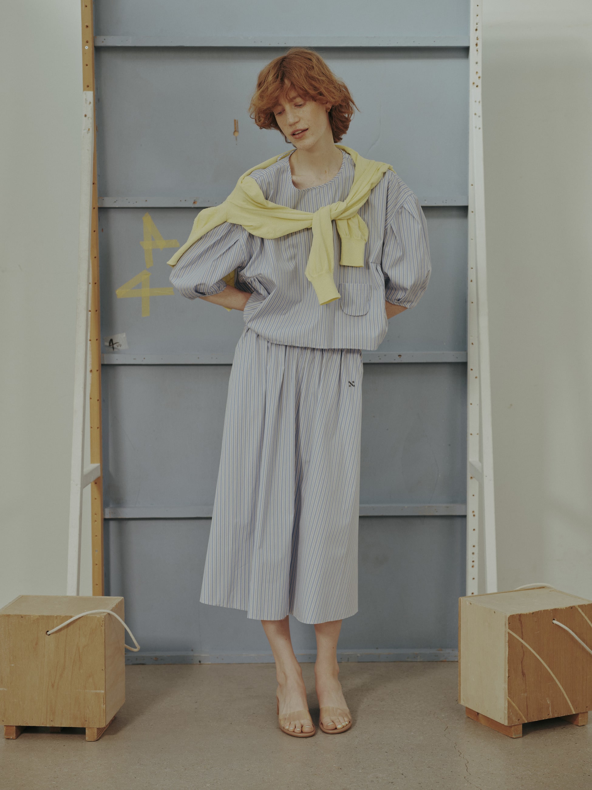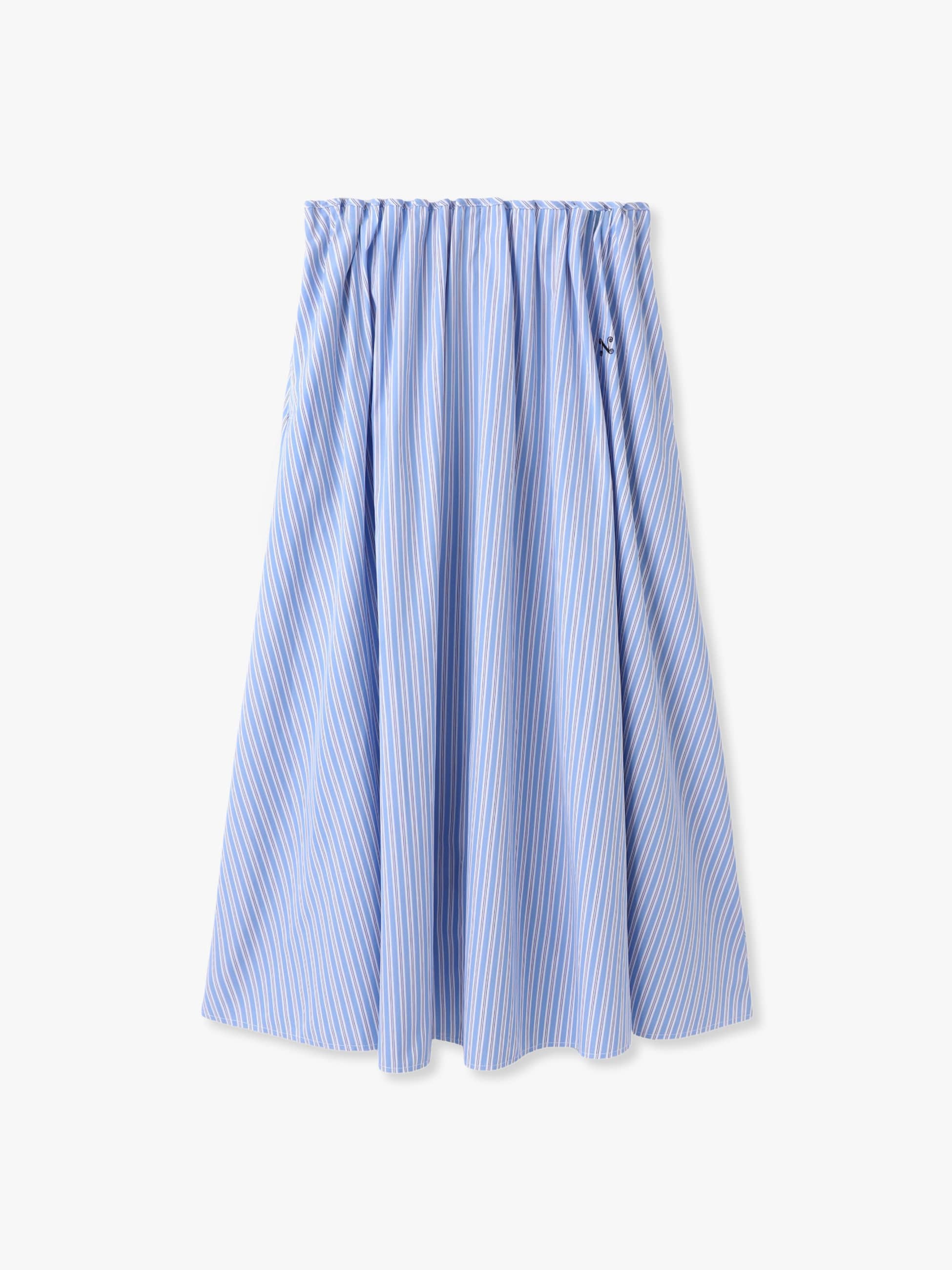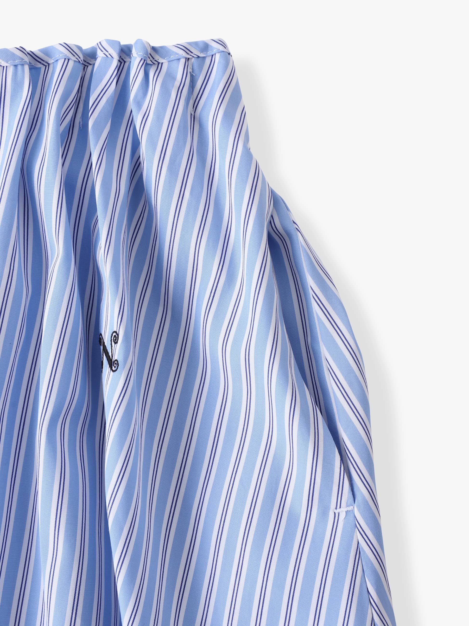 - コレクション展開しているギャザーの効いたフレアスカート「Summer Wine」に、爽やかなストライプ柄のシャツ素材を使用し、ロンハーマンで別注しました。ウエストゴム仕様のイージーな穿き心地がデイリーユースもしやすく、同シリーズのブラウスとのセットアップも素敵です。ストライプの存在感と軽やかな印象をお楽しみいただけます。
