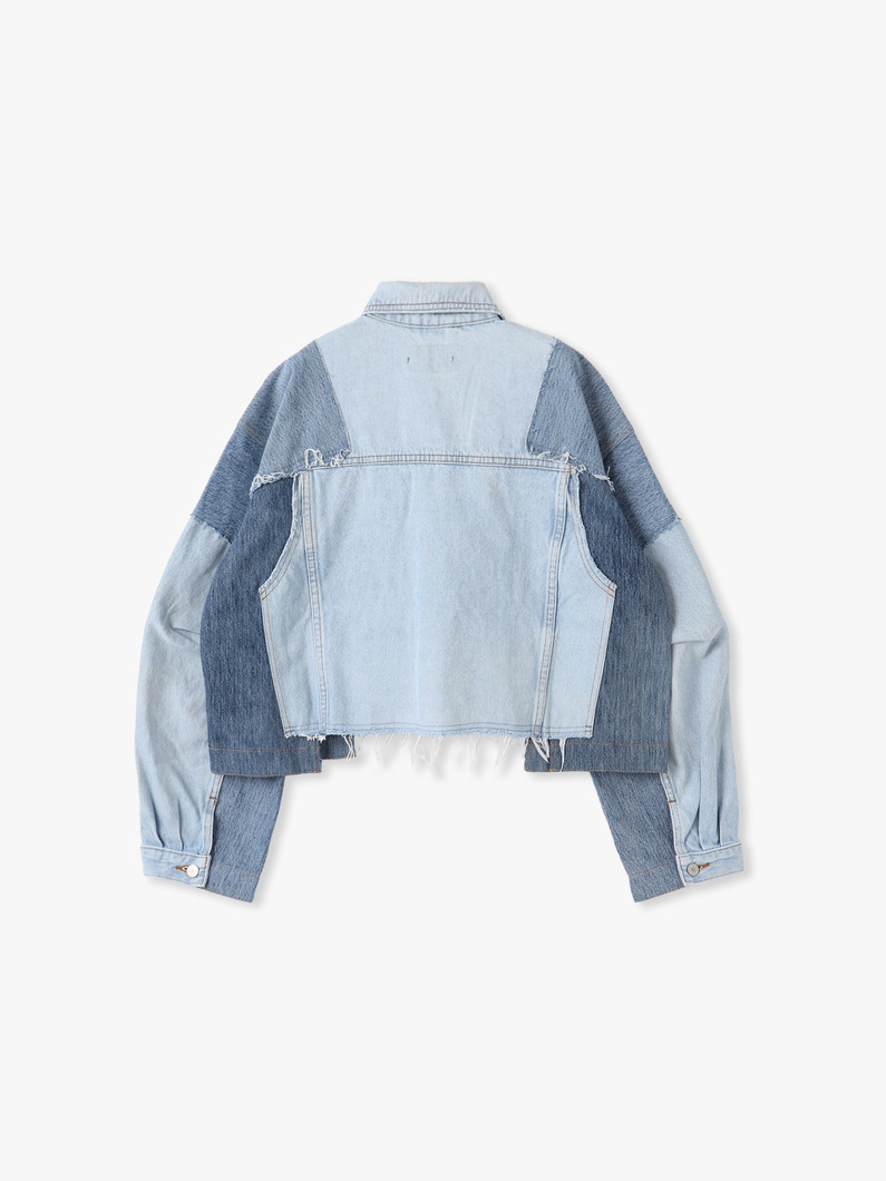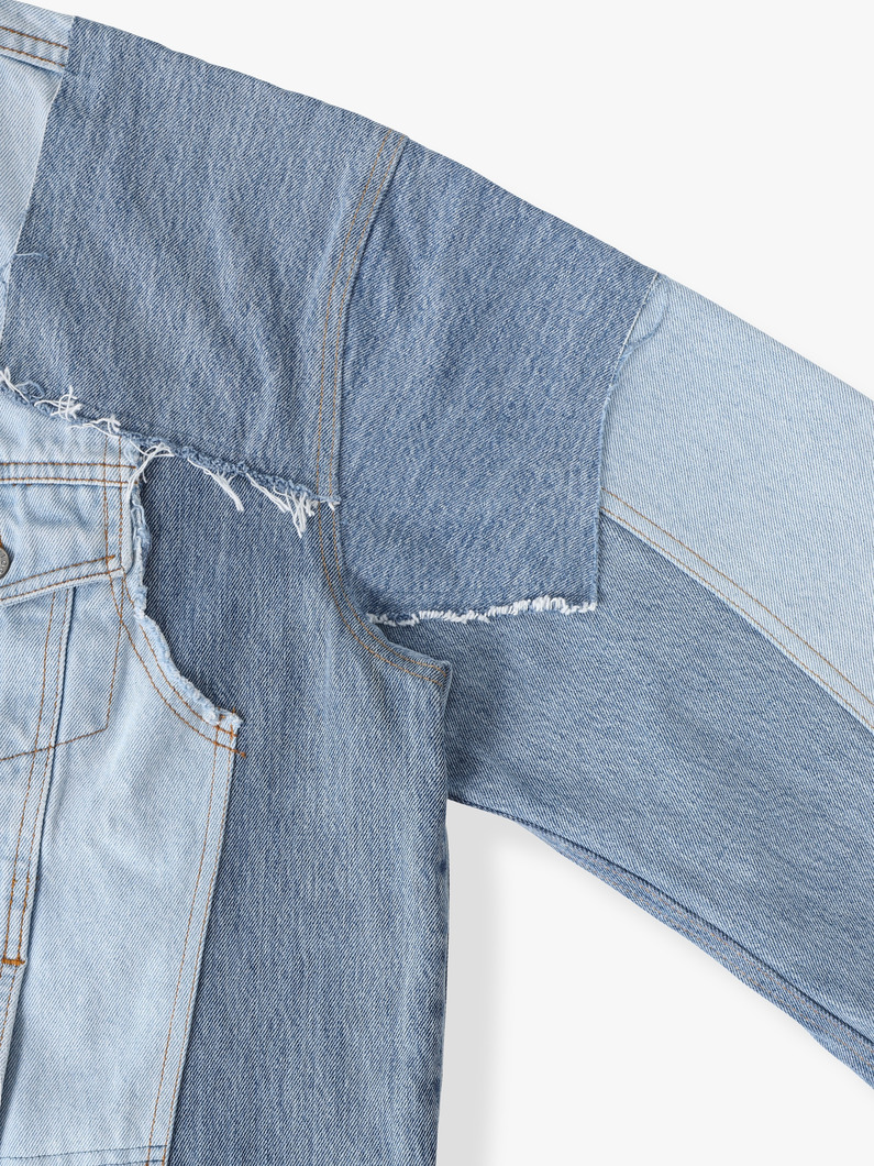 - 接ぎ合わされた立体的な袖と、異なる生地や色合いのコントラストが特徴的なパッチワークデニムジャケットです。日本のアトリエで1点ずつ丁寧に仕上げられ、作業の中の偶然が重なり合って生まれる表情豊かで目を惹くアイテムをぜひお楽しみください。