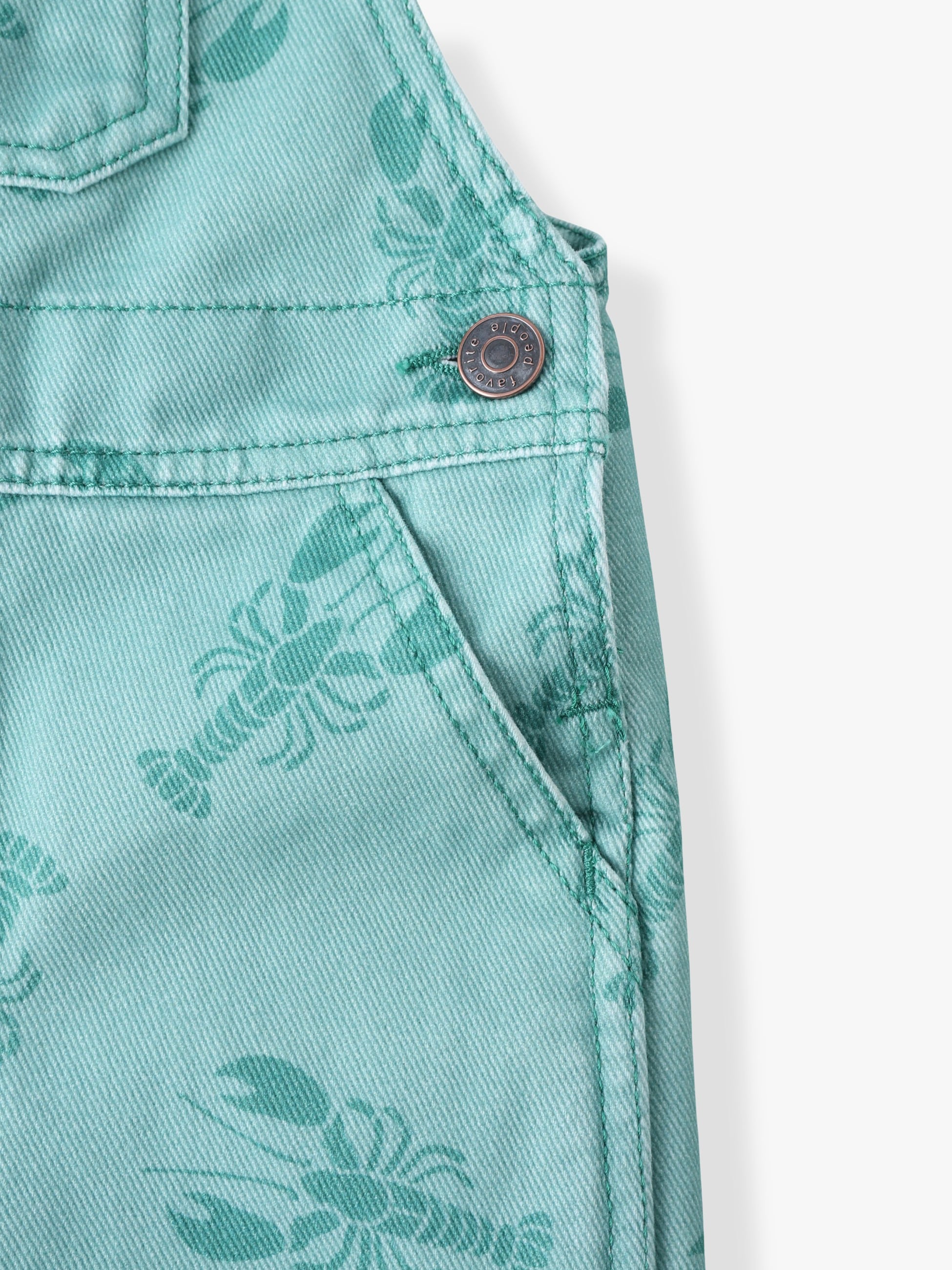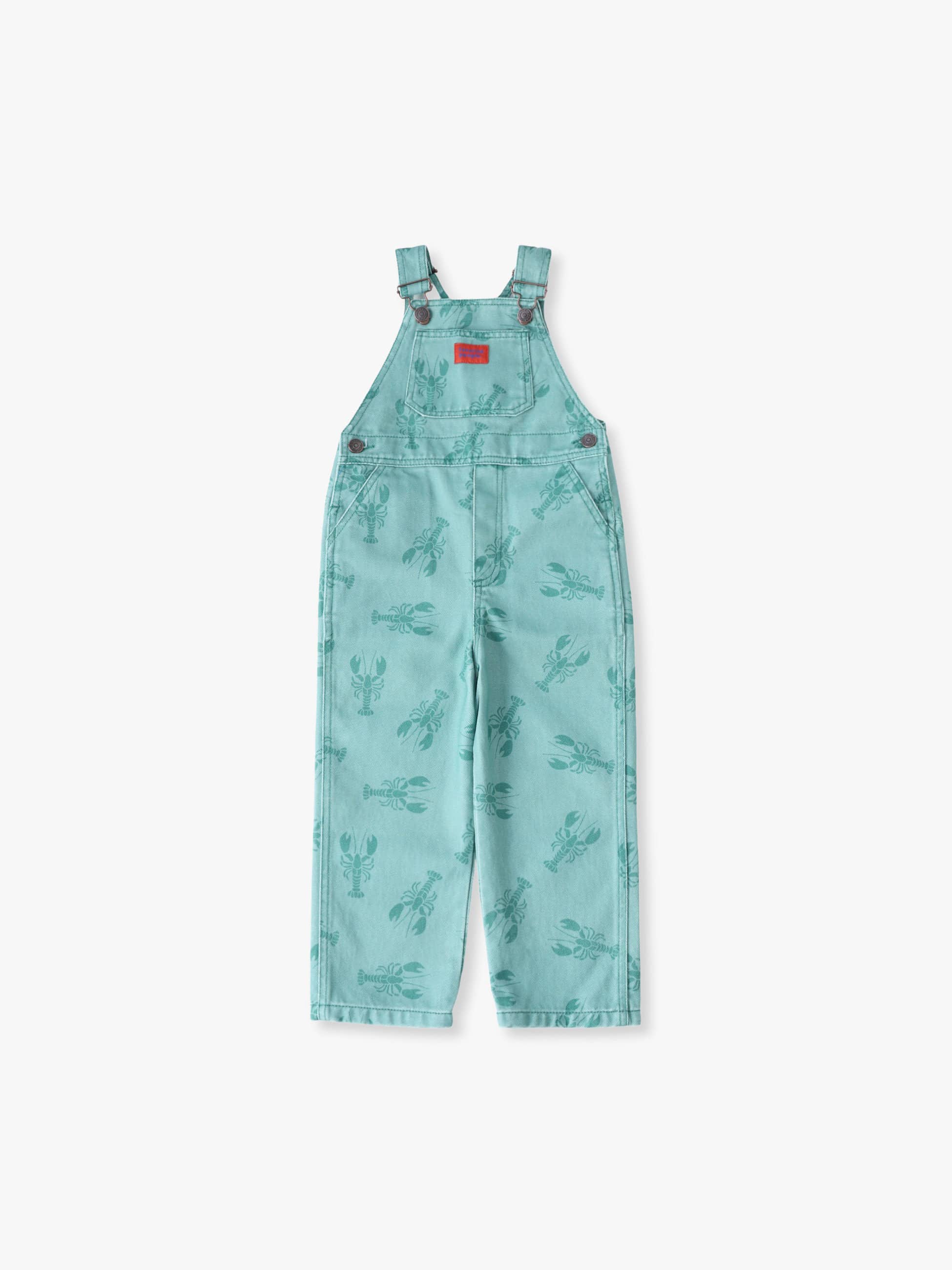 爽やかなライトグリーンに、ザリガニ柄がキュートな着るだけでハッピーになれるオーバーオールです。丈夫なコットン素材を使用しており、通気性がよく快適な着心地です。アジャスターが付いているため、お子さまの成長に合わせてフィットします。