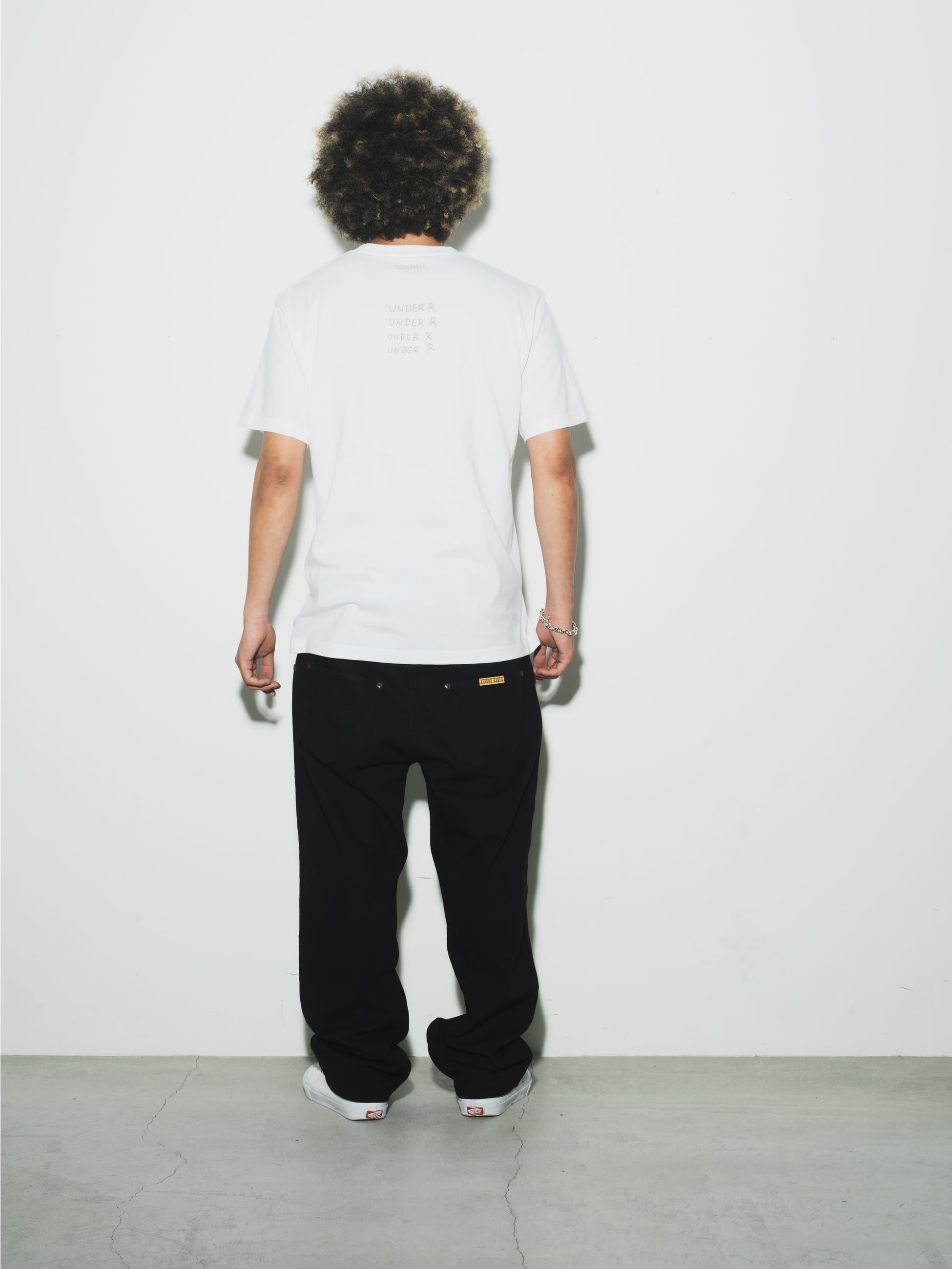 世界的なスケーターブランドへの作品提供、Heavy Timeからもかつてzineをリリースするなど、並外れた創造性と破天荒な手法で人々を魅了してきたアーティストである「ジョー・ロバーツ」による、UNDER Rのためだけに作られた、独自のレタリングデザインをプリントした特別なTシャツの登場です。今回のためだけに製作されたレタリングをフロントに配したデザインや、レタリングを生かしたゆったりとしたフィットが特徴です。ジョー・ロバーツの世界観にUNDER Rのエッセンスが合わさったスペシャルなアイテムをお楽しみください。