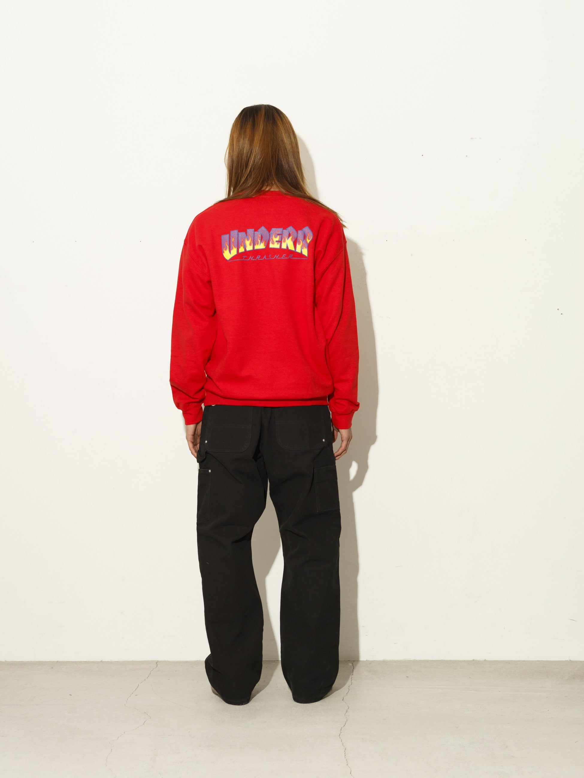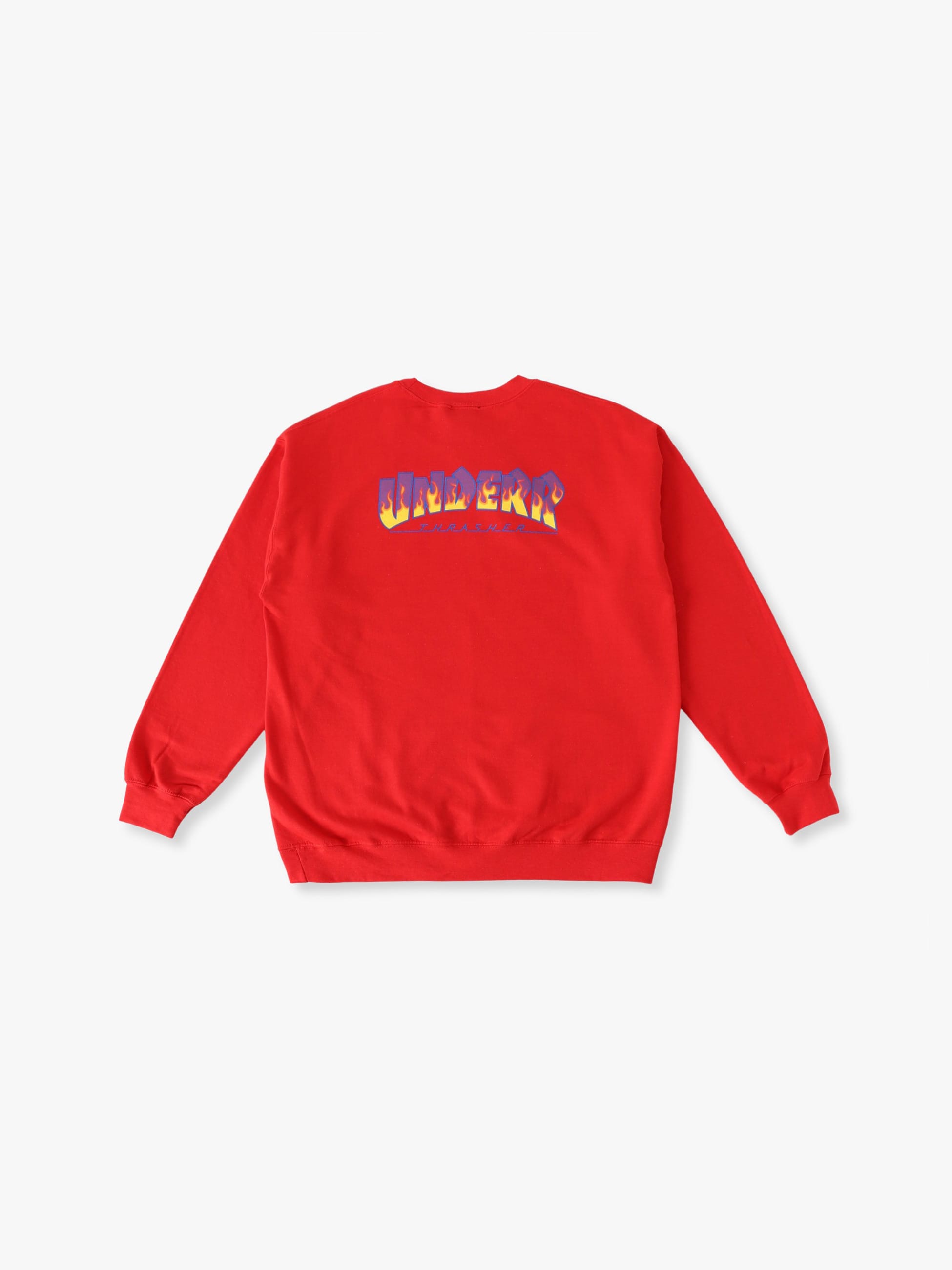 - UNDER Rのためだけに作られた、USAを代表するスケートブランドである「THRASHER」より、スウェットプルオーバーの登場です。オーセンティックなスラッシャーロゴをベースに、特別に製作されたダブルネームロゴをバックへプリントした遊び心溢れる一着です。また、グラフィックを活かしたゆったりとしたフィットや、ビビットなカラーバリエーションも魅力のひとつ。THRASHERの築き上げてきたスケートカルチャーに、UNDER Rのエッセンスが合わさったスペシャルなアイテムをお楽しみください。