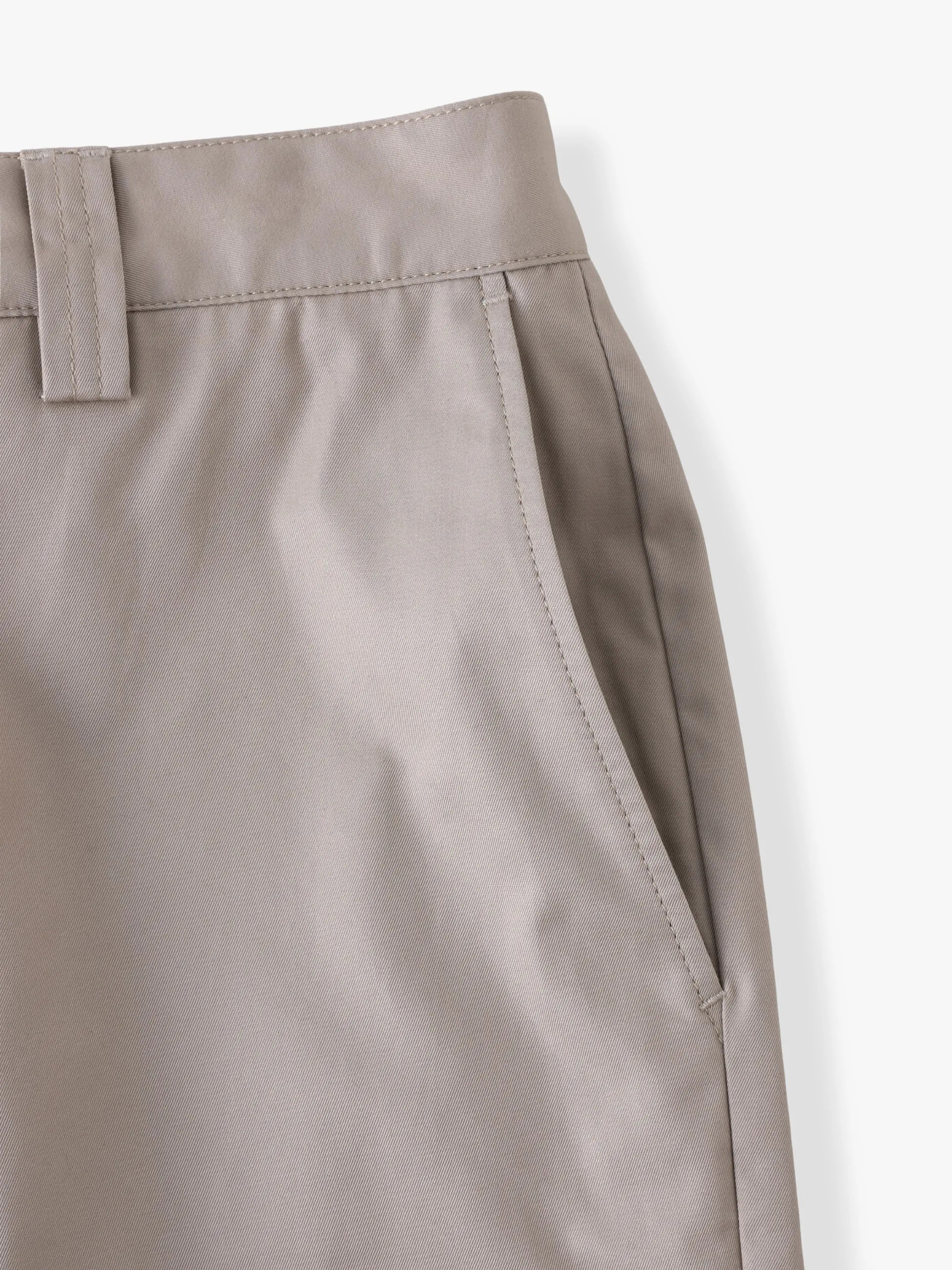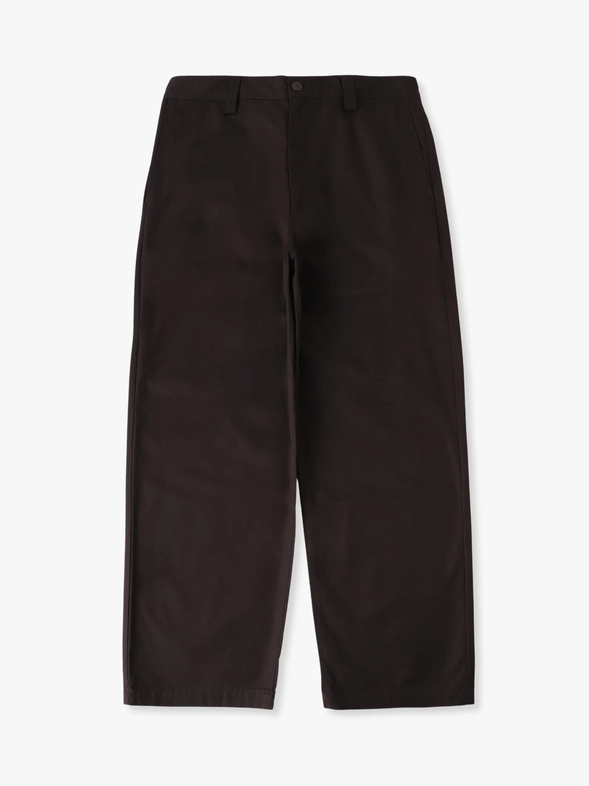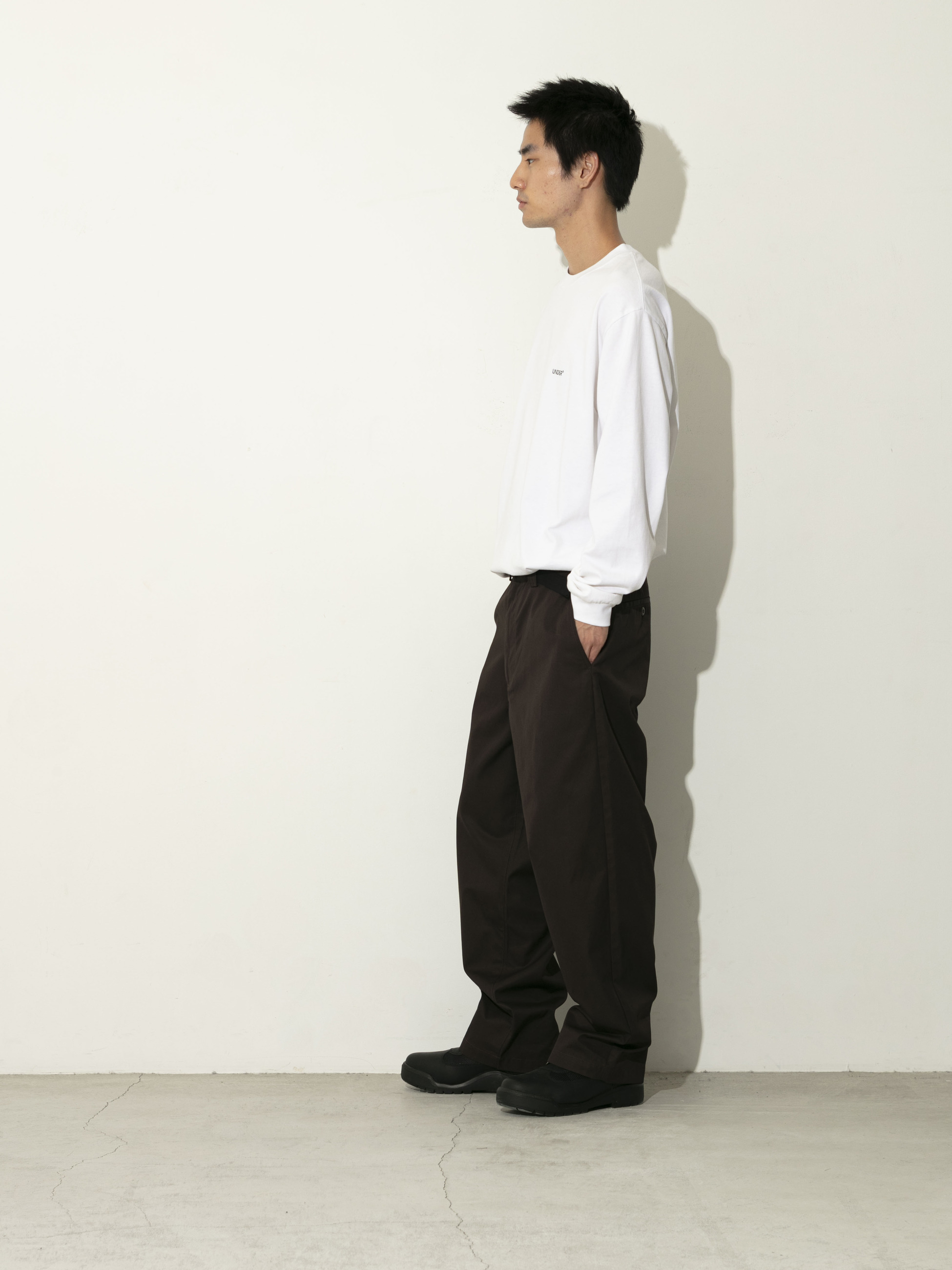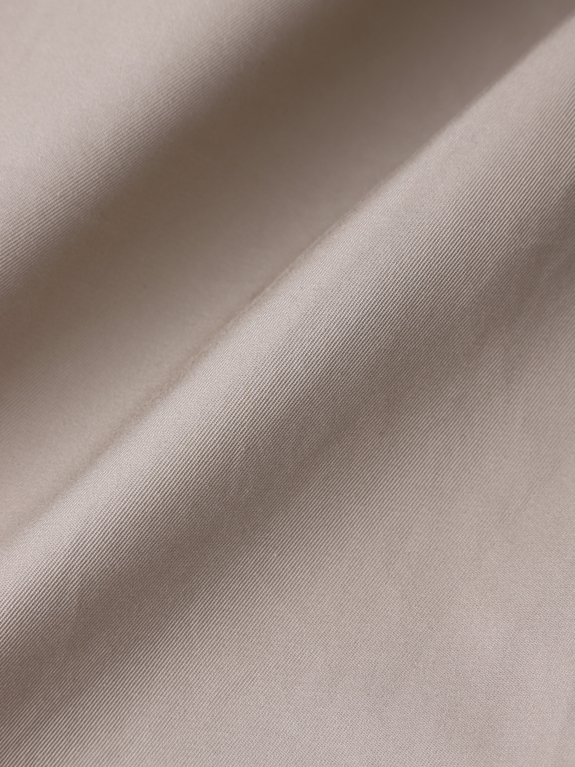 - コーマ糸を使用したコットンギャバジン生地のパンツ。2本の細かい糸を撚り上げた双糸を高密度で織り上げた生地は、耐久性が高く、きれいな表情の綾目が特徴です。また、さらっとした肌触りや軽やかな穿き心地は、様々な時季で活躍します。ゆったりとしたワイドフィットは、、シンプルなコーディネートに取り入れやすく、汎用性の高い一着です。