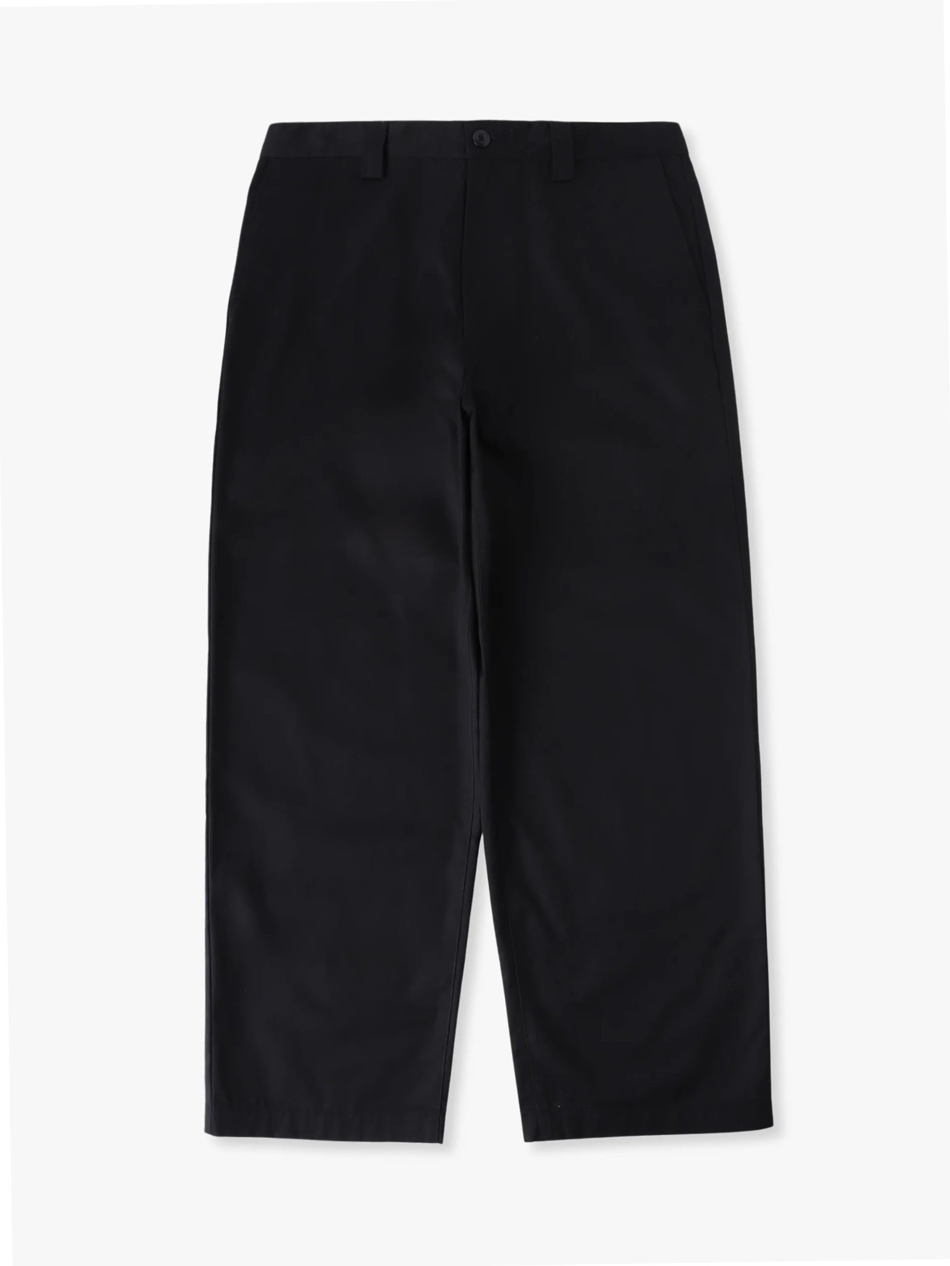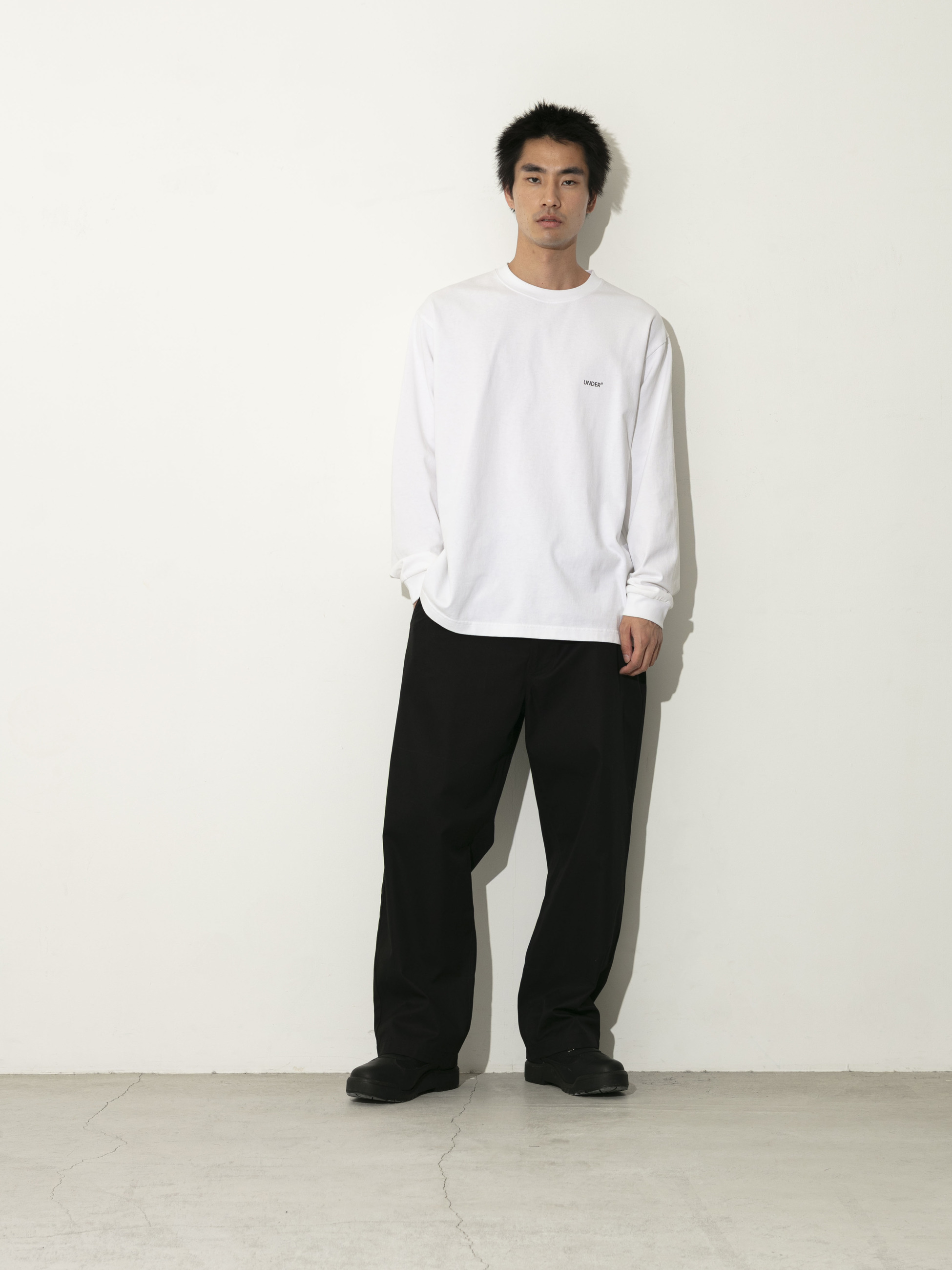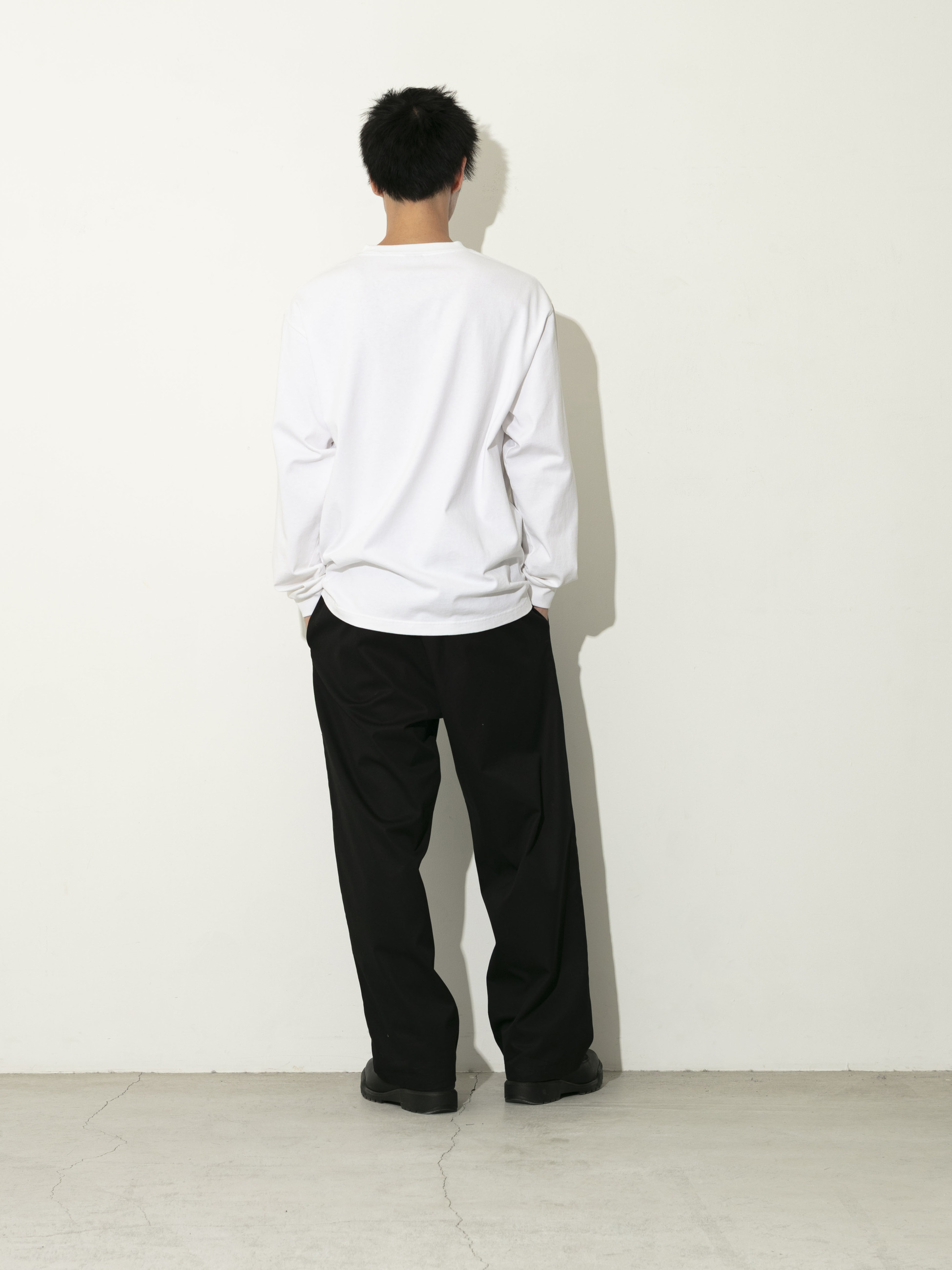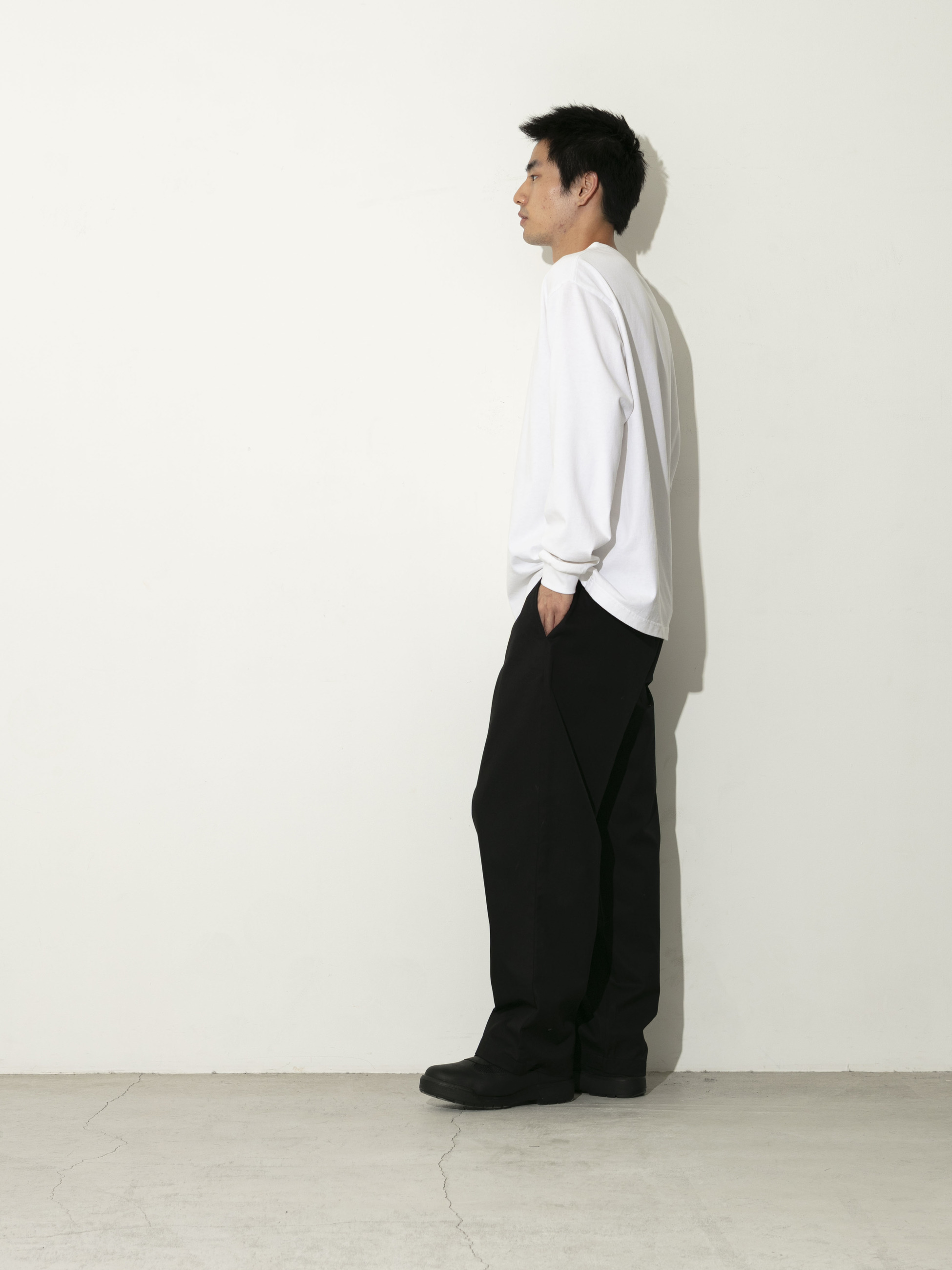 - コーマ糸を使用したコットンギャバジン生地のパンツ。2本の細かい糸を撚り上げた双糸を高密度で織り上げた生地は、耐久性が高く、きれいな表情の綾目が特徴です。また、さらっとした肌触りや軽やかな穿き心地は、様々な時季で活躍します。ゆったりとしたワイドフィットは、、シンプルなコーディネートに取り入れやすく、汎用性の高い一着です。