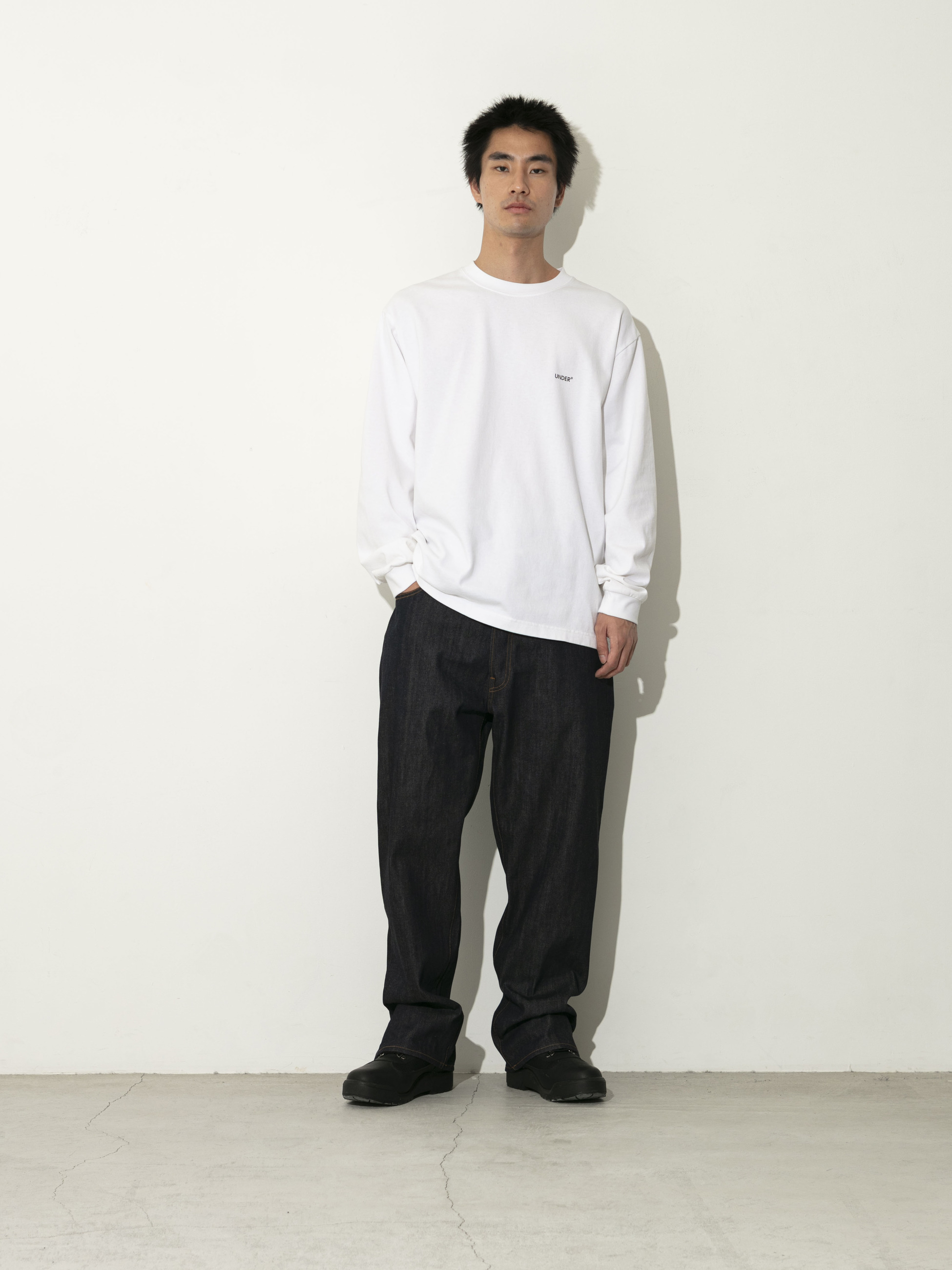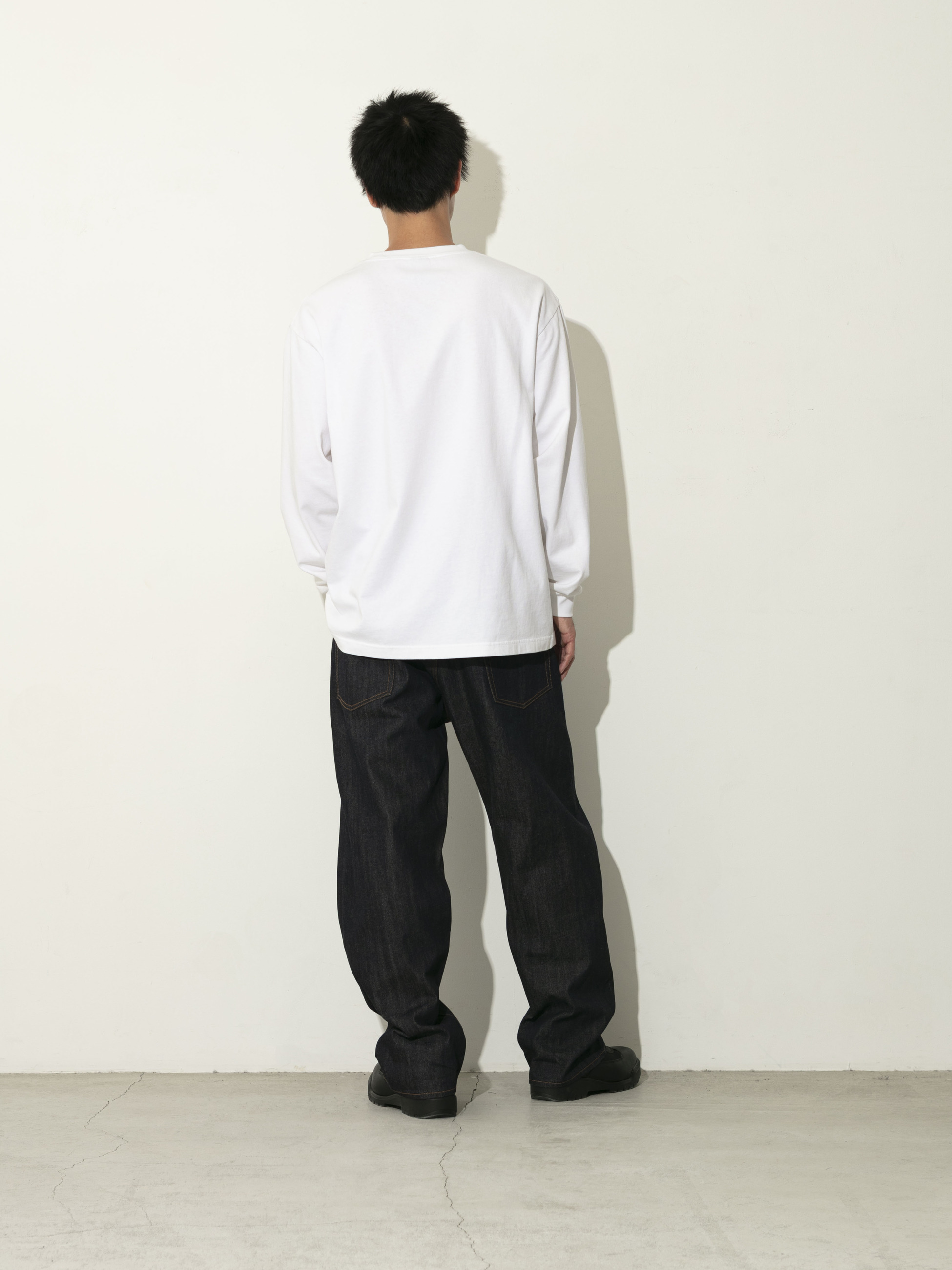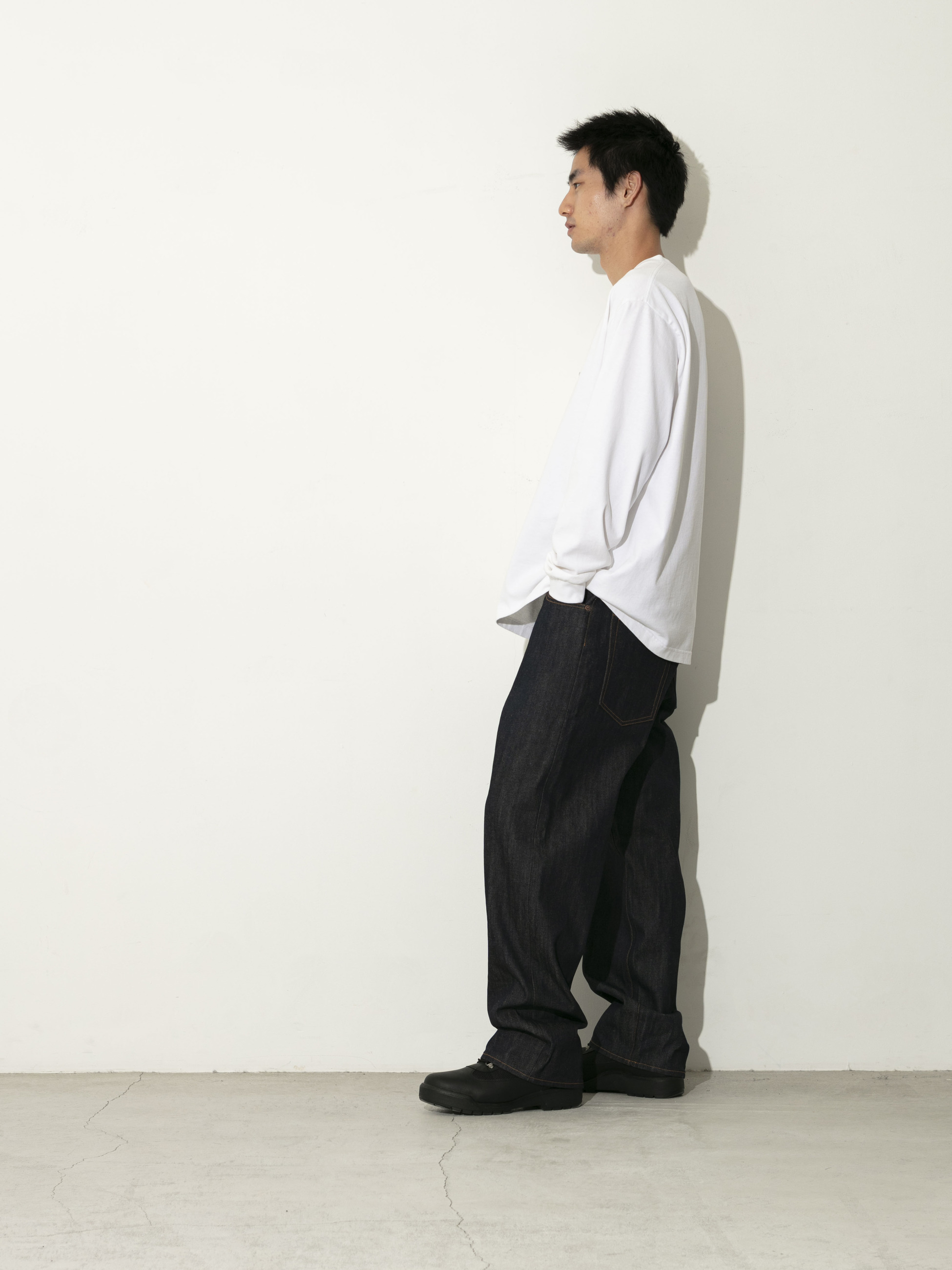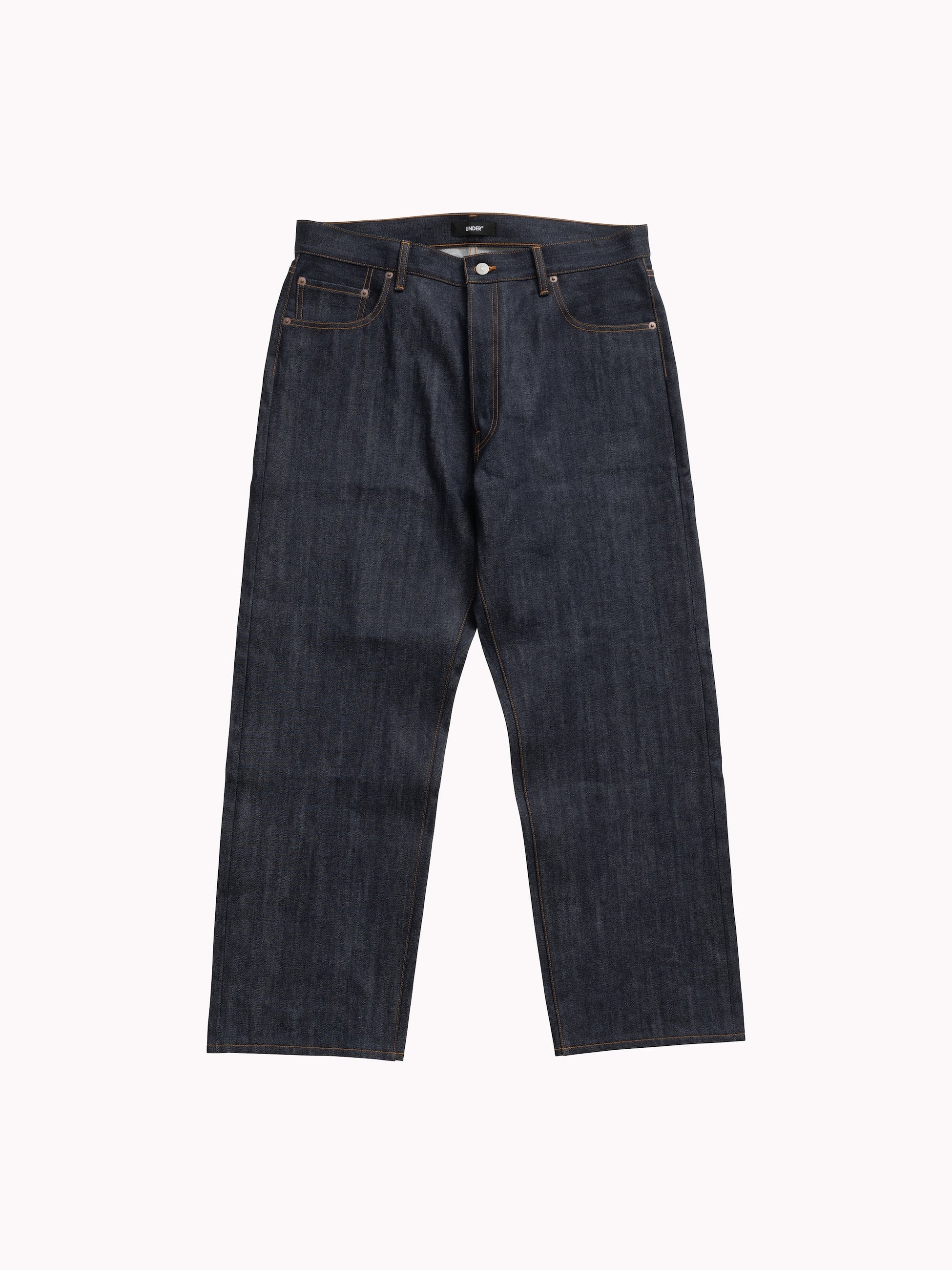 - 14オンスのセルビッチデニムを使用したデニムパンツ。ウエストとヒップやワタリにゆとりを持たせ、裾にかけてテーパードを利かせたUNDER Rのために特別に作られたシルエットを採用しています。また、オリジナルで製作されたタックボタンとリベットがアクセントになっています。さらに、洗いをかけるごとに生まれるヴィンテージのような表情の色落ちも魅力のひとつ。コーディネートに変化を与えるオリジナルフィットをお楽しみください。